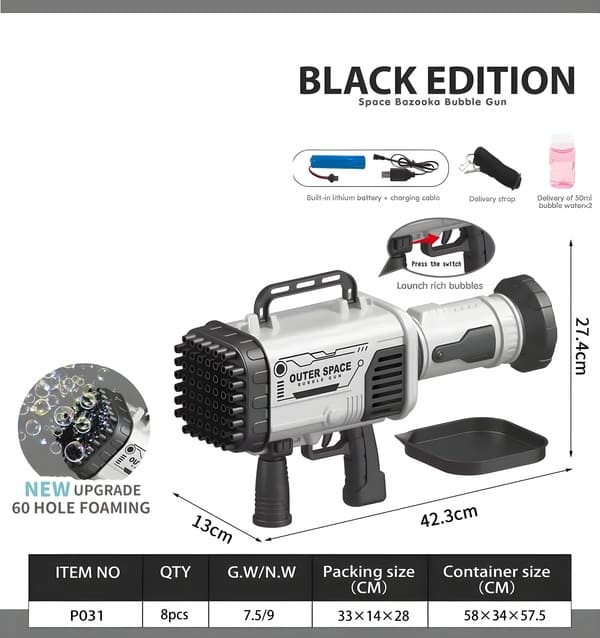 Modern Style Bubble Gun the bubble machine gun has 64 bubble holes, which can blow hundreds of bubbles per minute.