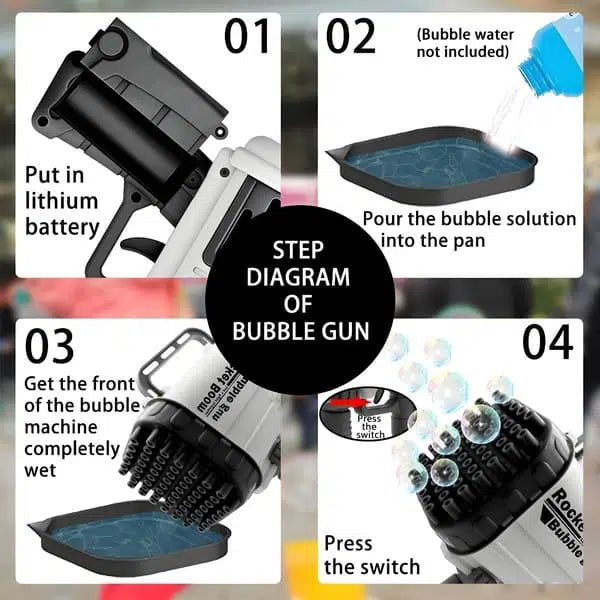 - Safe Material: The bubble gun is made of safe ABS material, safe for children, no leakage or overflow, very safe for kids and pets, children can carry the bubble gun with them and enjoy bubble chasing.