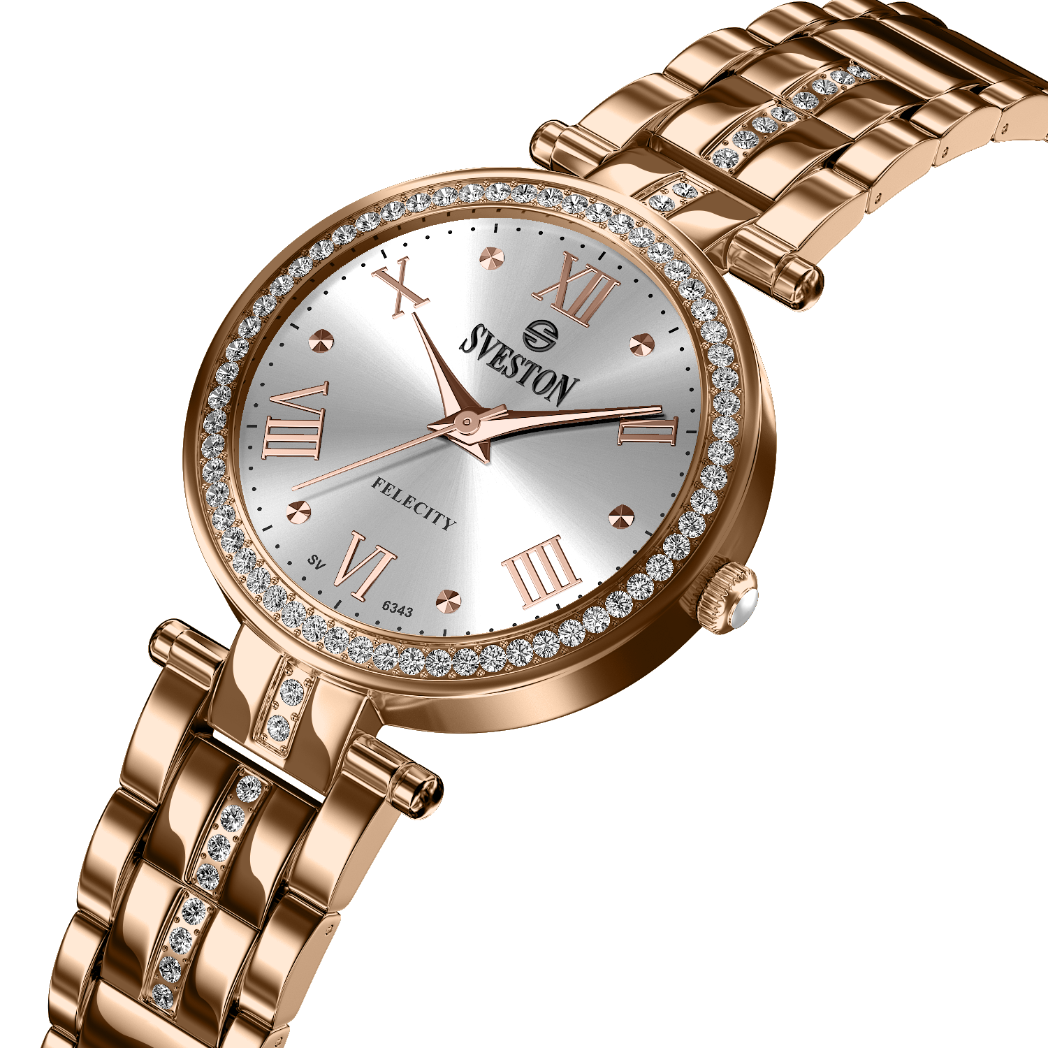 Sveston Felecity is a feminine bracelet watch featuring a 28mm dial, elegantly presented in a luxury watch case.