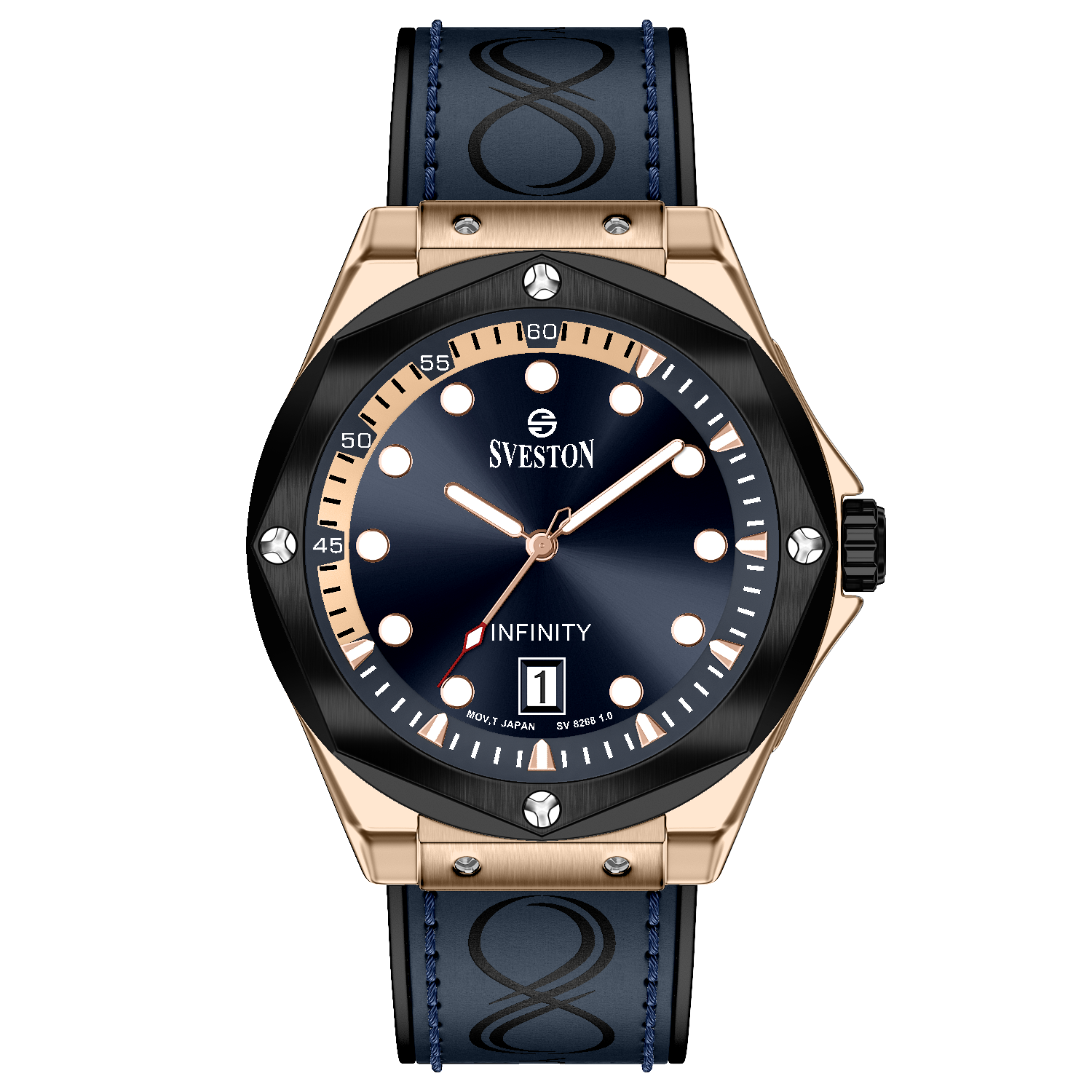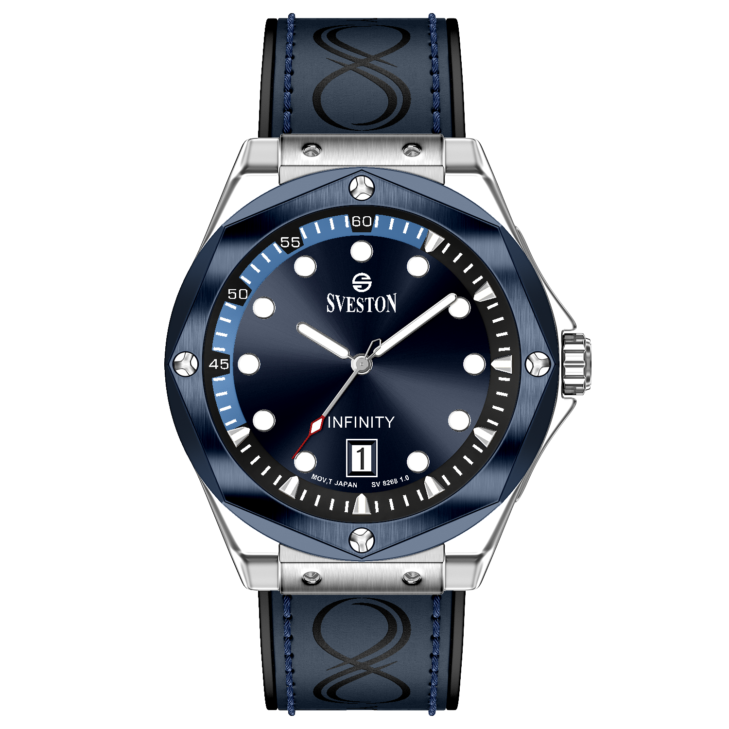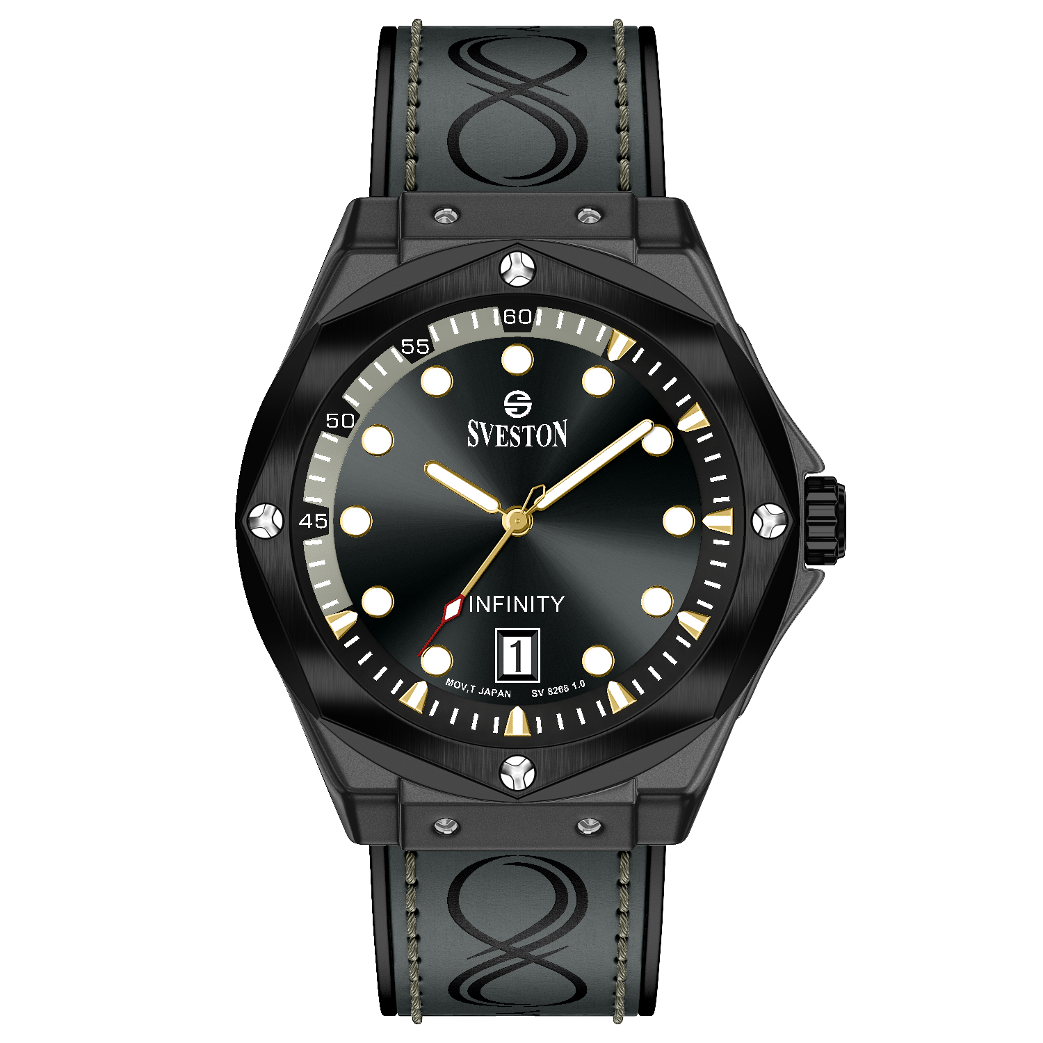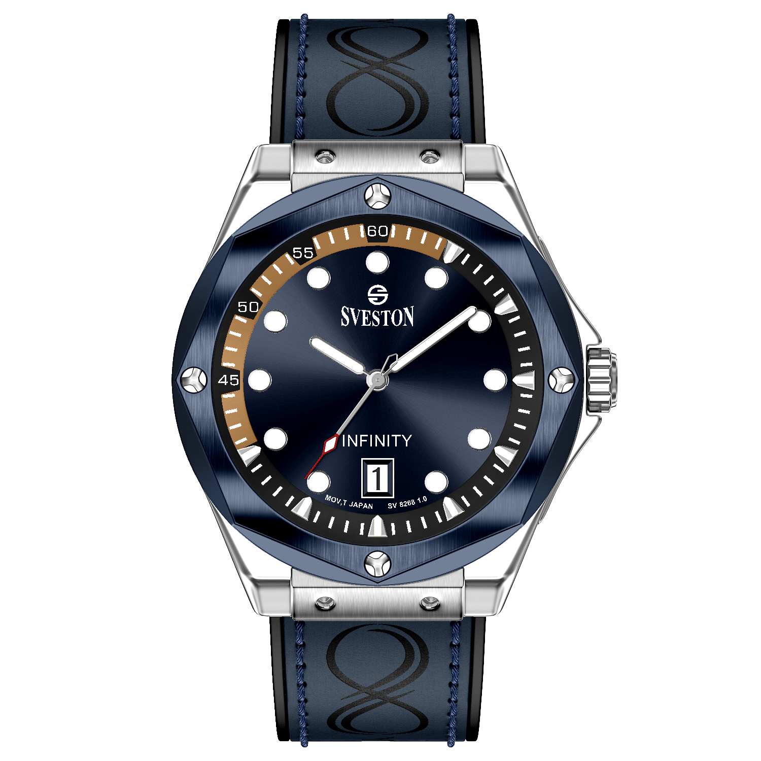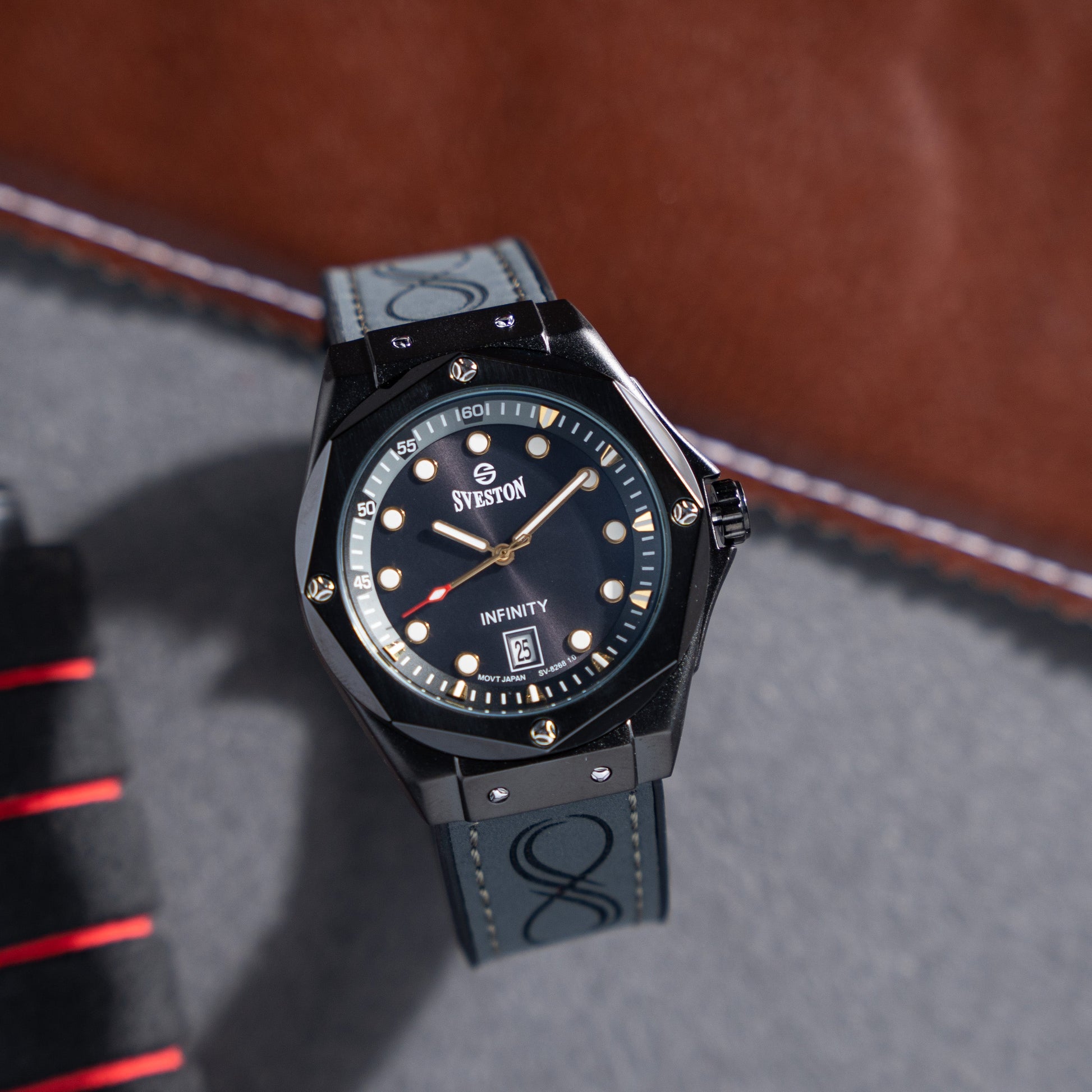 Sveston Infinity is a men's sports watch with a Rubber strap. It has a bold 39mm dial and comes in a high-quality luxury watch case. Designed for lasting style and daily comfort, it combines elegance and practicality.