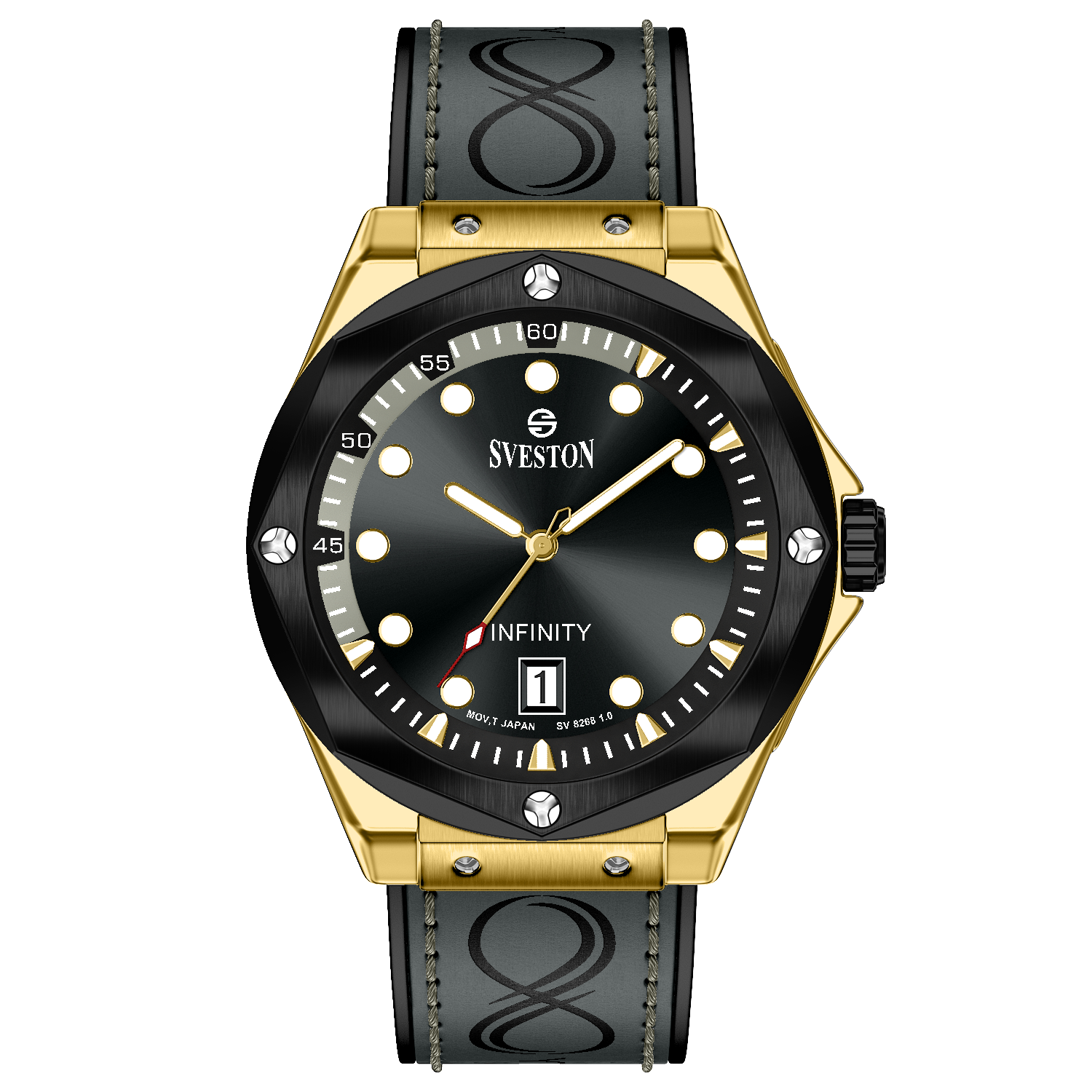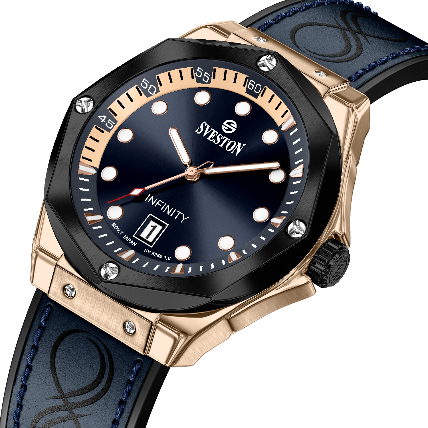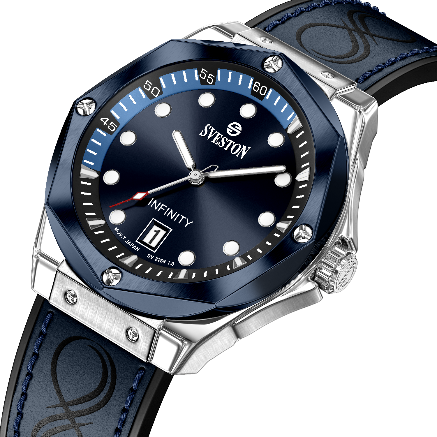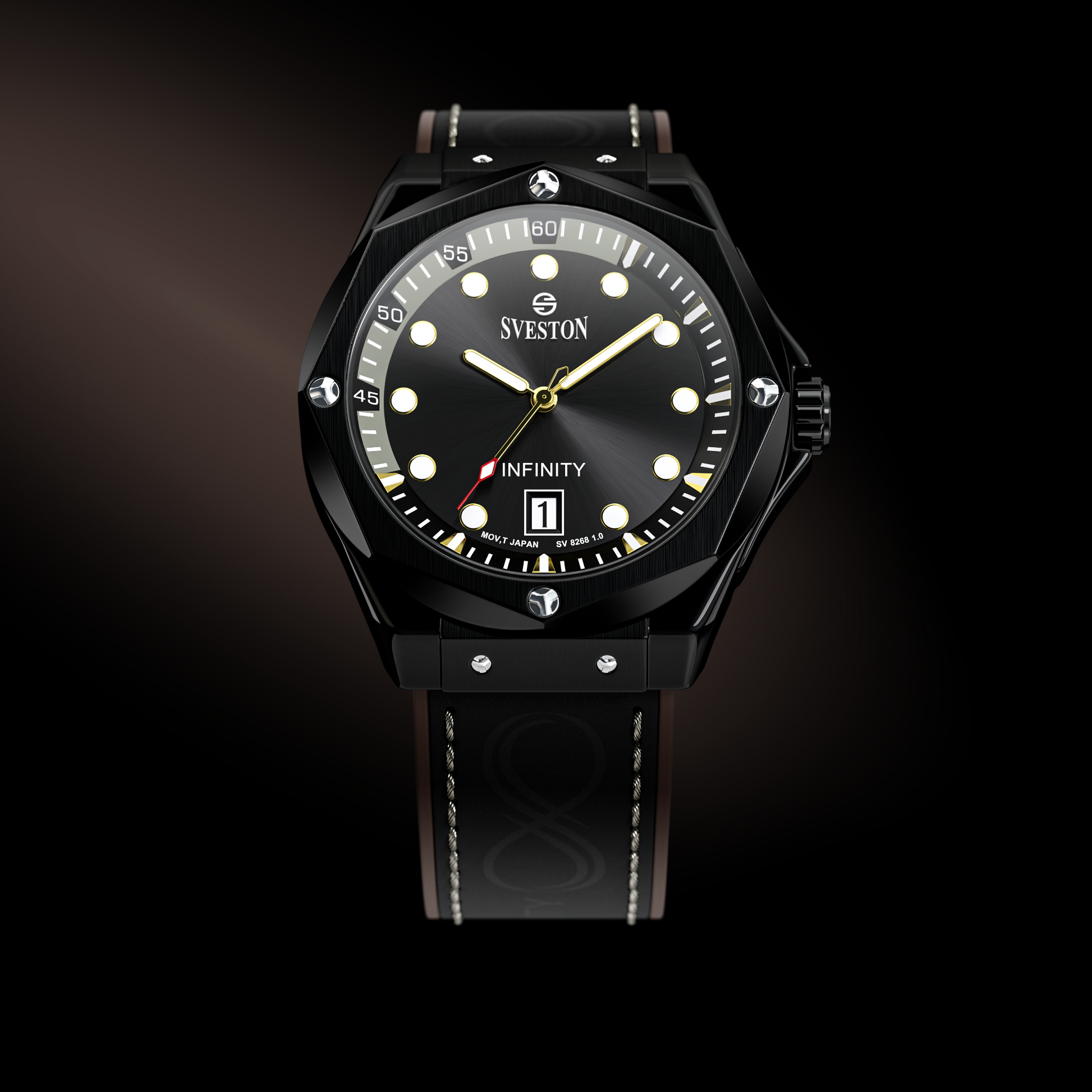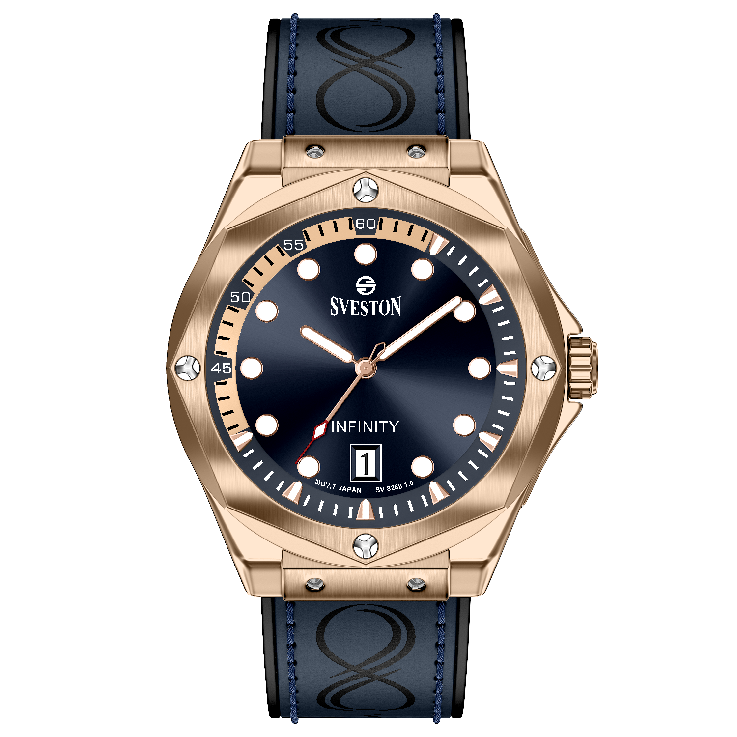Sveston Infinity is a men's sports watch with a Rubber strap. It has a bold 39mm dial and comes in a high-quality luxury watch case. Designed for lasting style and daily comfort, it combines elegance and practicality.
