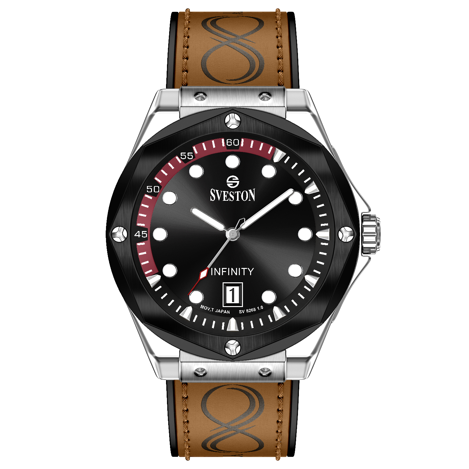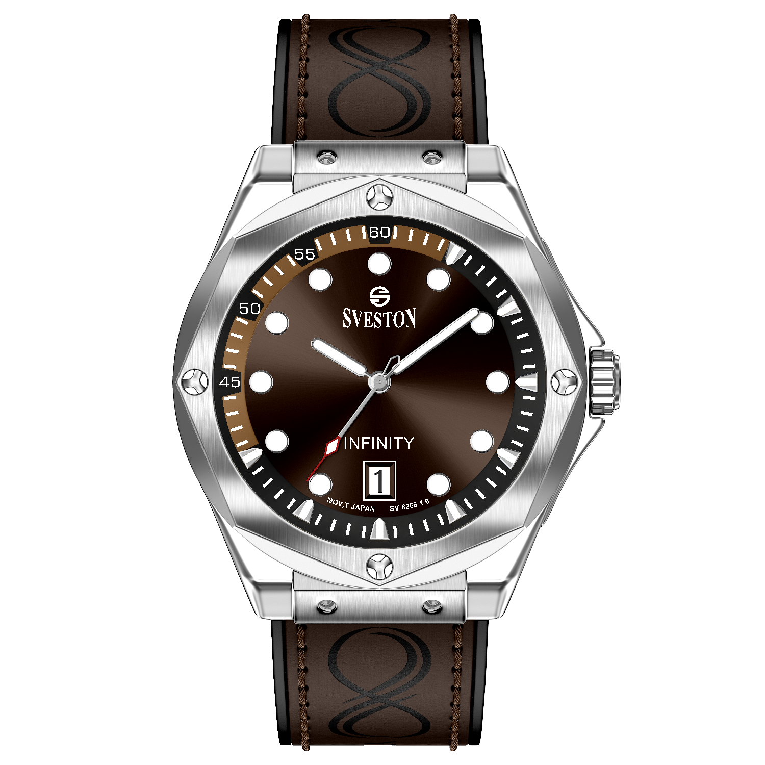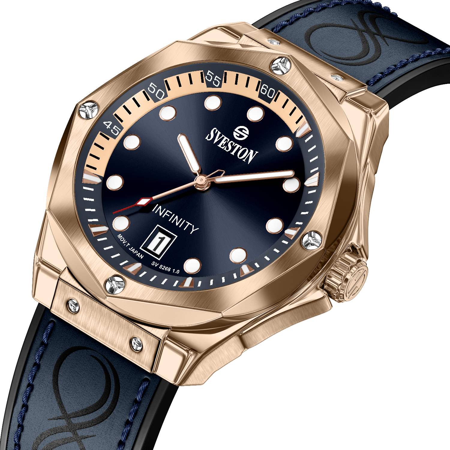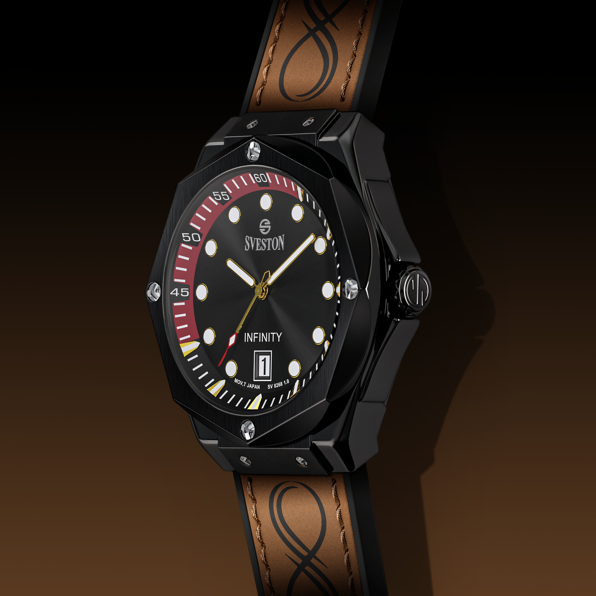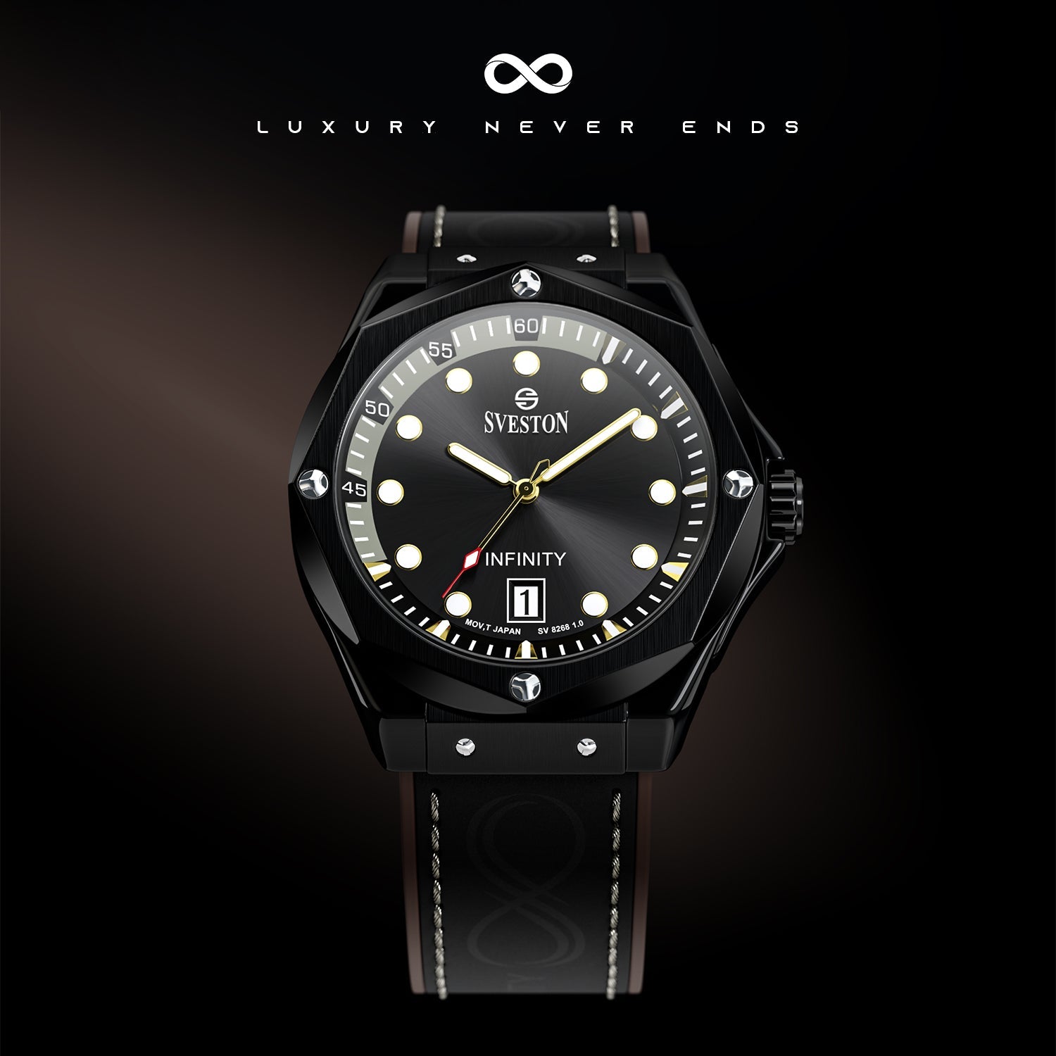Sveston Infinity is a men's sports watch with a Rubber strap. It has a bold 39mm dial and comes in a high-quality luxury watch case. Designed for lasting style and daily comfort, it combines elegance and practicality.