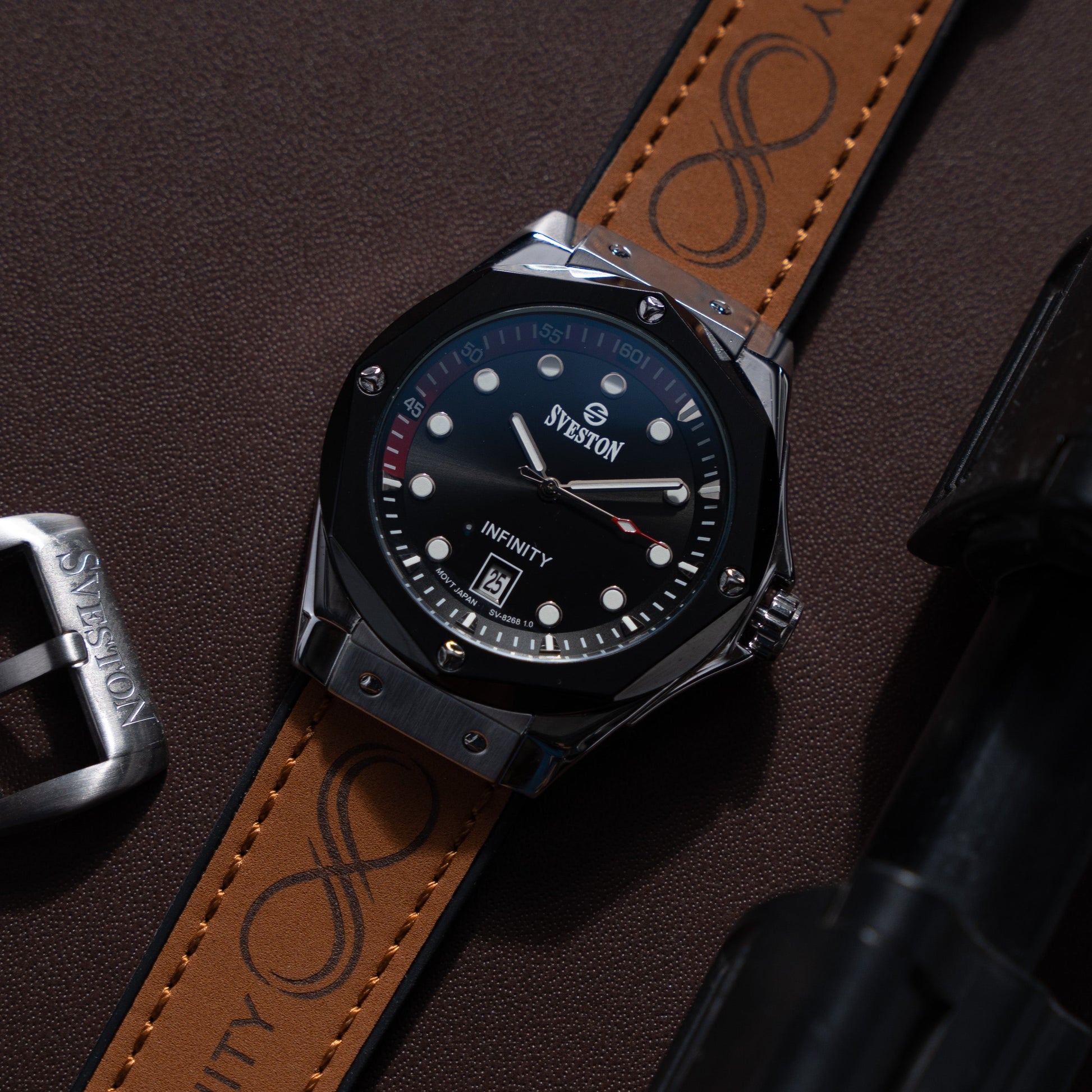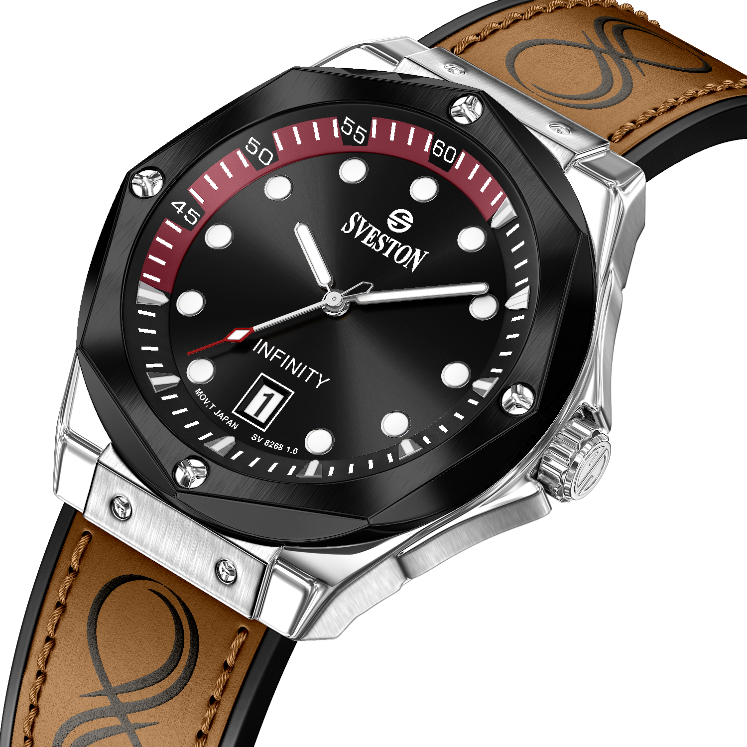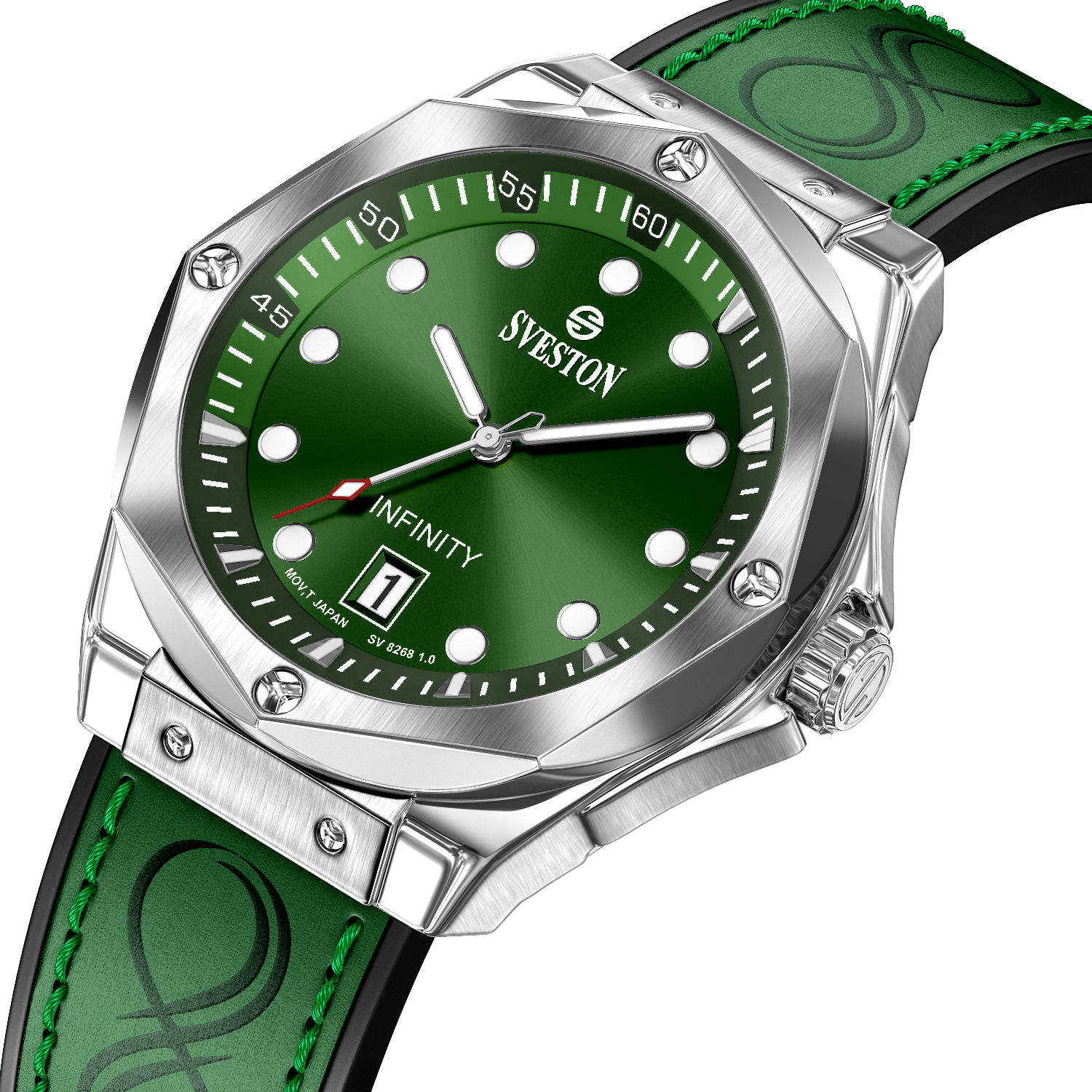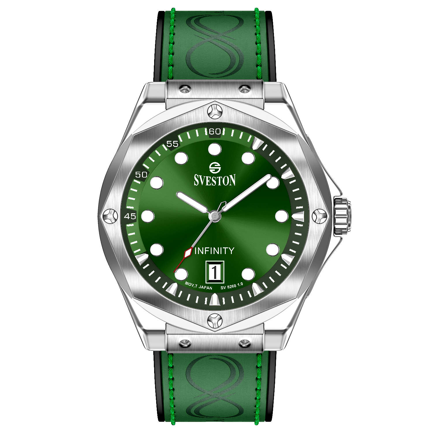 Sveston Infinity is a men's sports watch with a Rubber strap. It has a bold 39mm dial and comes in a high-quality luxury watch case. Designed for lasting style and daily comfort, it combines elegance and practicality.