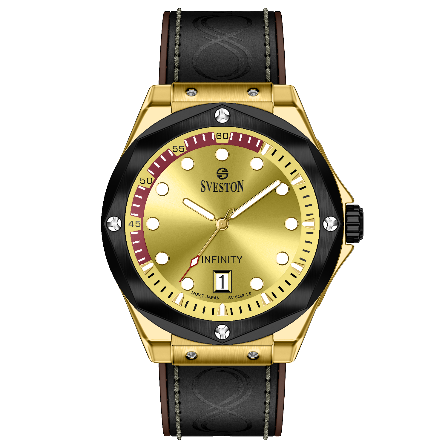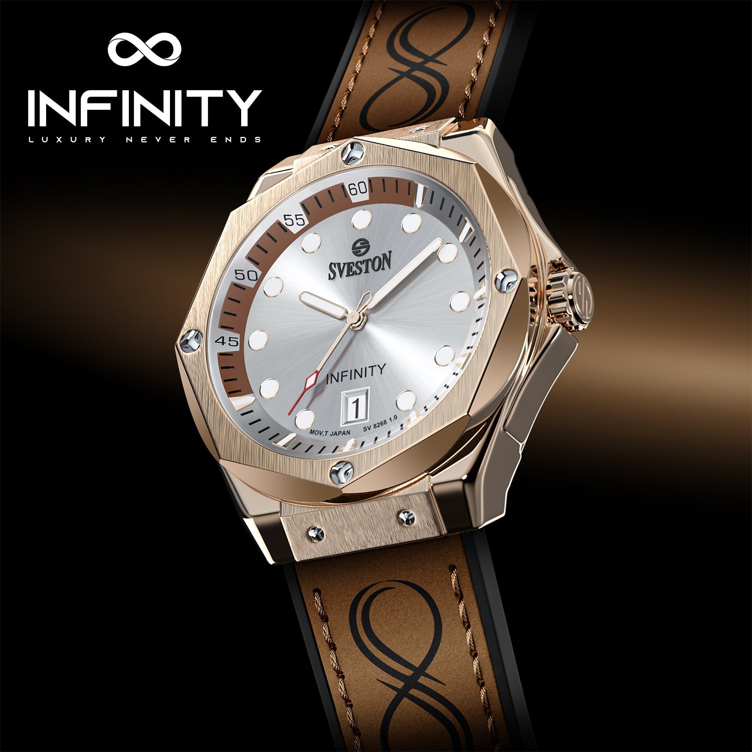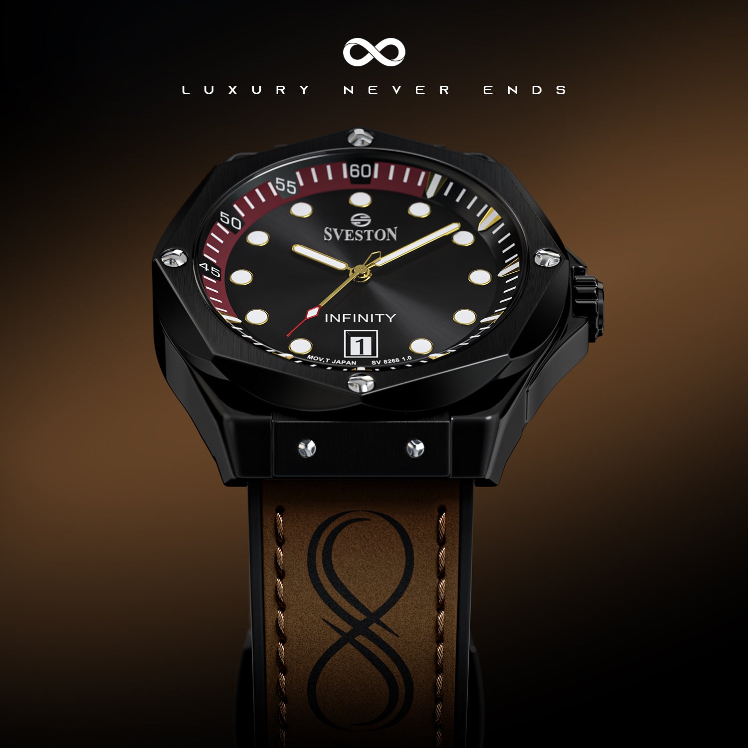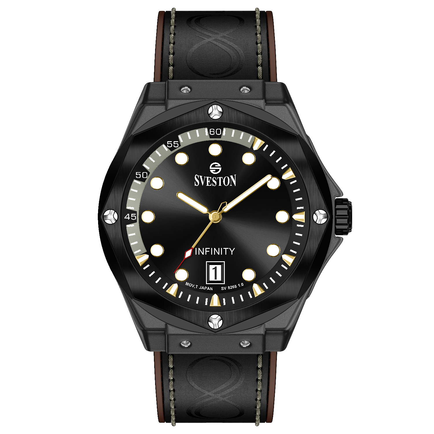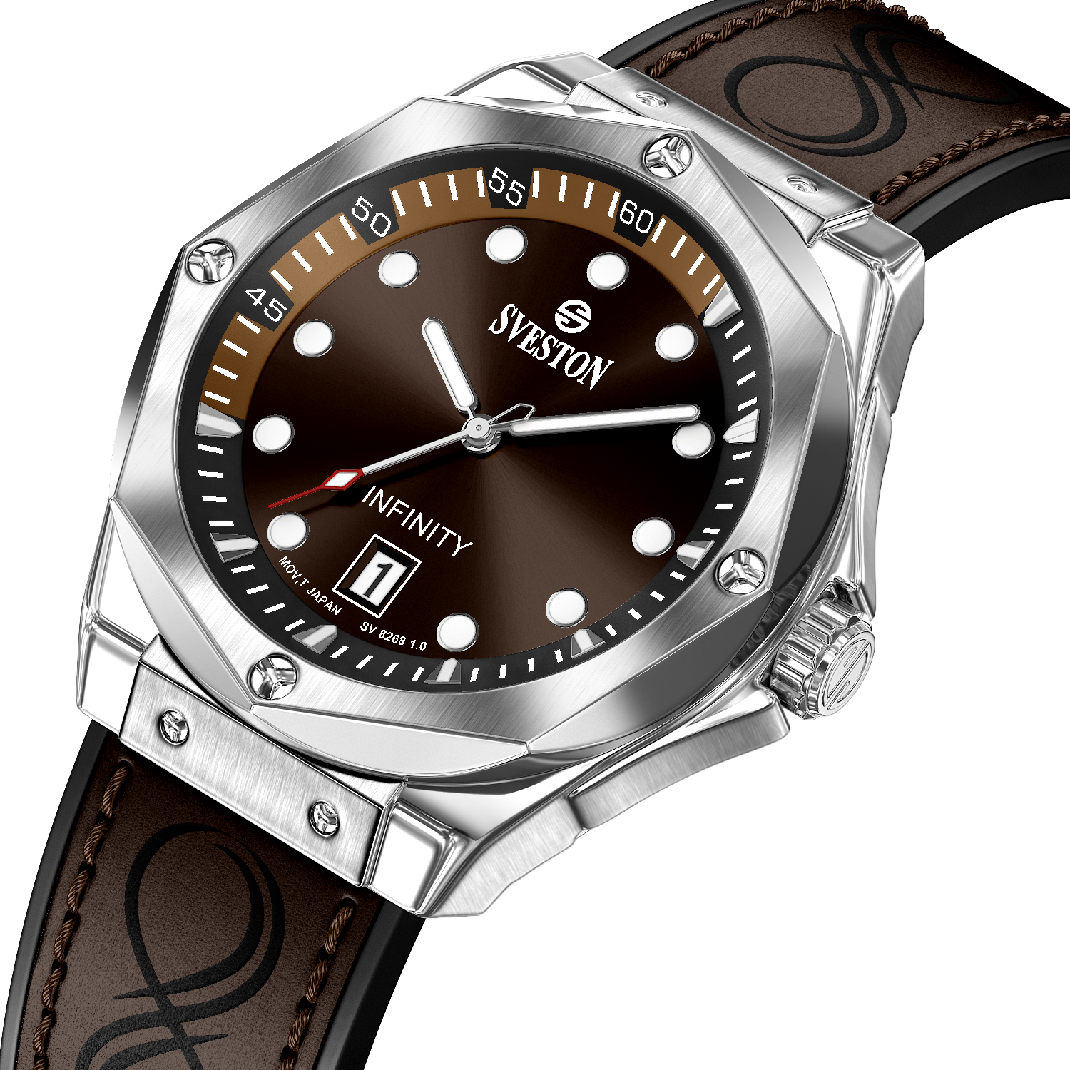 Sveston Infinity is a men's sports watch with a Rubber strap. It has a bold 39mm dial and comes in a high-quality luxury watch case. Designed for lasting style and daily comfort, it combines elegance and practicality.