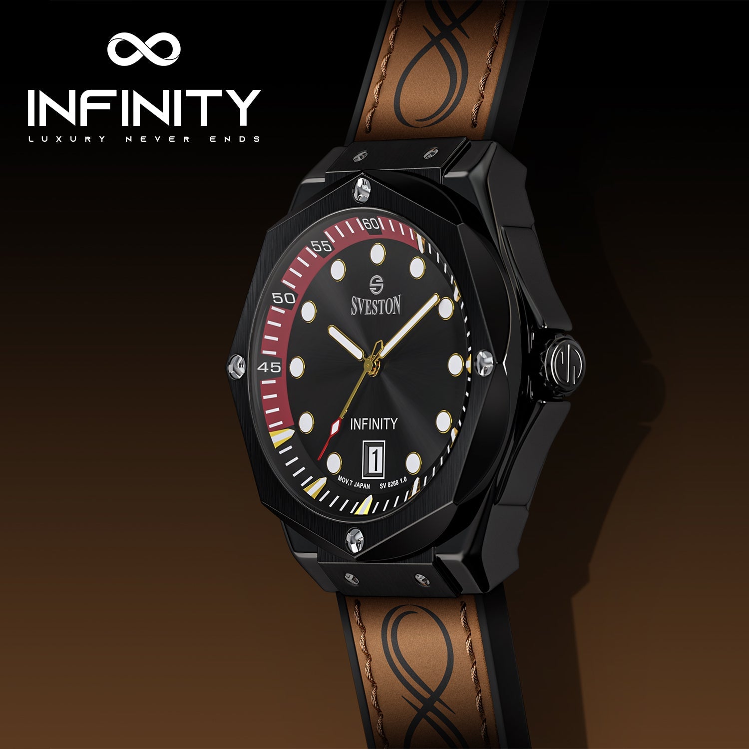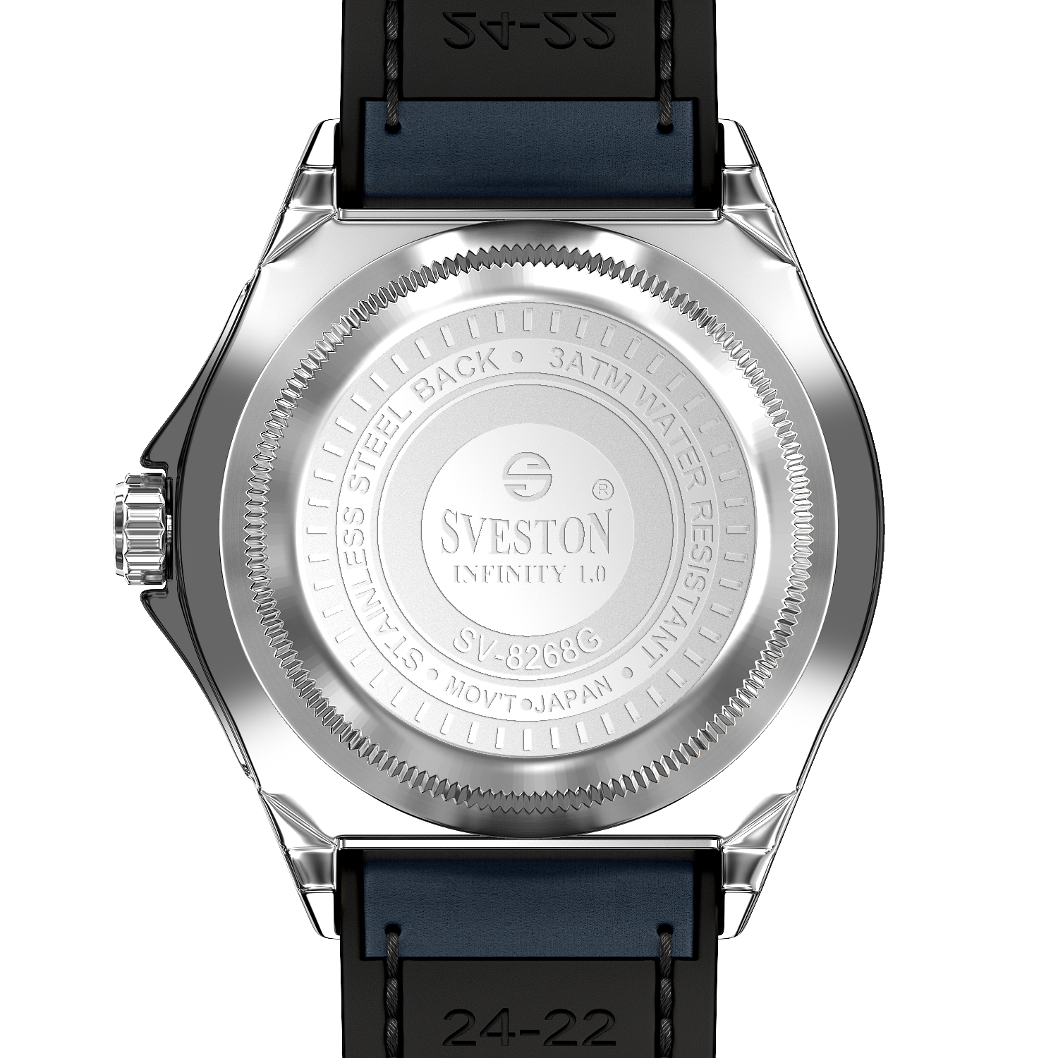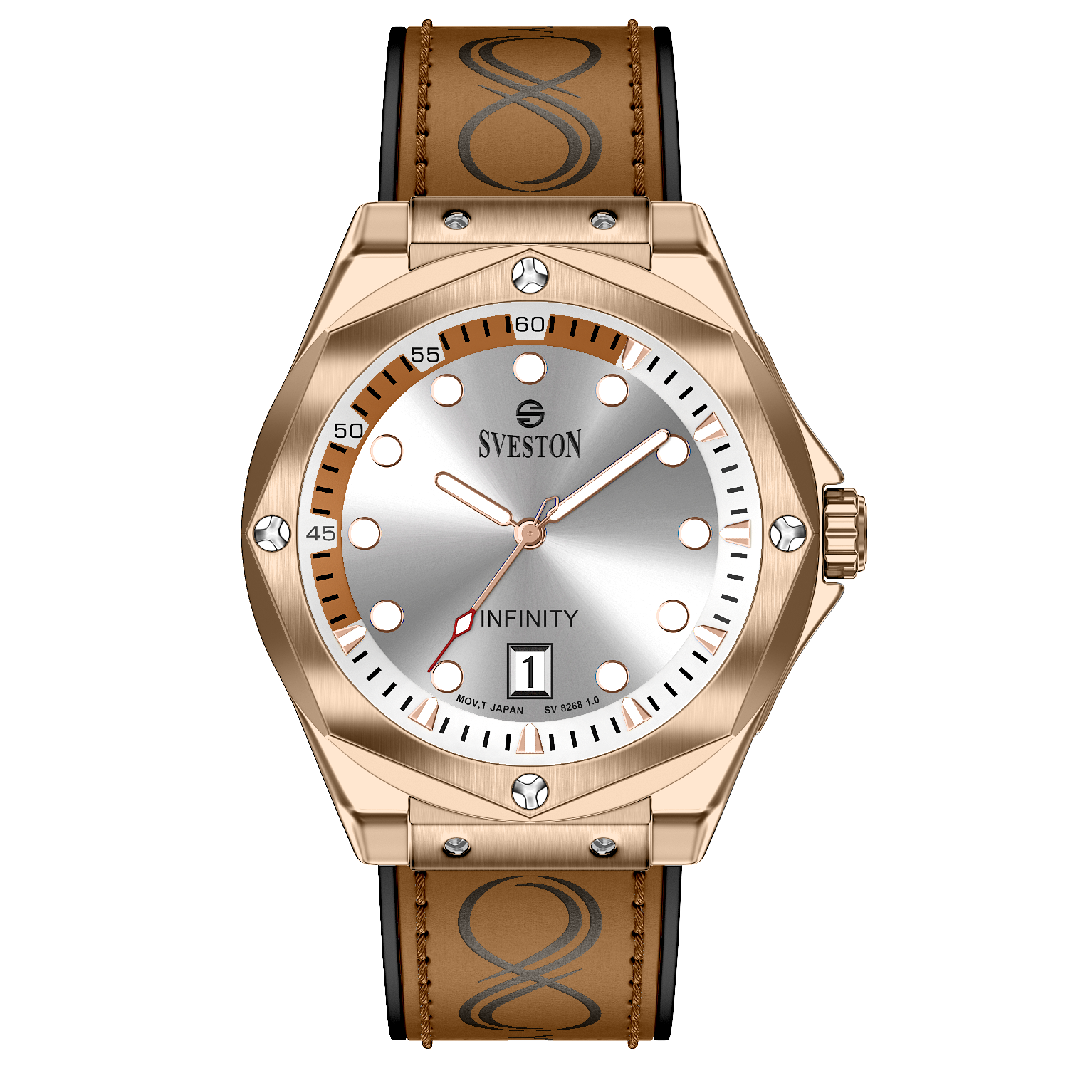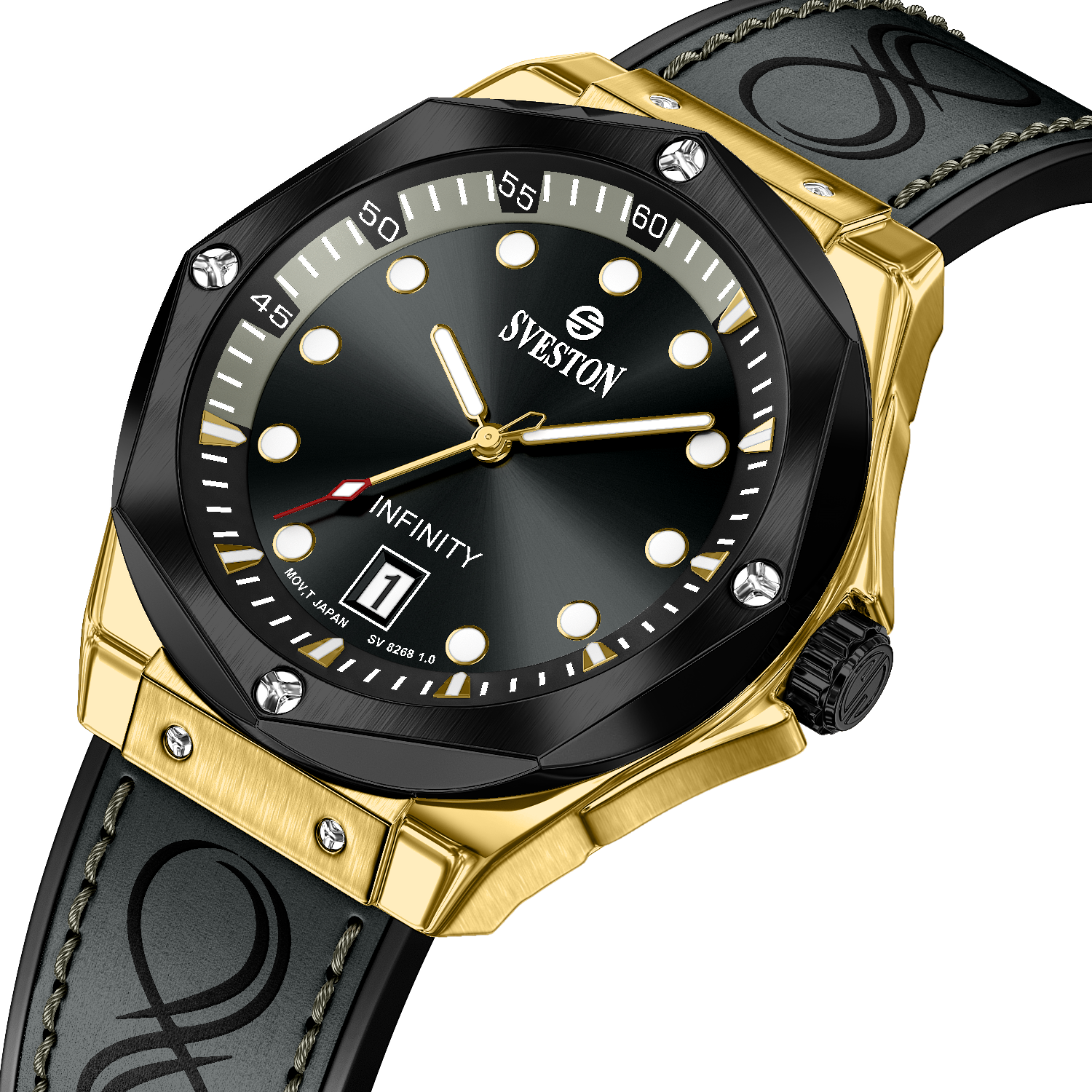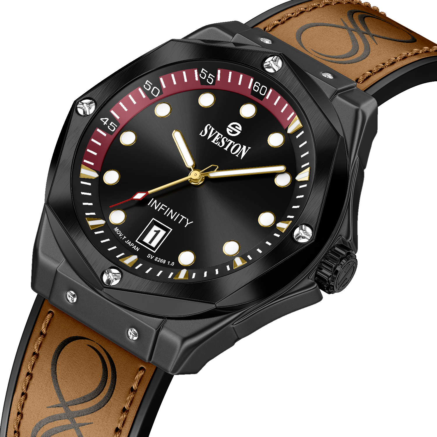 Sveston Infinity is a men's sports watch with a Rubber strap. It has a bold 39mm dial and comes in a high-quality luxury watch case. Designed for lasting style and daily comfort, it combines elegance and practicality.