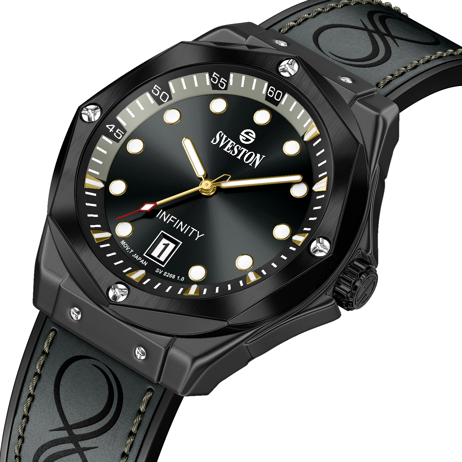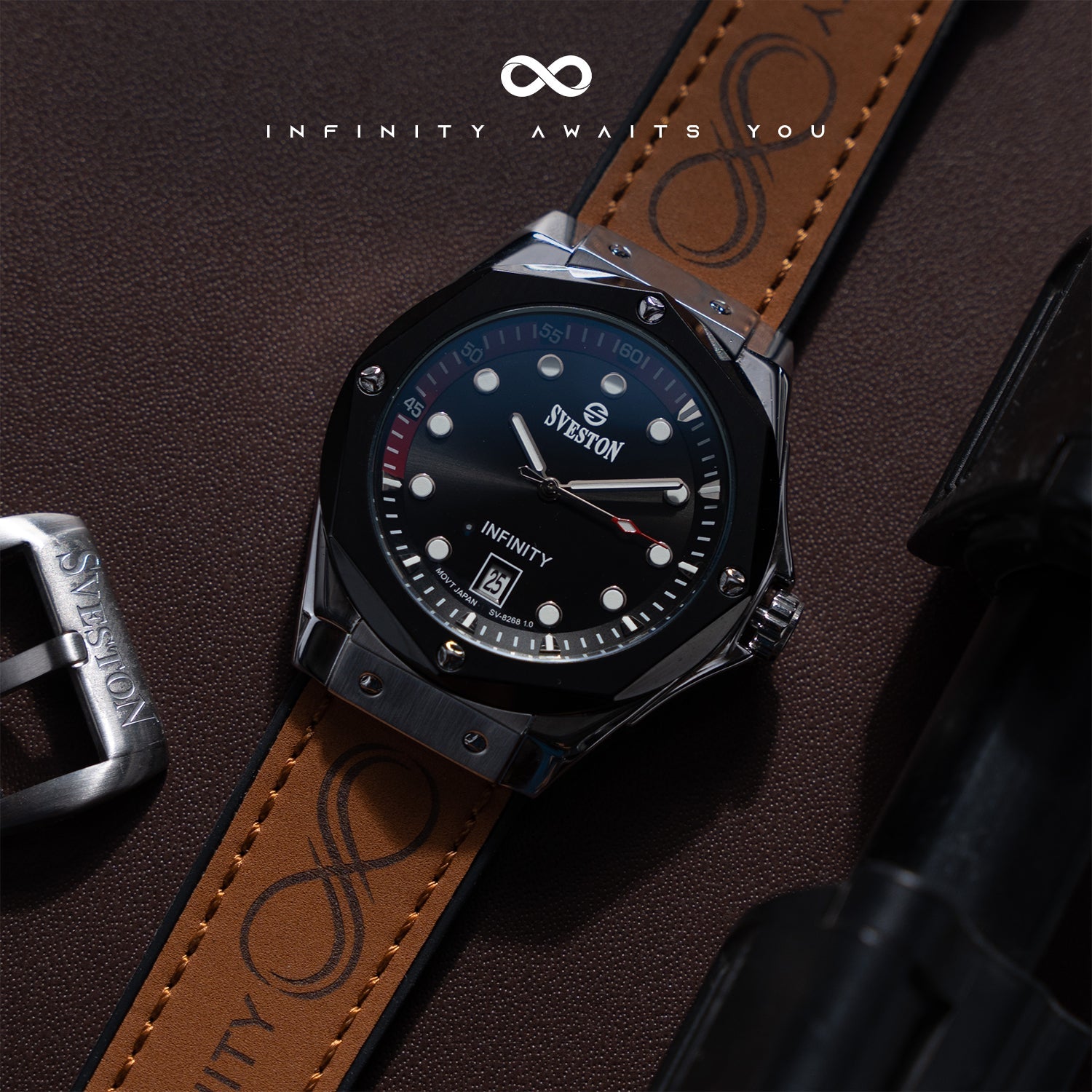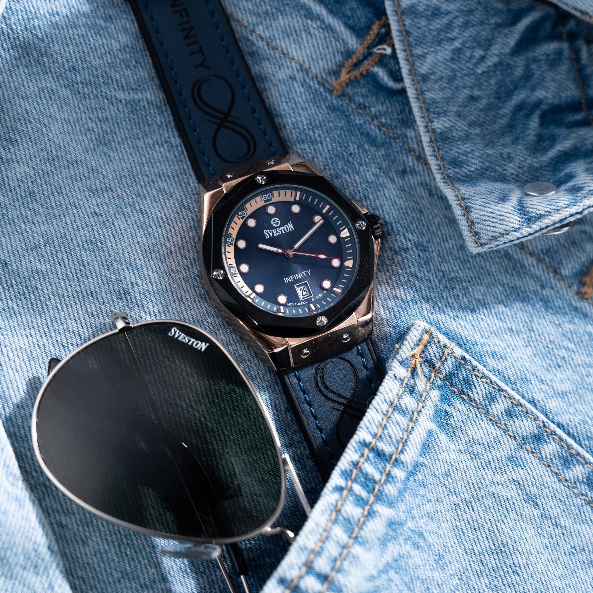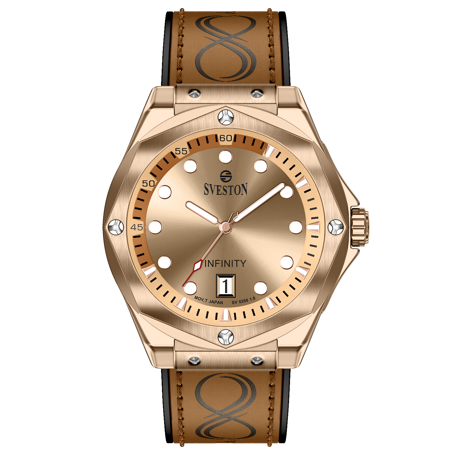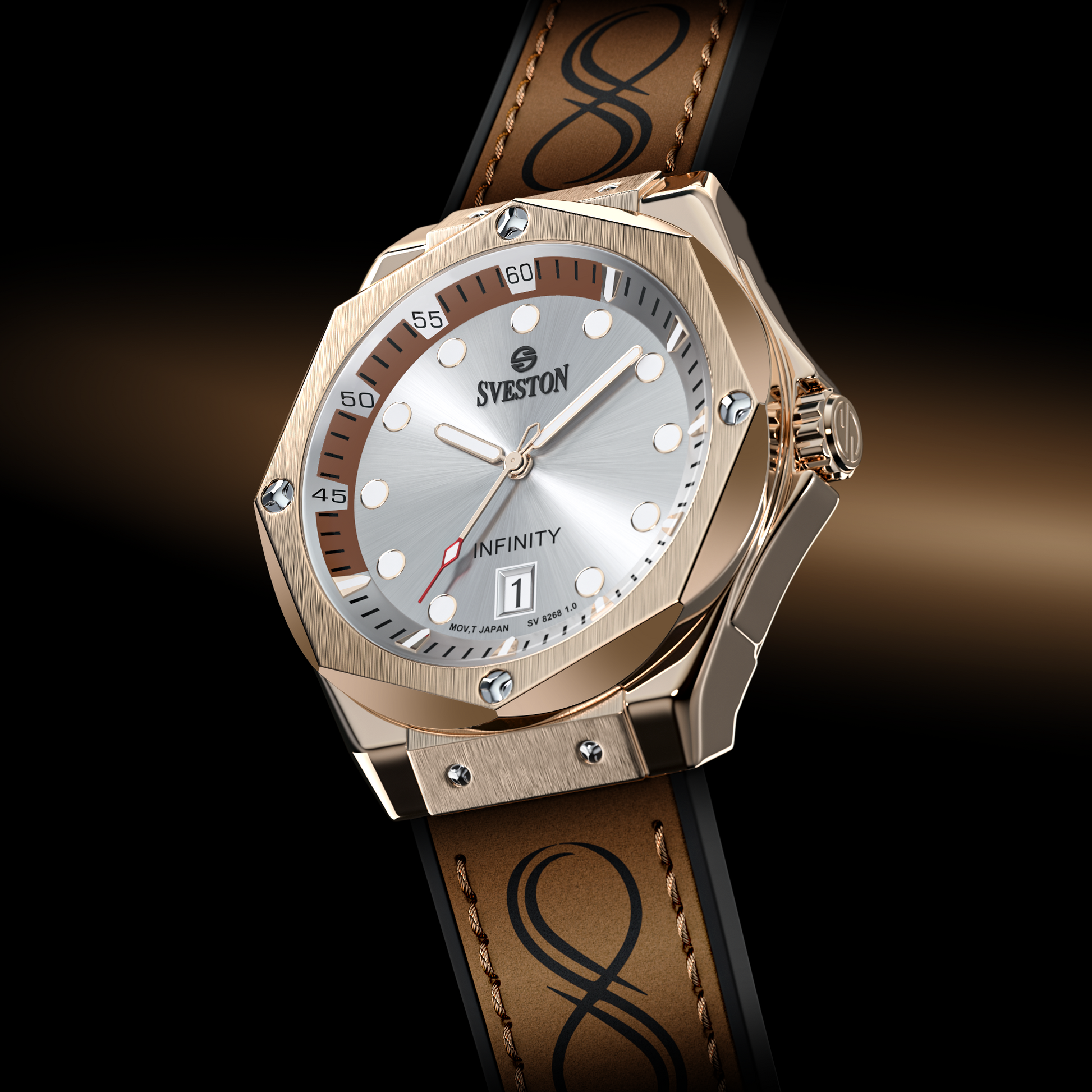 Sveston Infinity is a men's sports watch with a Rubber strap. It has a bold 39mm dial and comes in a high-quality luxury watch case. Designed for lasting style and daily comfort, it combines elegance and practicality.