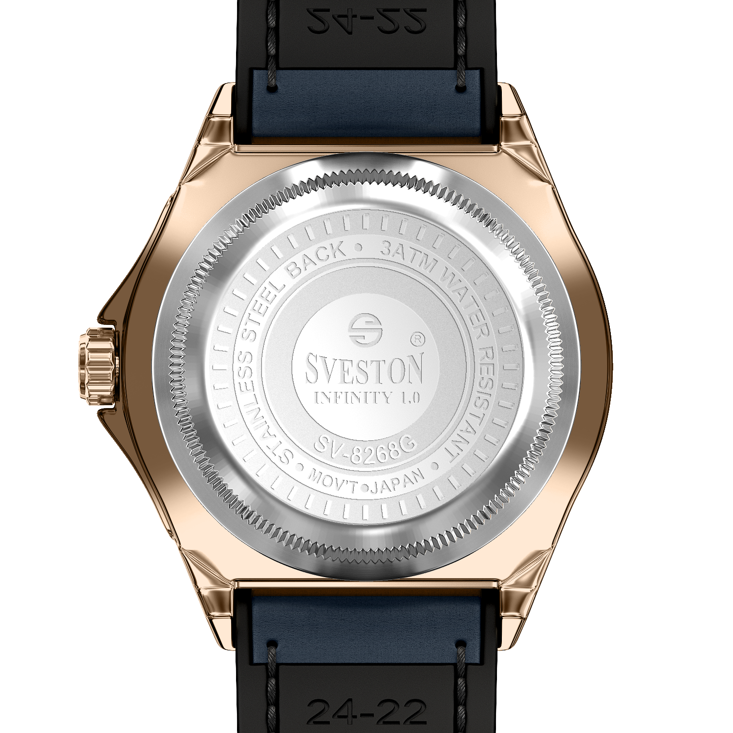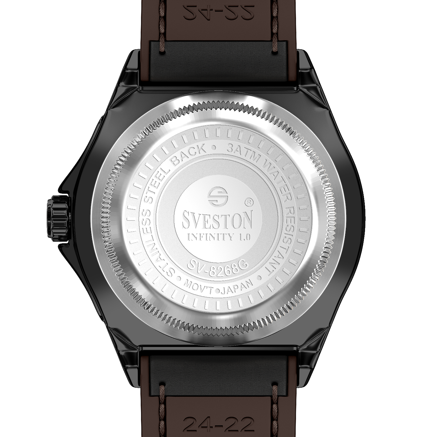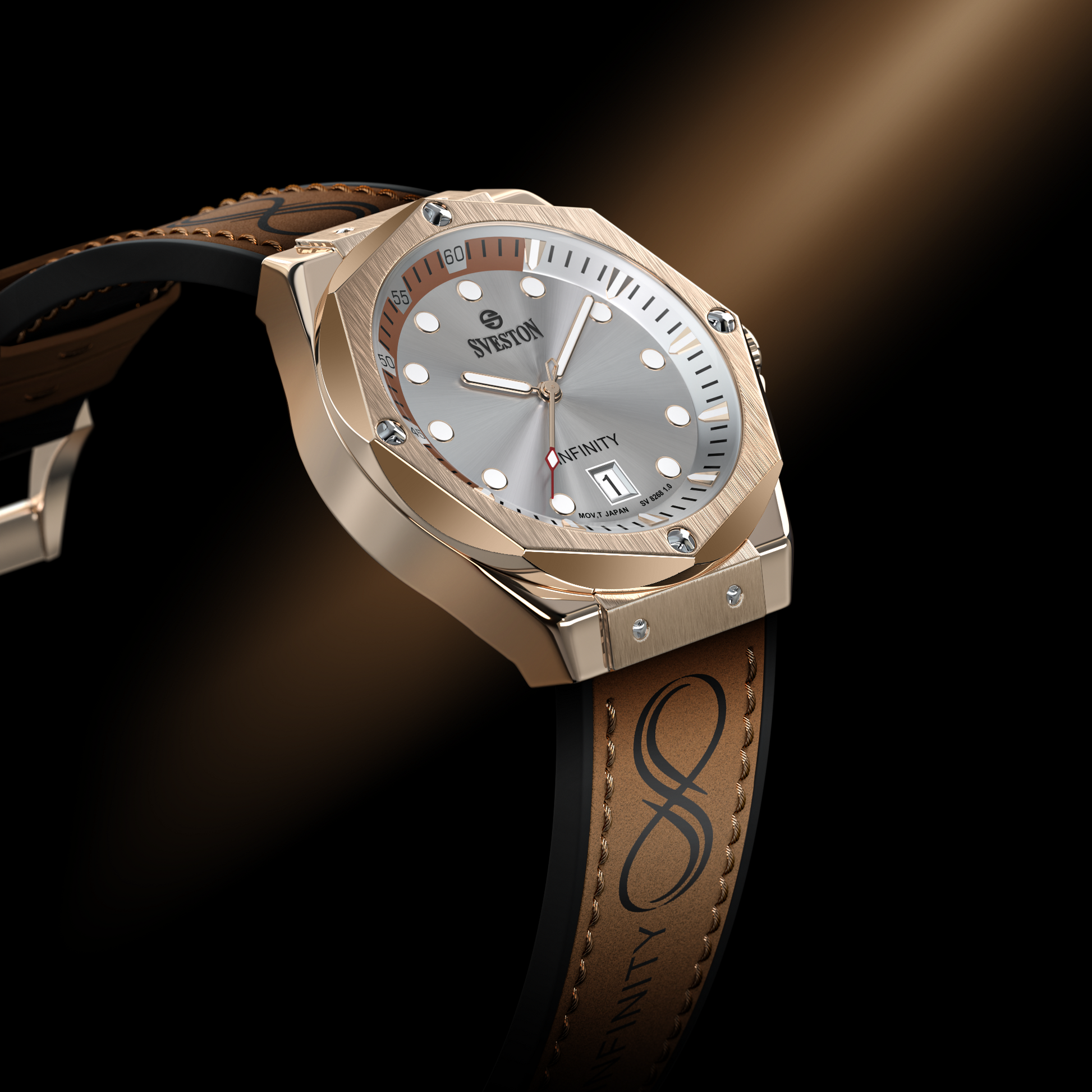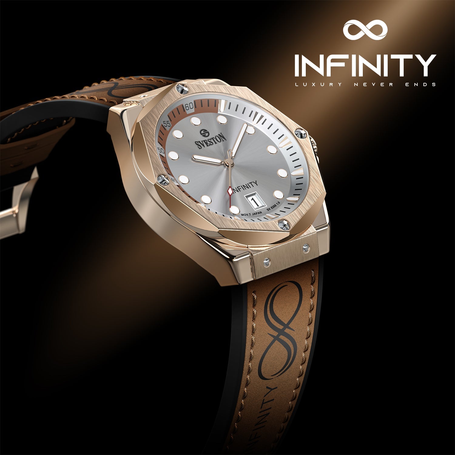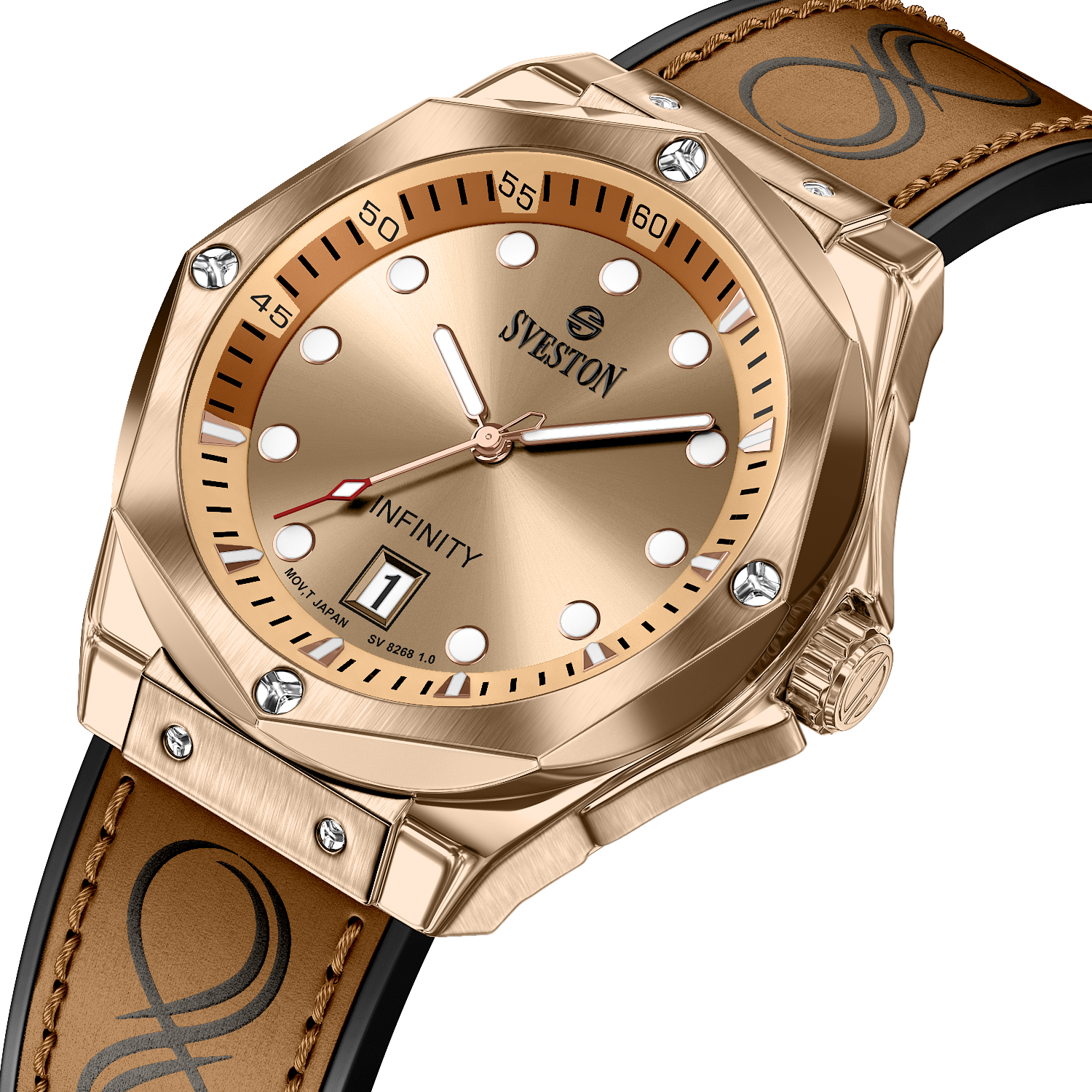 Sveston Infinity is a men's sports watch with a Rubber strap. It has a bold 39mm dial and comes in a high-quality luxury watch case. Designed for lasting style and daily comfort, it combines elegance and practicality.