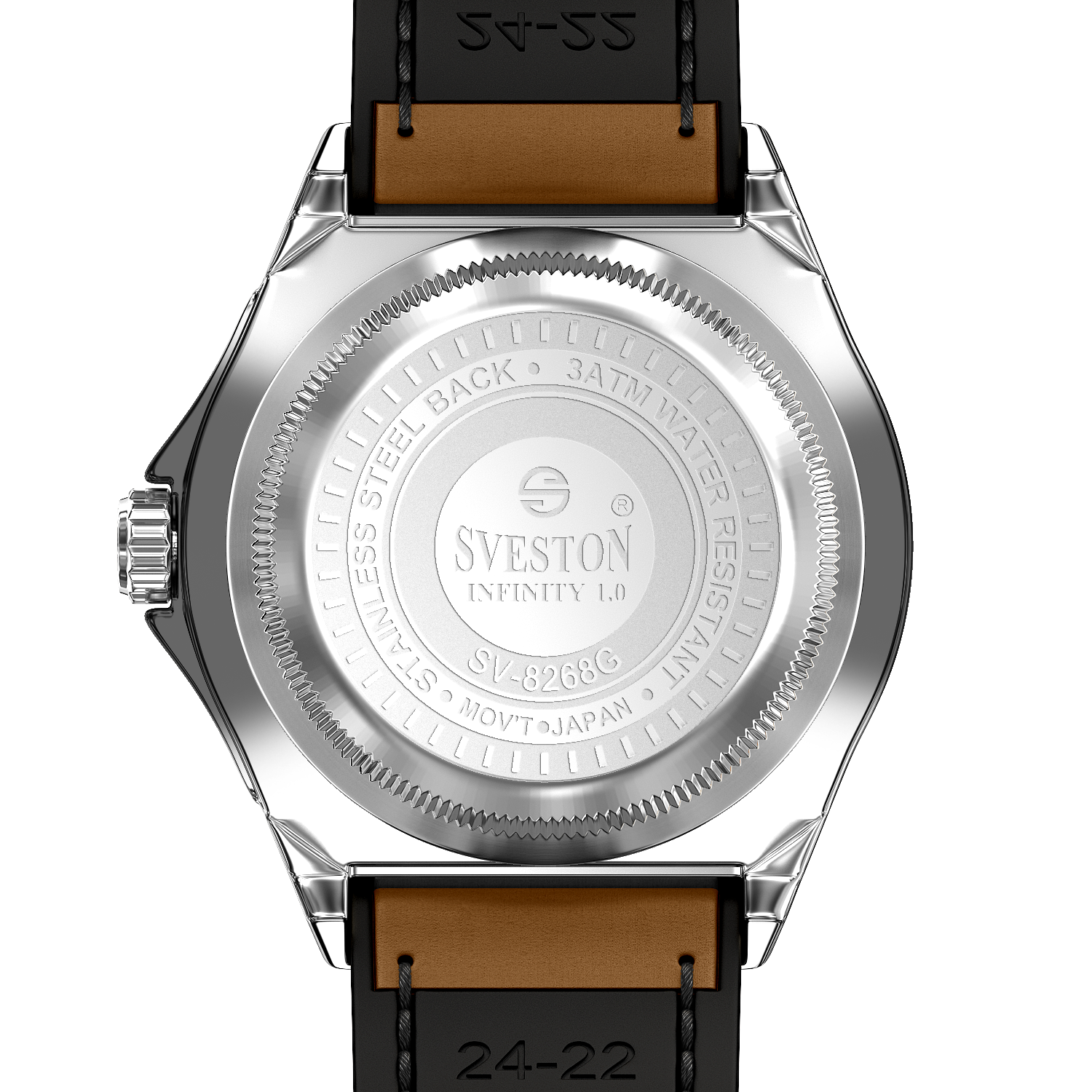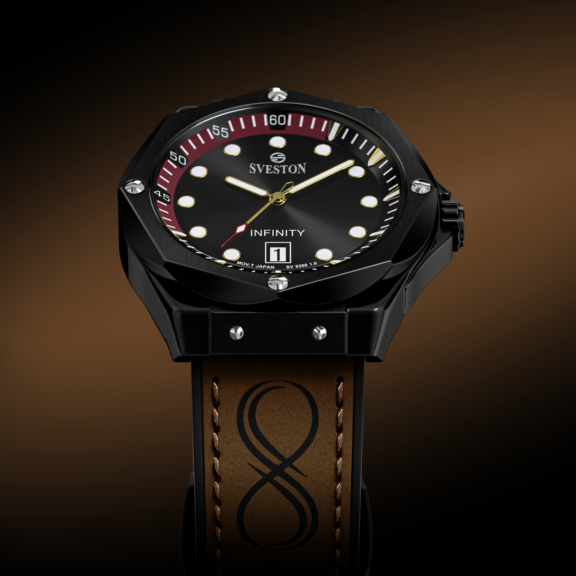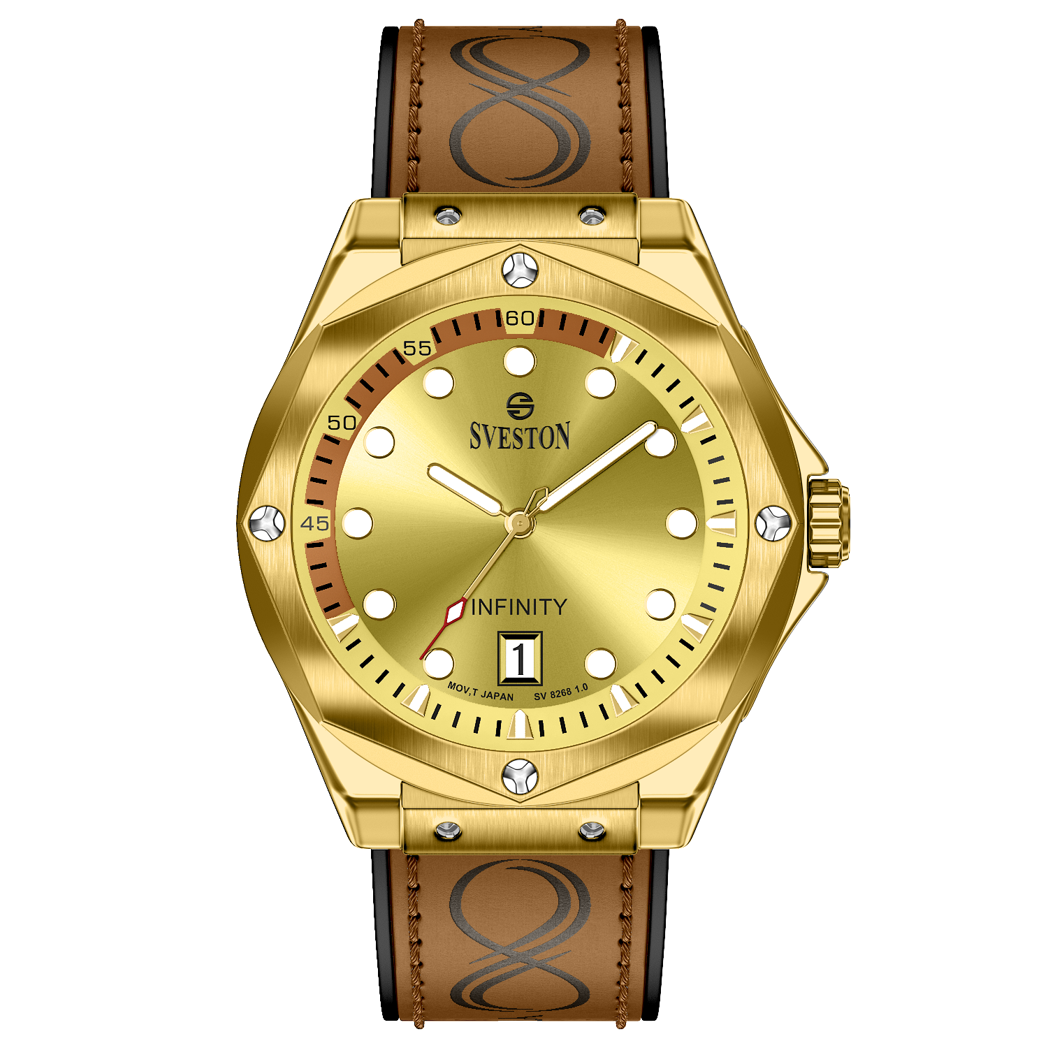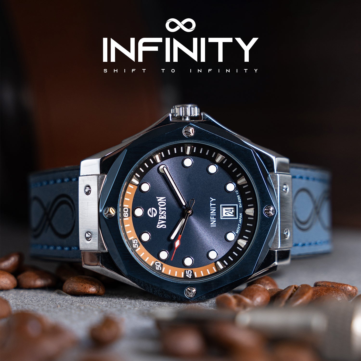 Sveston Infinity is a men's sports watch with a Rubber strap. It has a bold 39mm dial and comes in a high-quality luxury watch case. Designed for lasting style and daily comfort, it combines elegance and practicality.