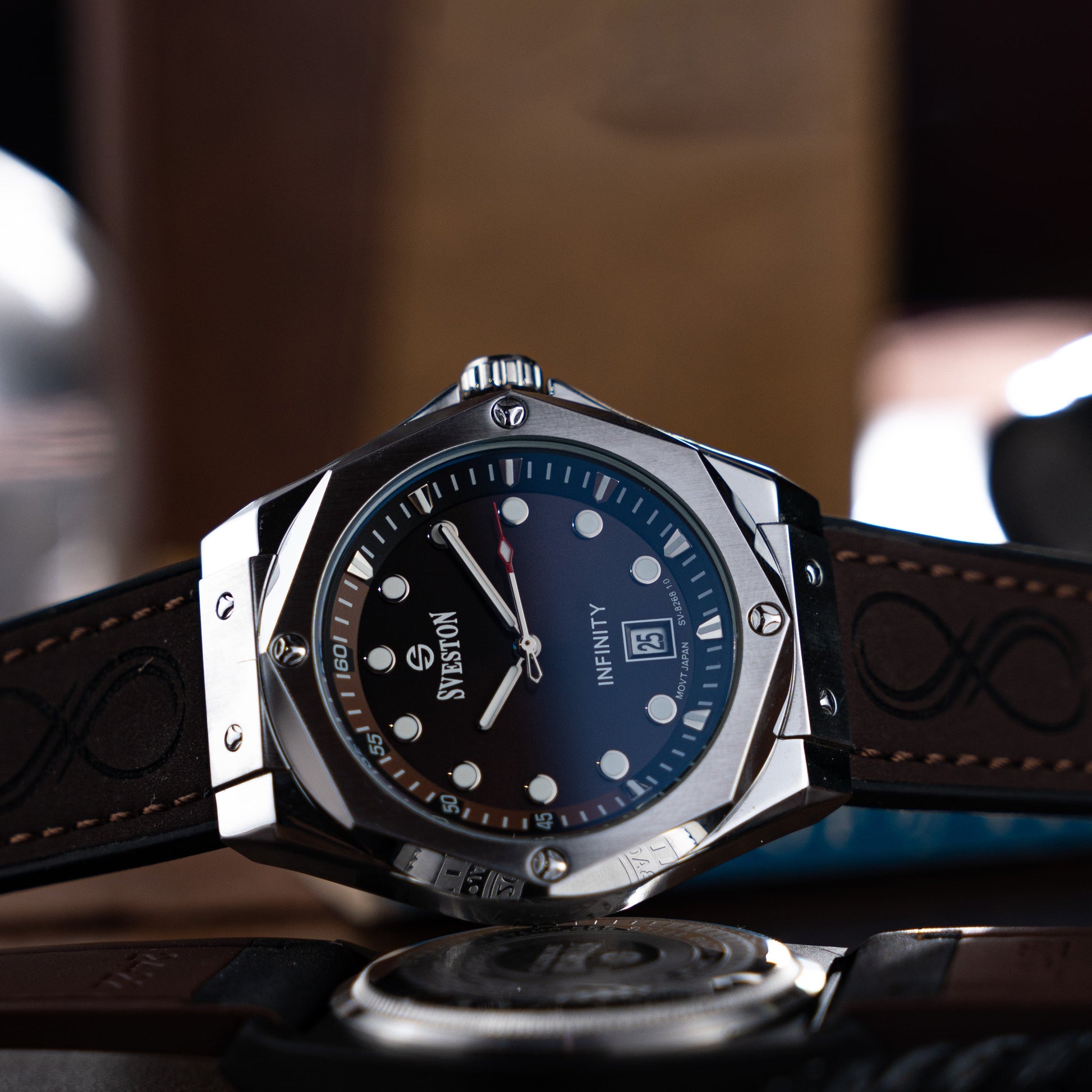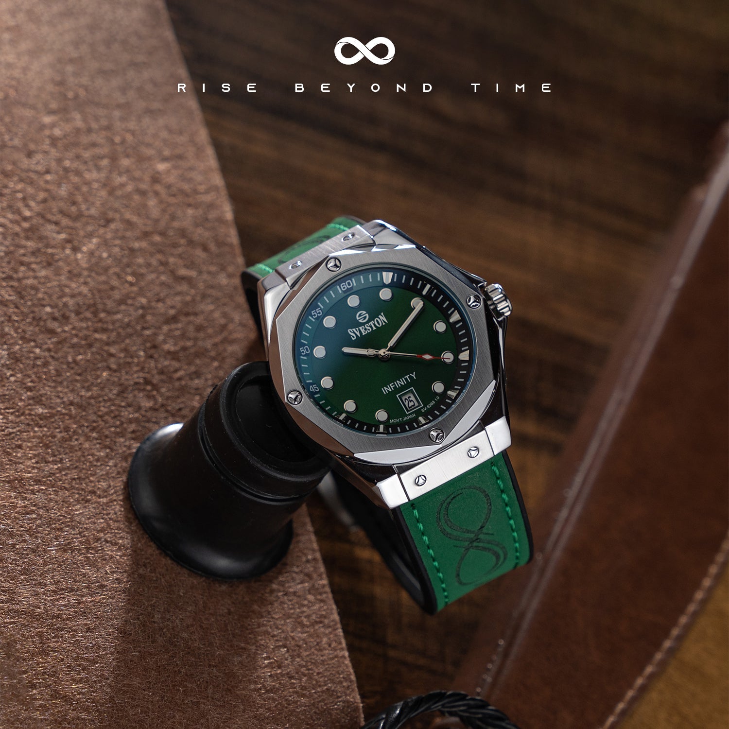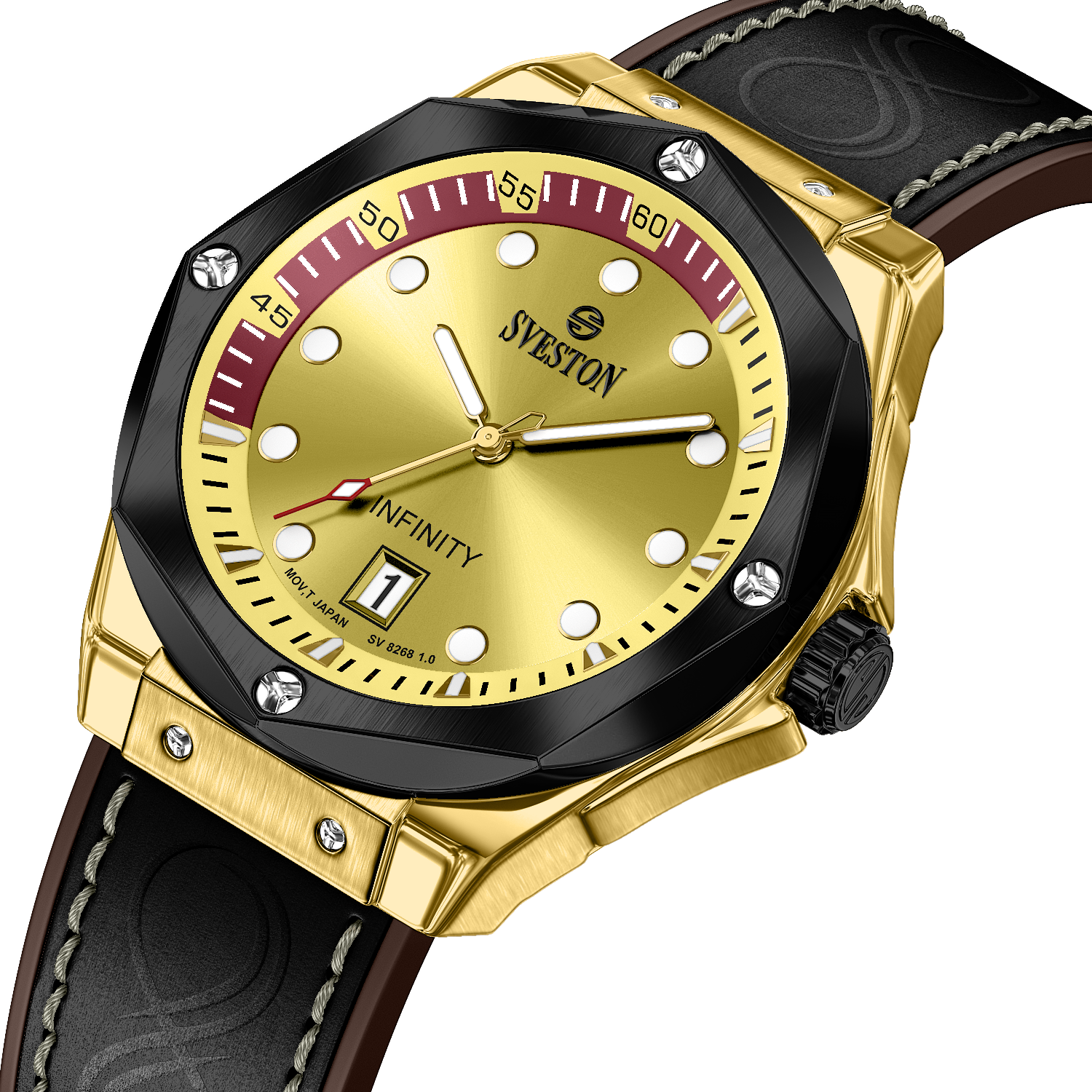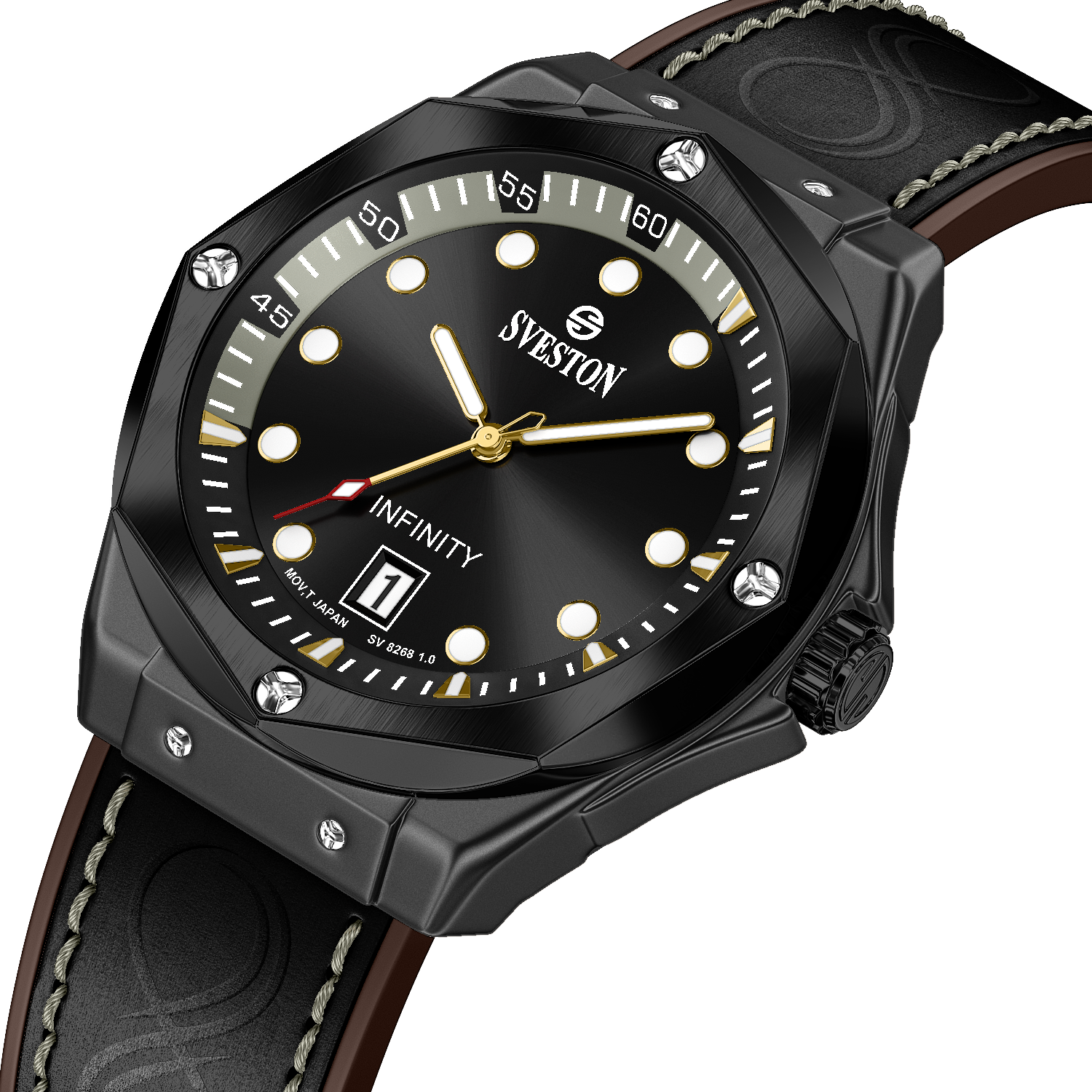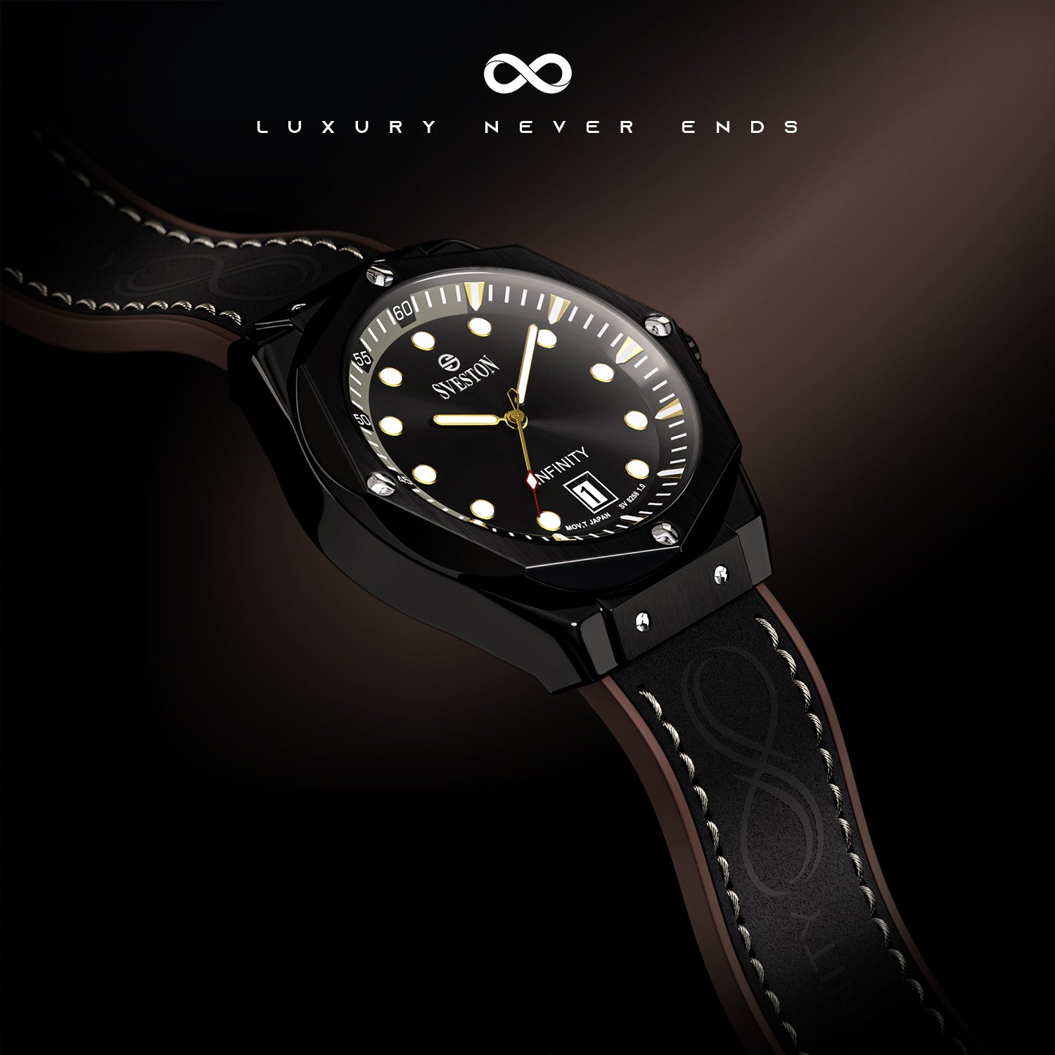 Sveston Infinity is a men's sports watch with a Rubber strap. It has a bold 39mm dial and comes in a high-quality luxury watch case. Designed for lasting style and daily comfort, it combines elegance and practicality.