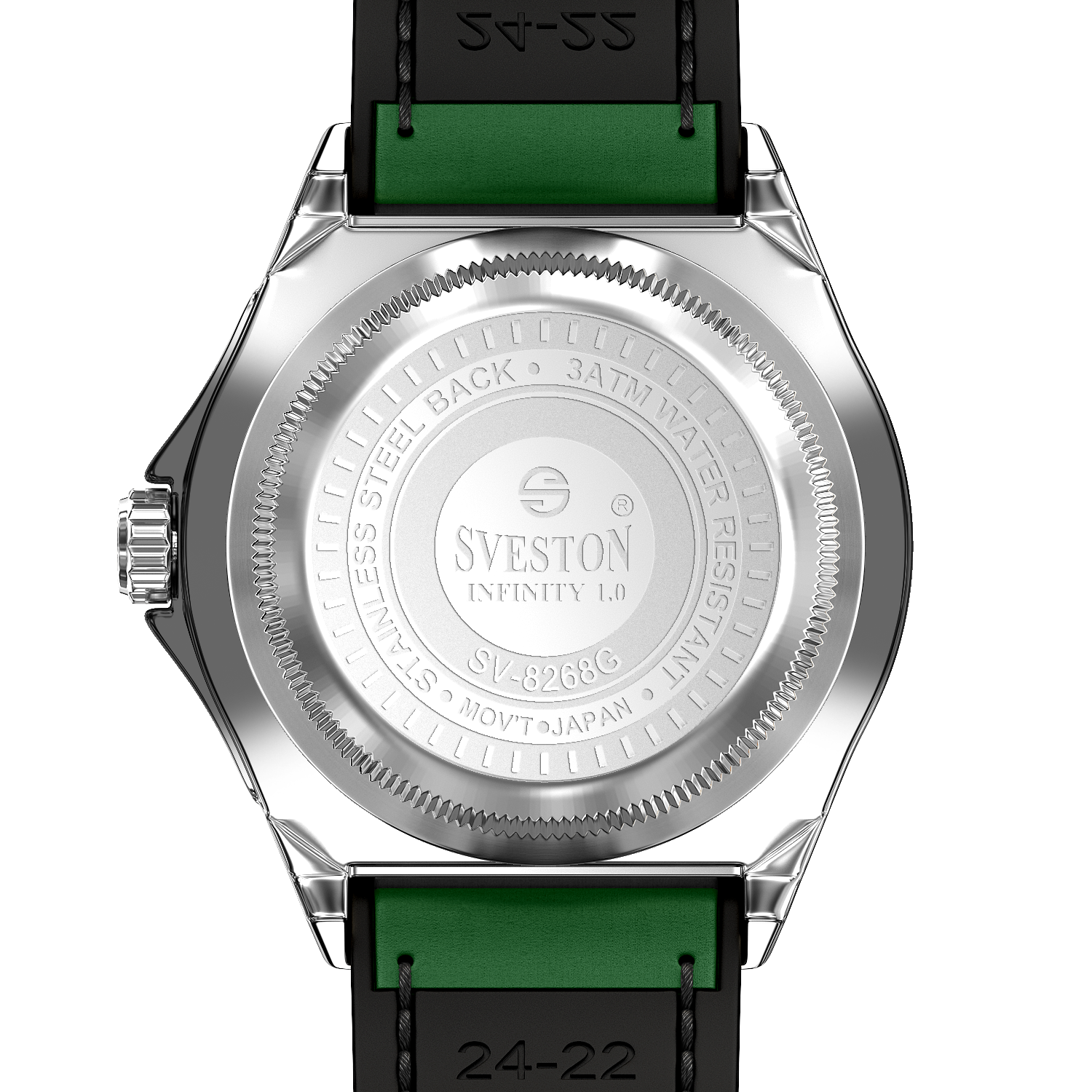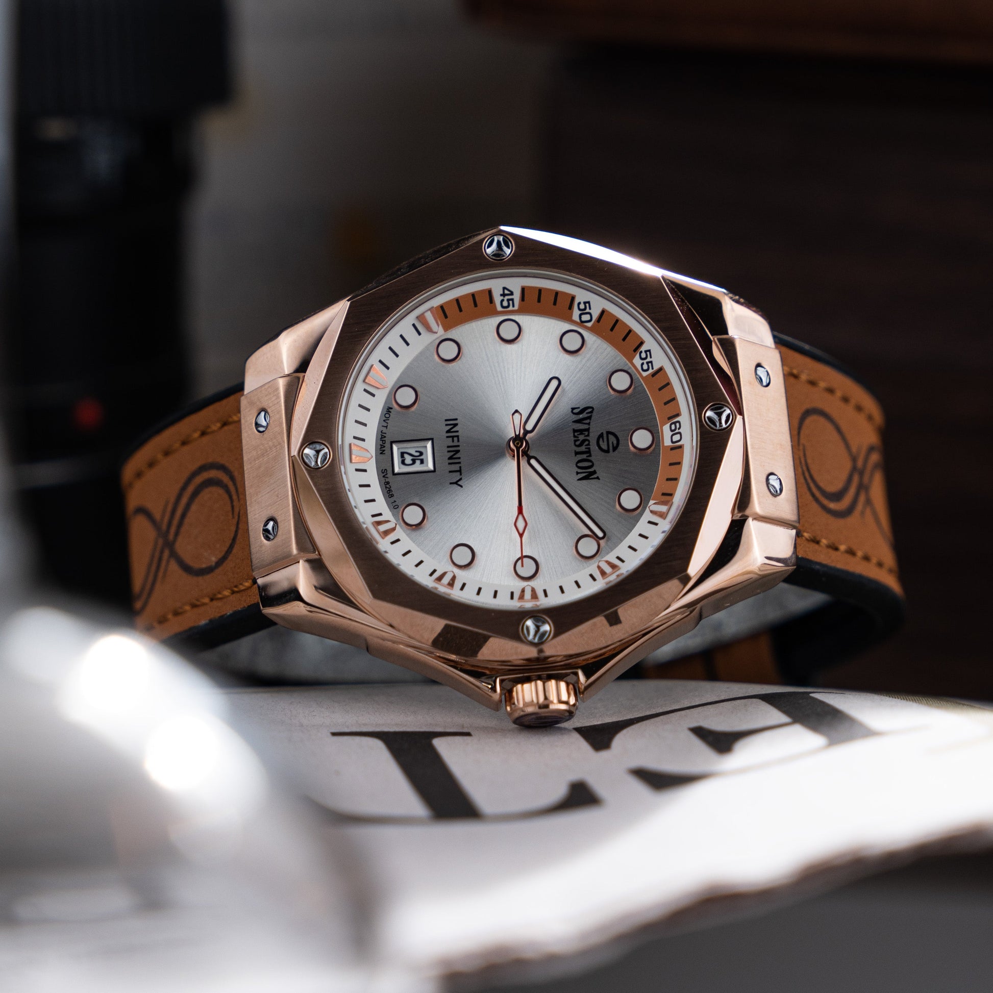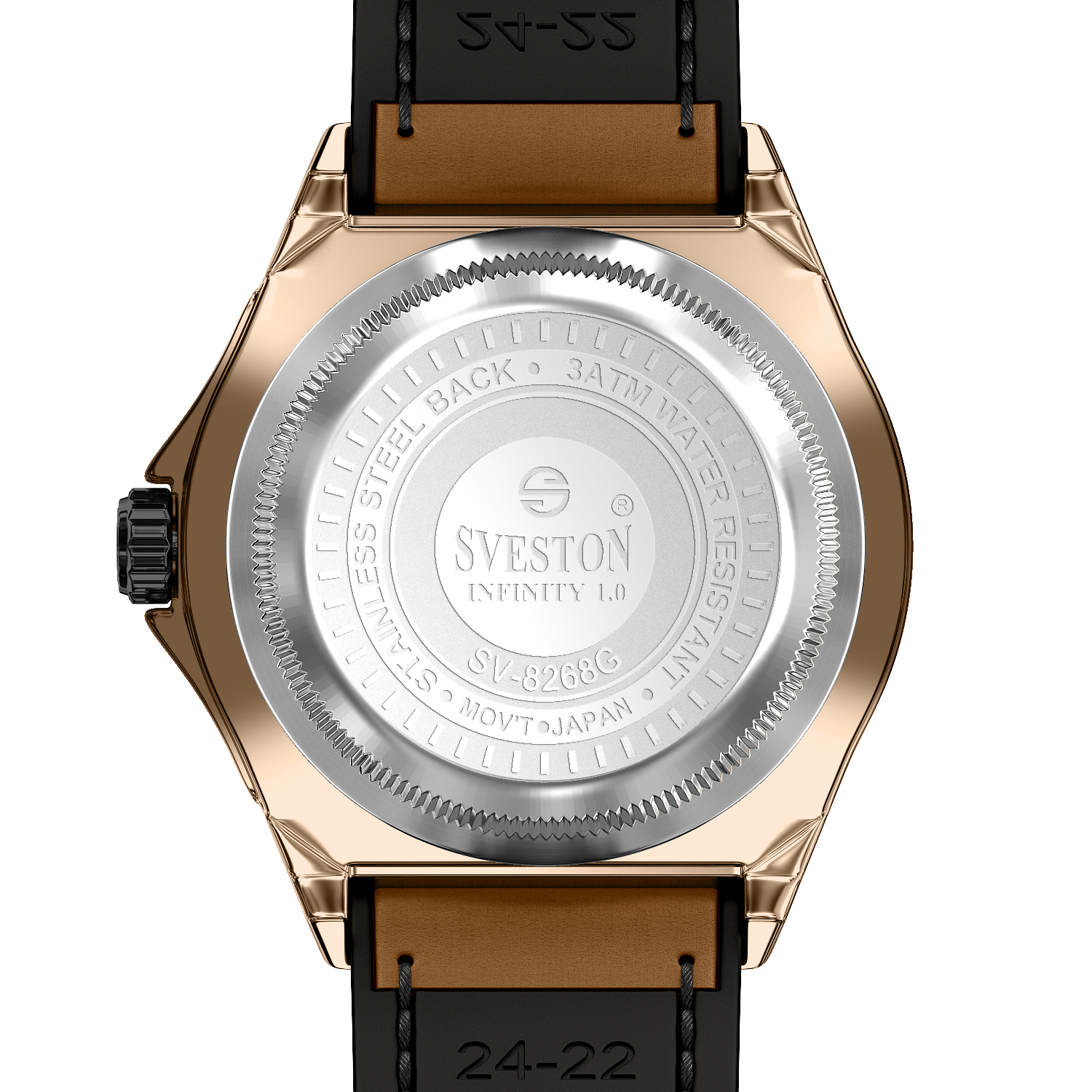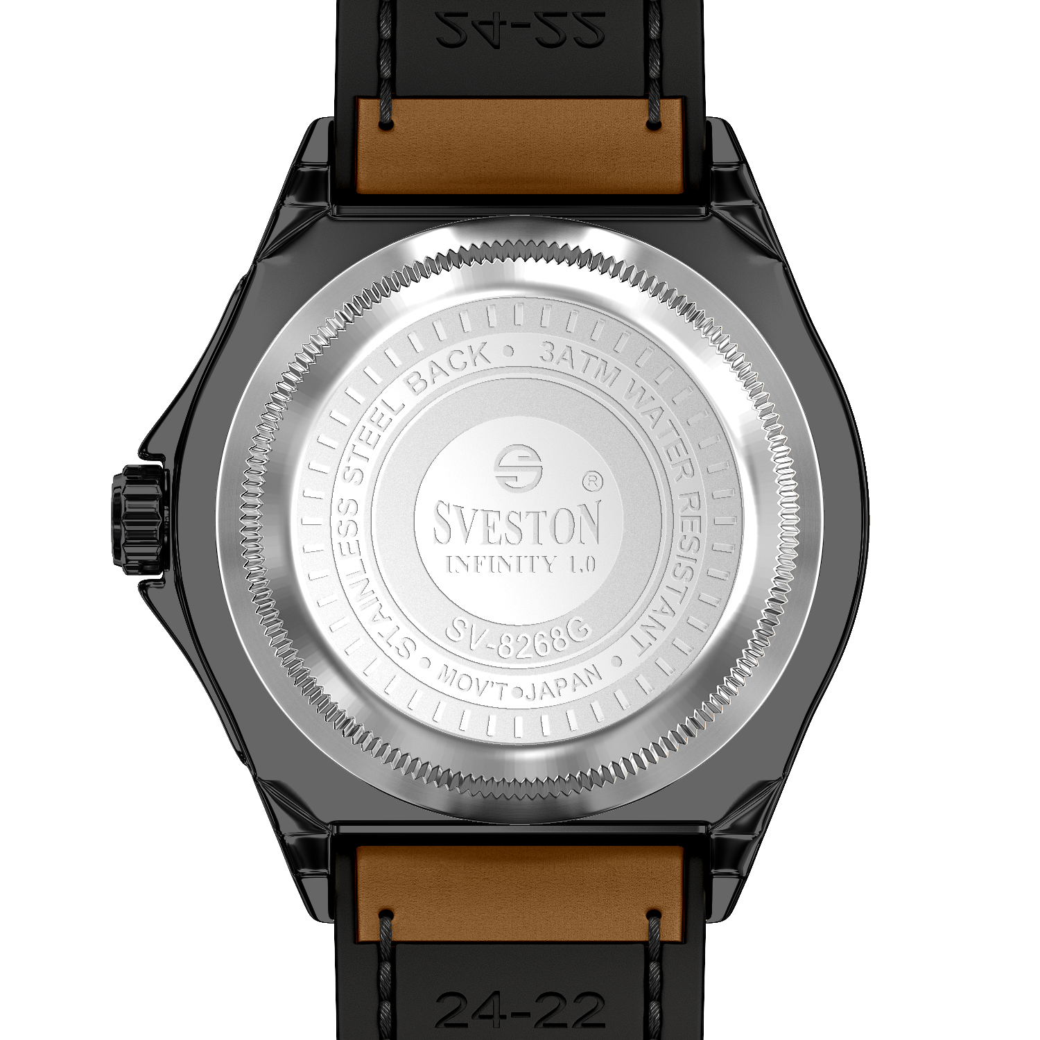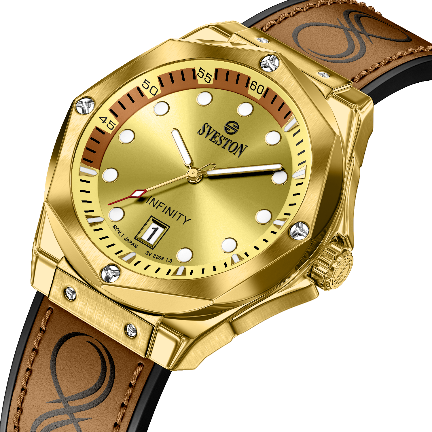Sveston Infinity is a men's sports watch with a Rubber strap. It has a bold 39mm dial and comes in a high-quality luxury watch case. Designed for lasting style and daily comfort, it combines elegance and practicality.
