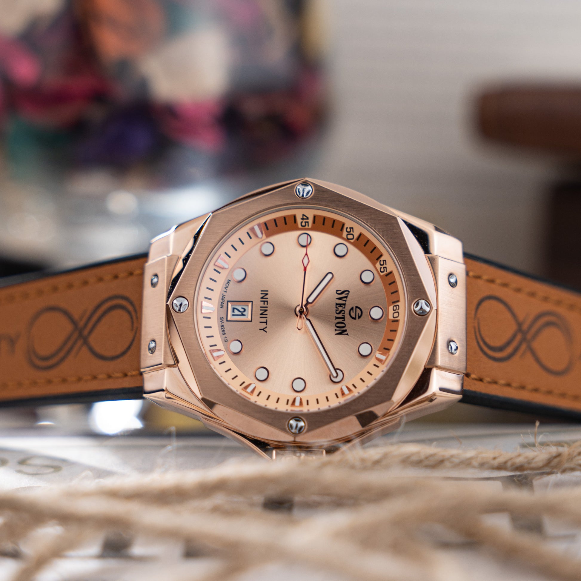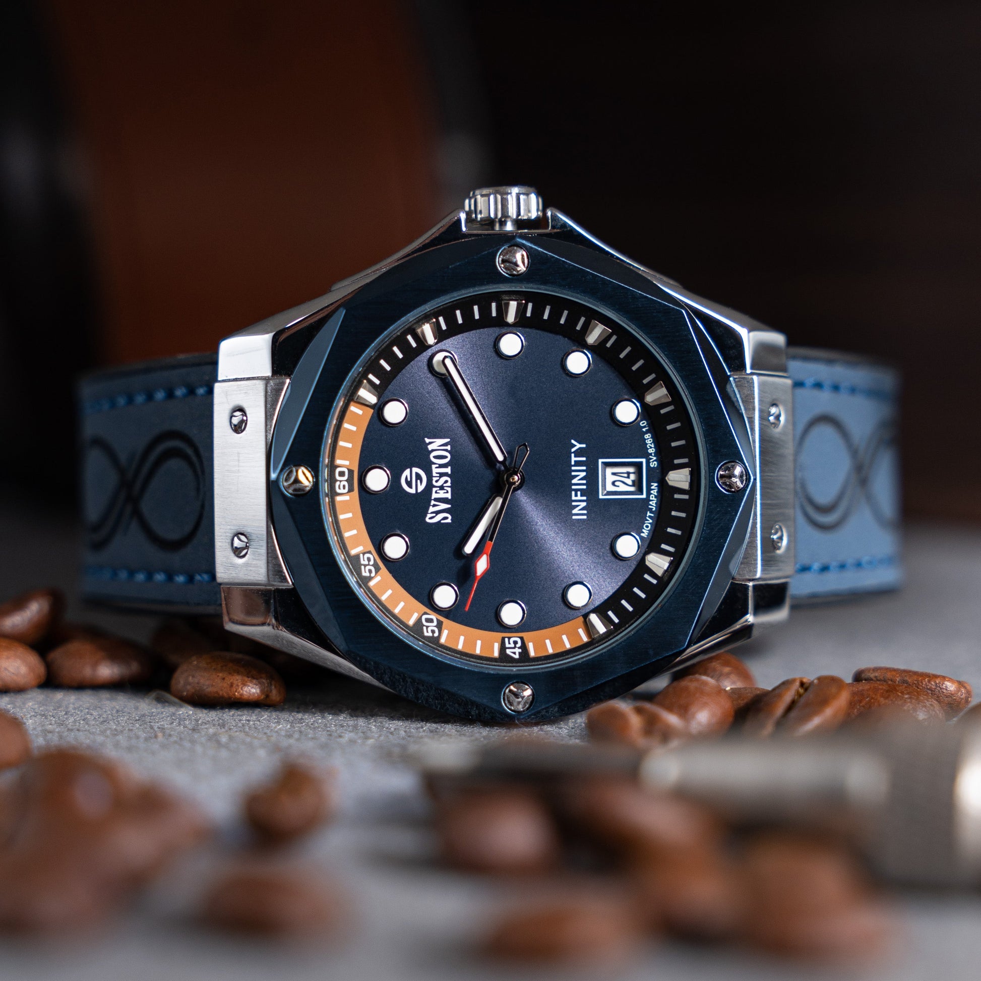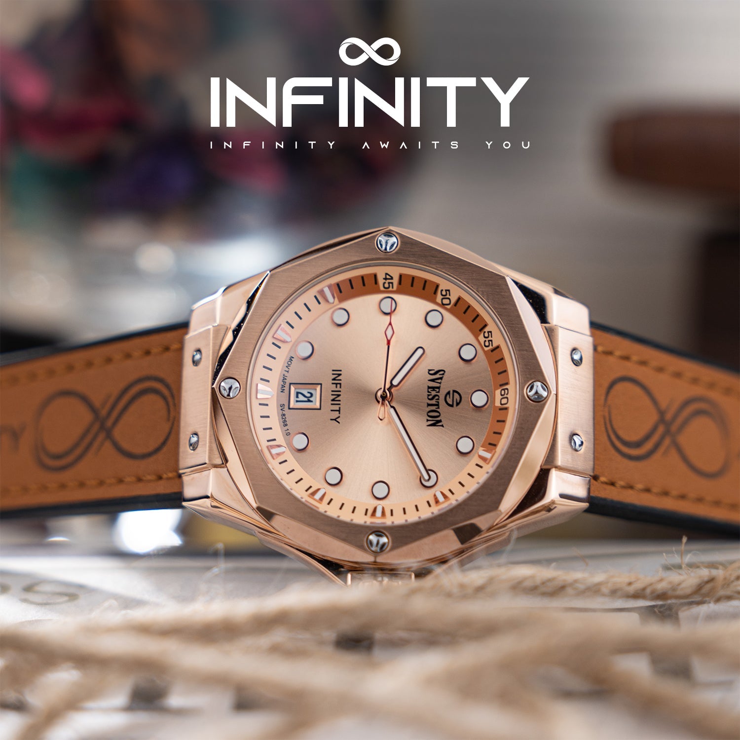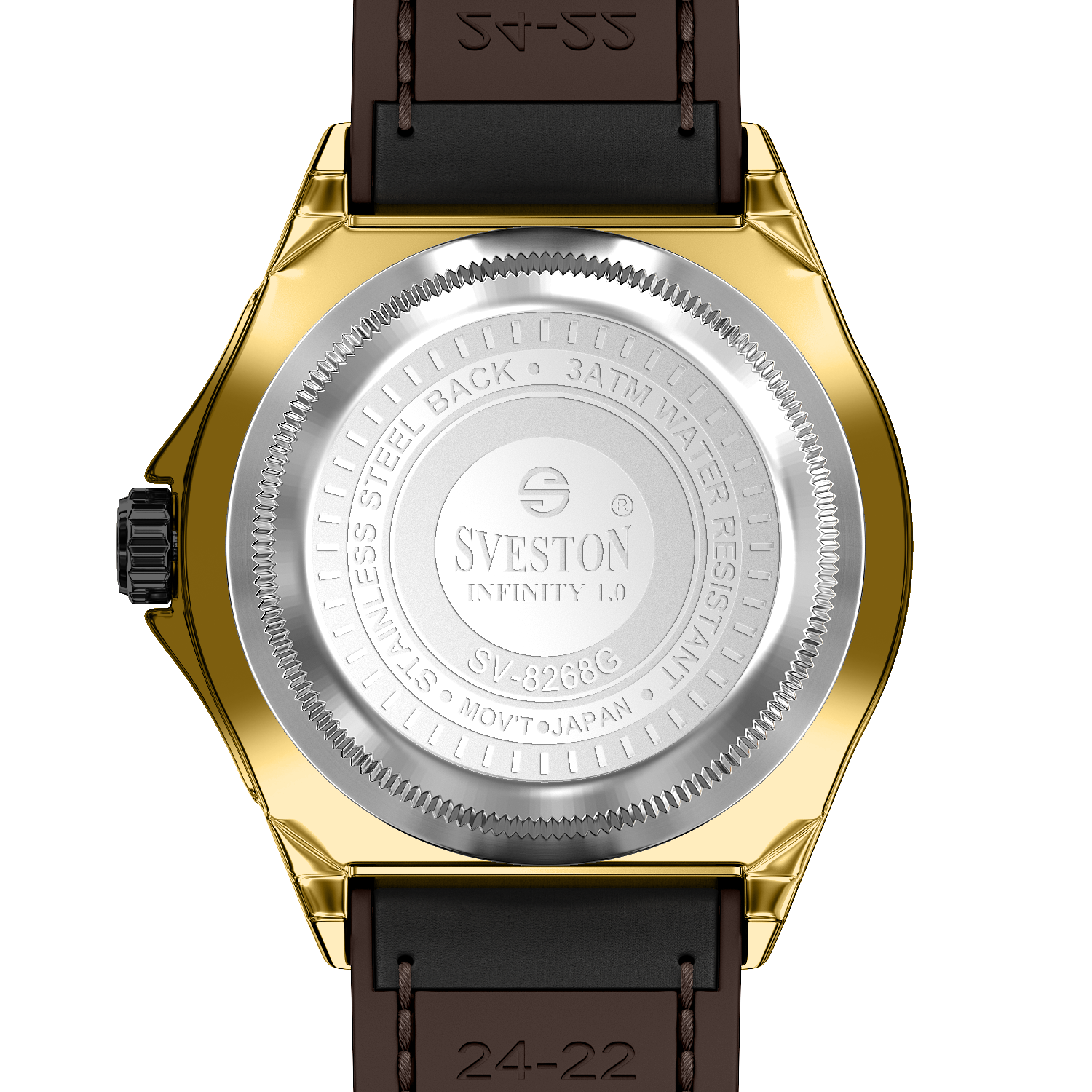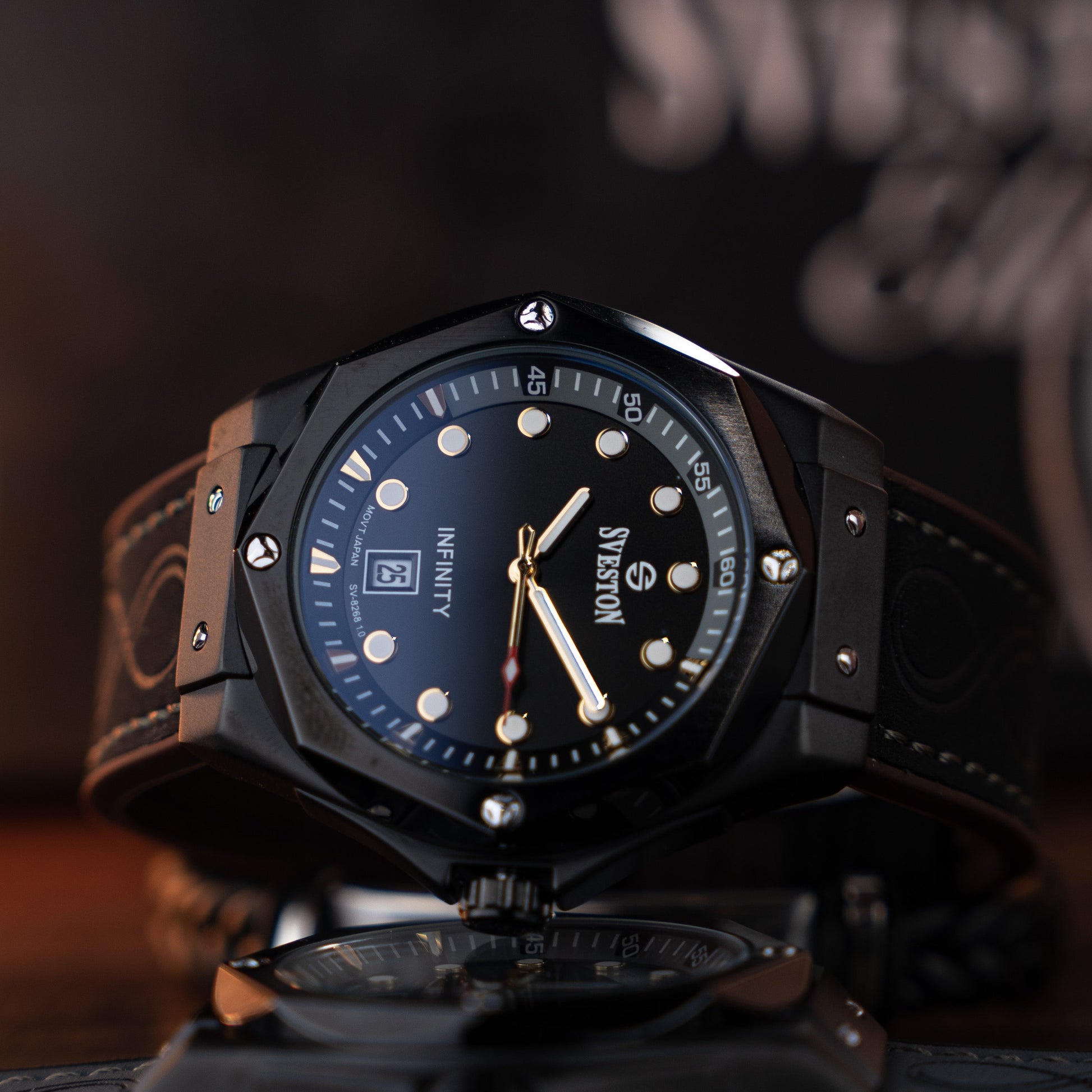 Sveston Infinity is a men's sports watch with a Rubber strap. It has a bold 39mm dial and comes in a high-quality luxury watch case. Designed for lasting style and daily comfort, it combines elegance and practicality.