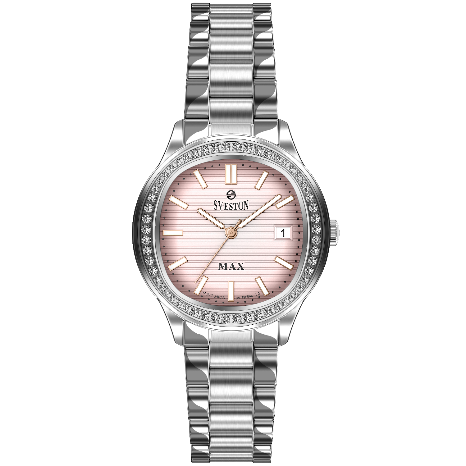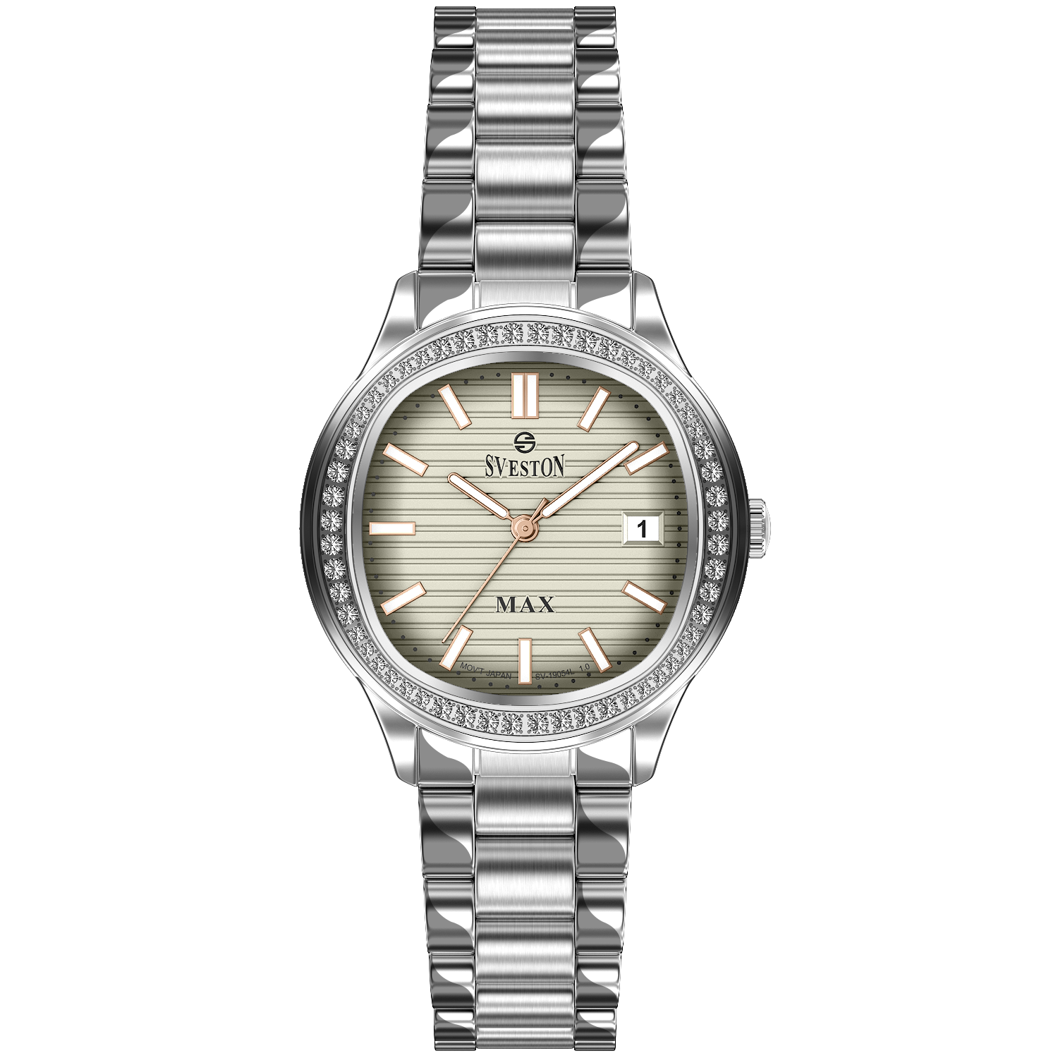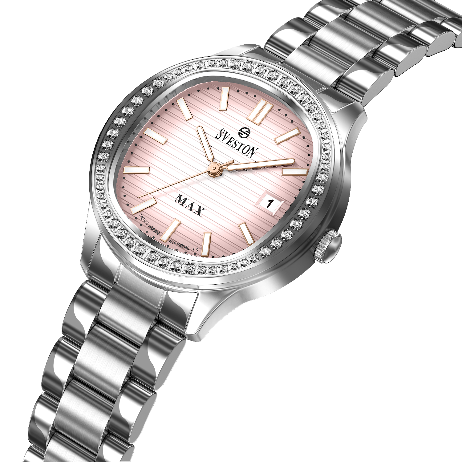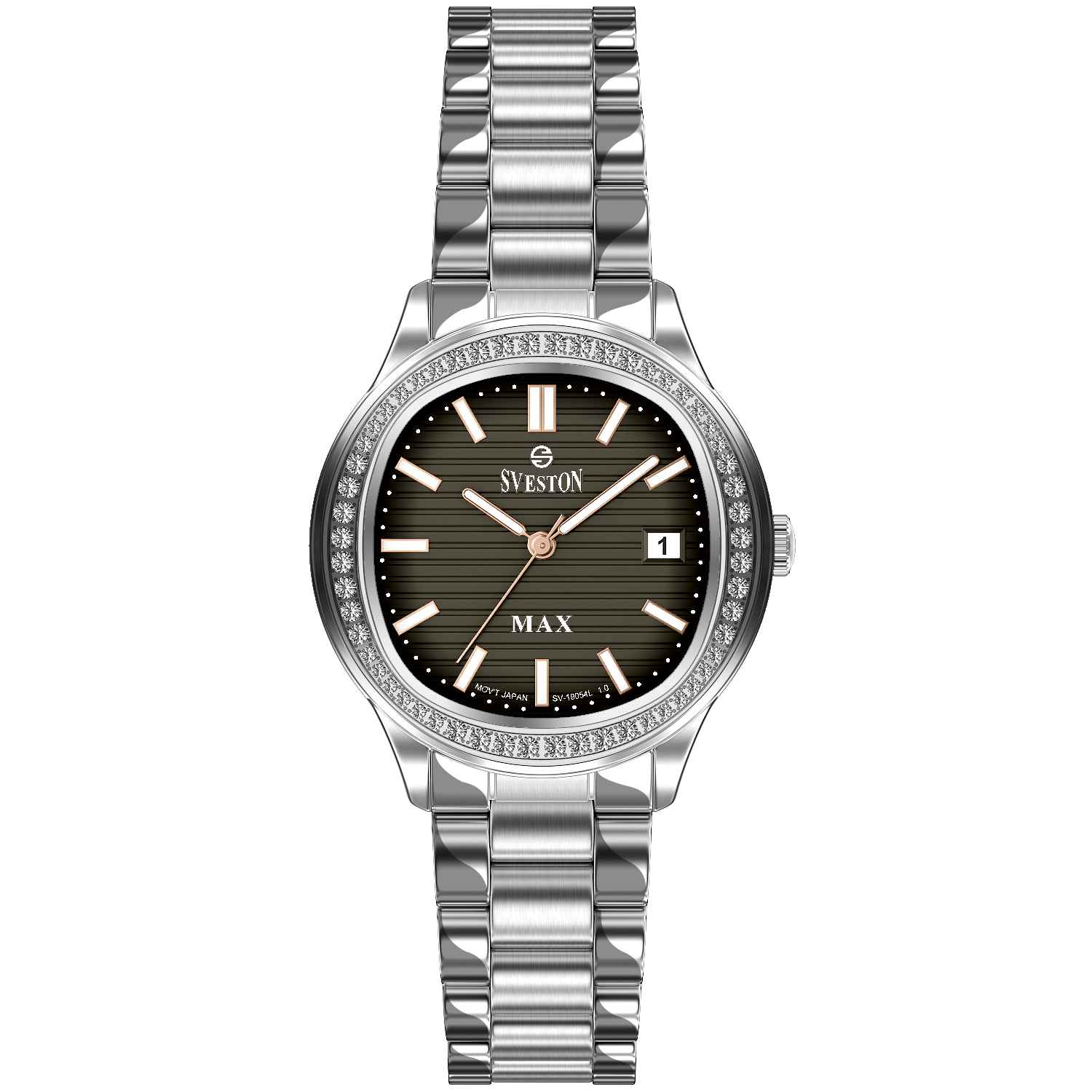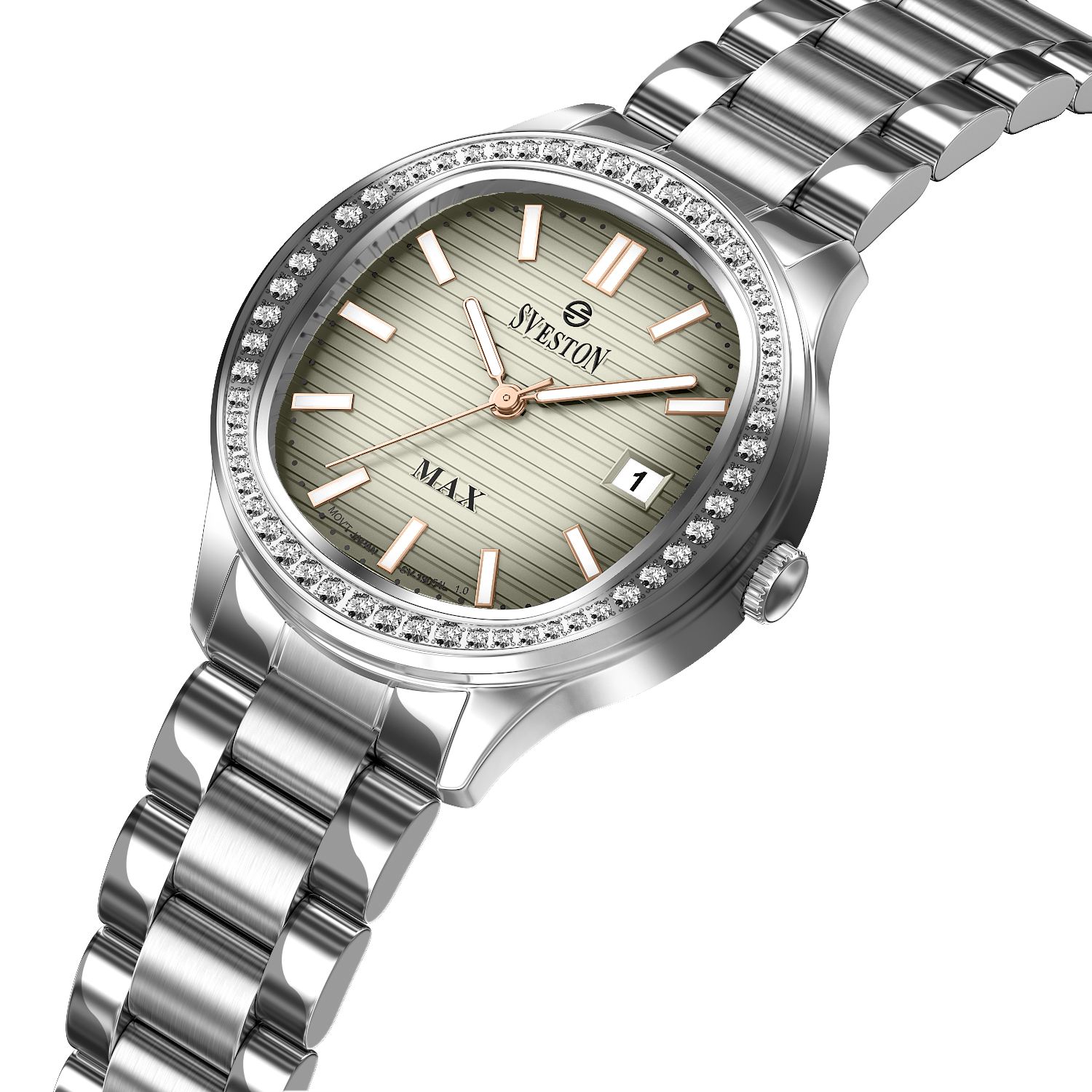 Sveston Max is a chic and modern stainless steel watch designed for women featuring a sleek 29mm dial and elegantly presented in a luxury watch case for a sophisticated touch