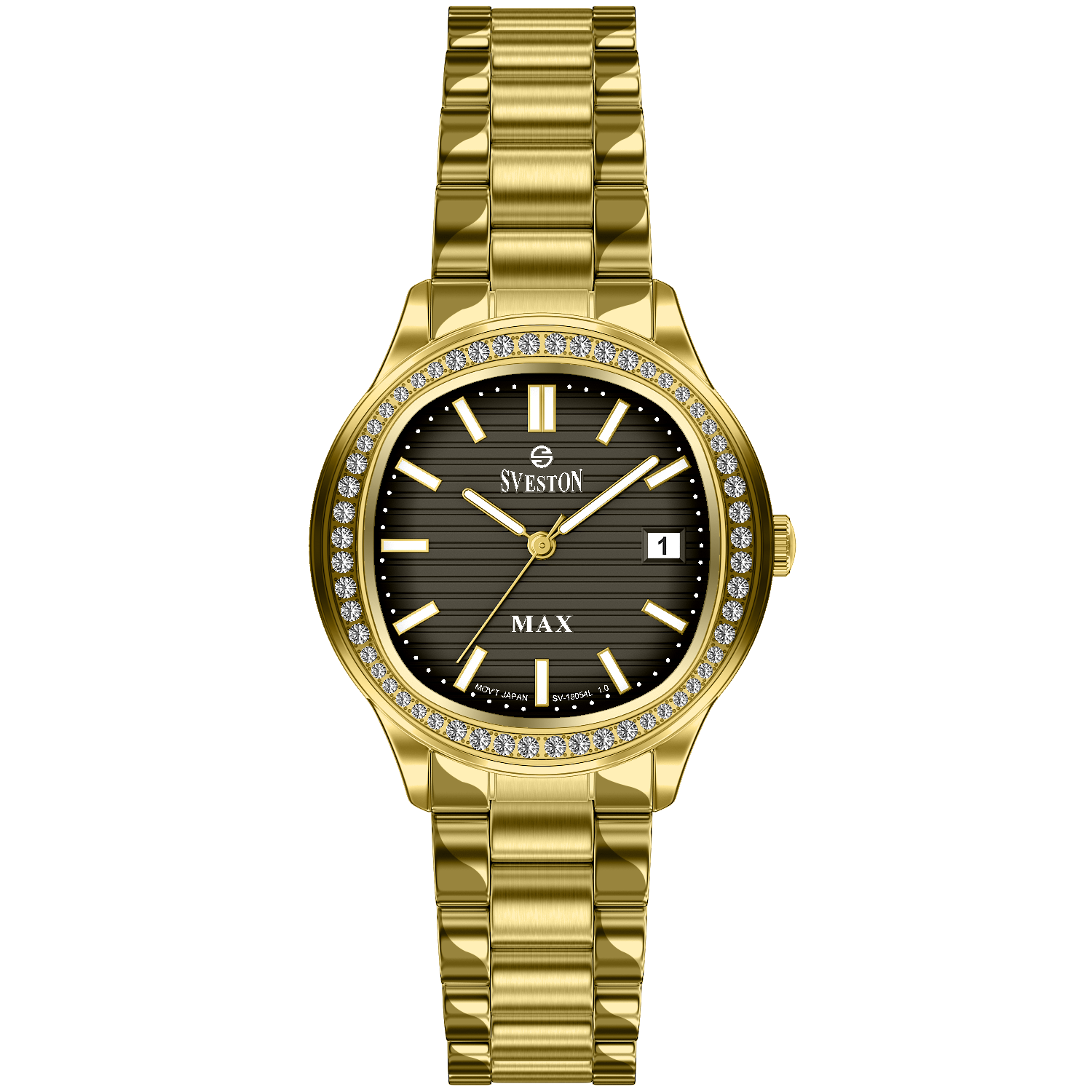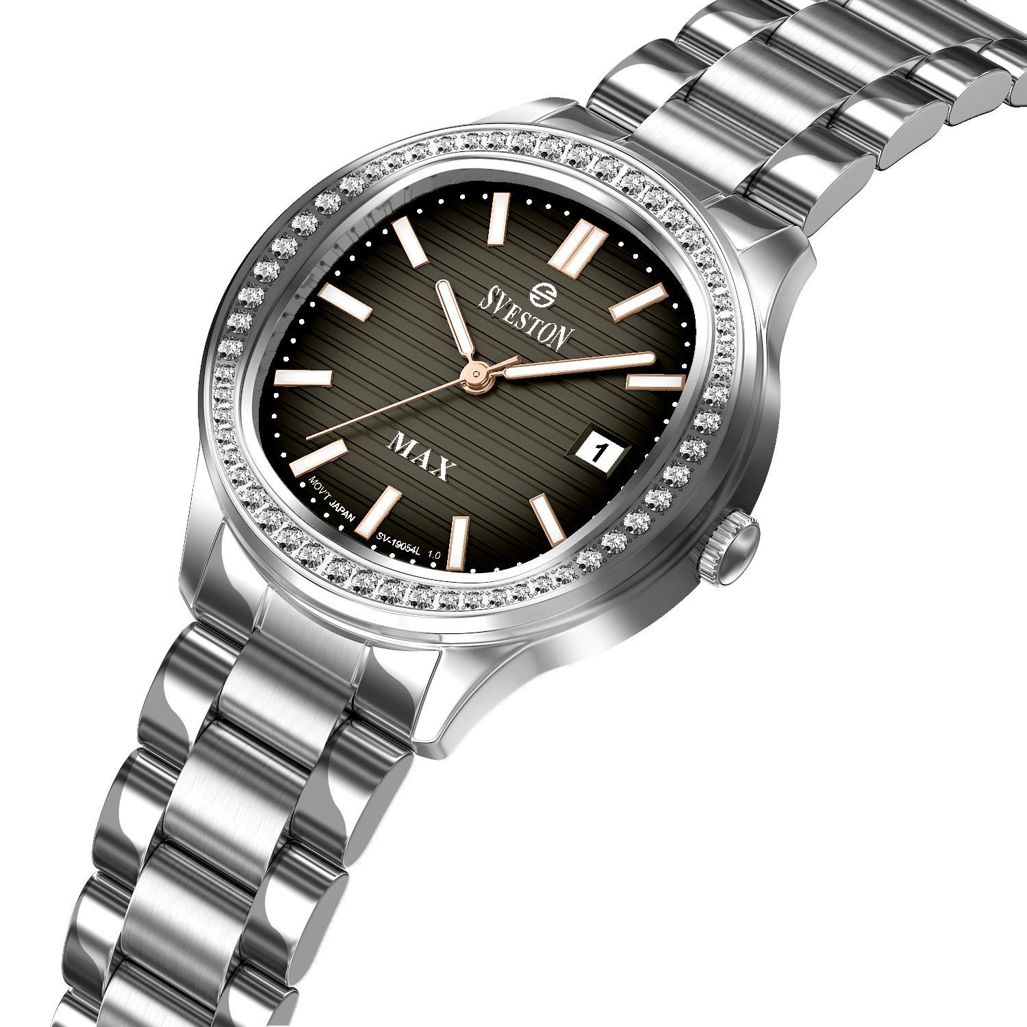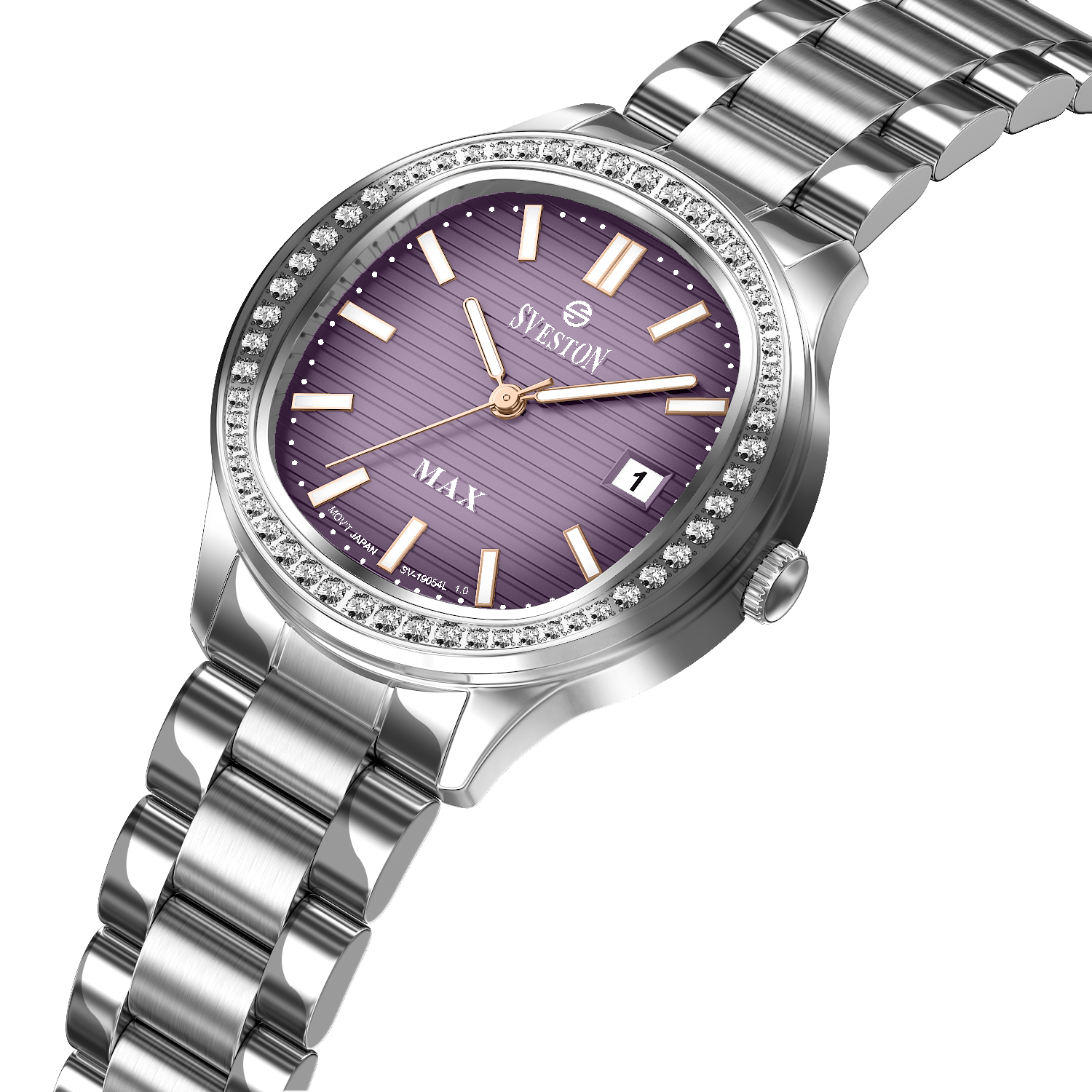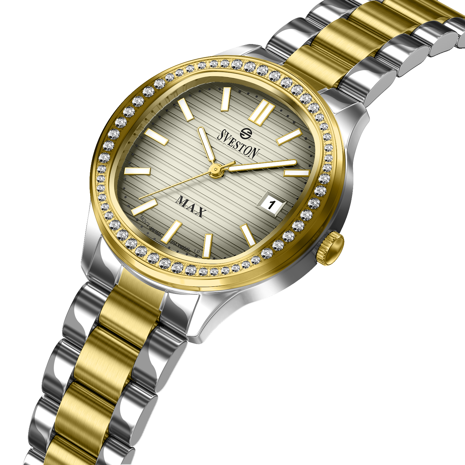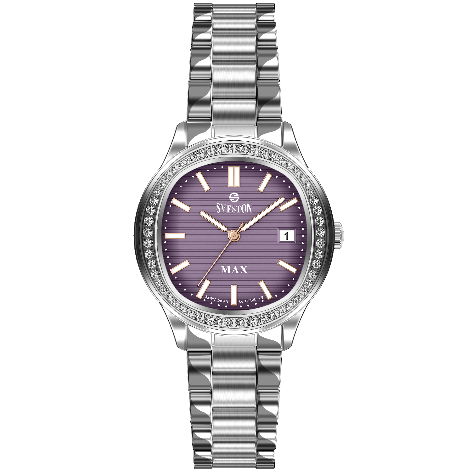 Sveston Max is a chic and modern stainless steel watch designed for women featuring a sleek 29mm dial and elegantly presented in a luxury watch case for a sophisticated touch