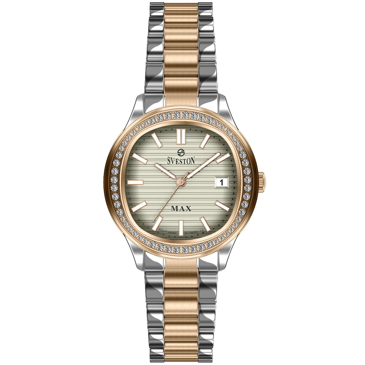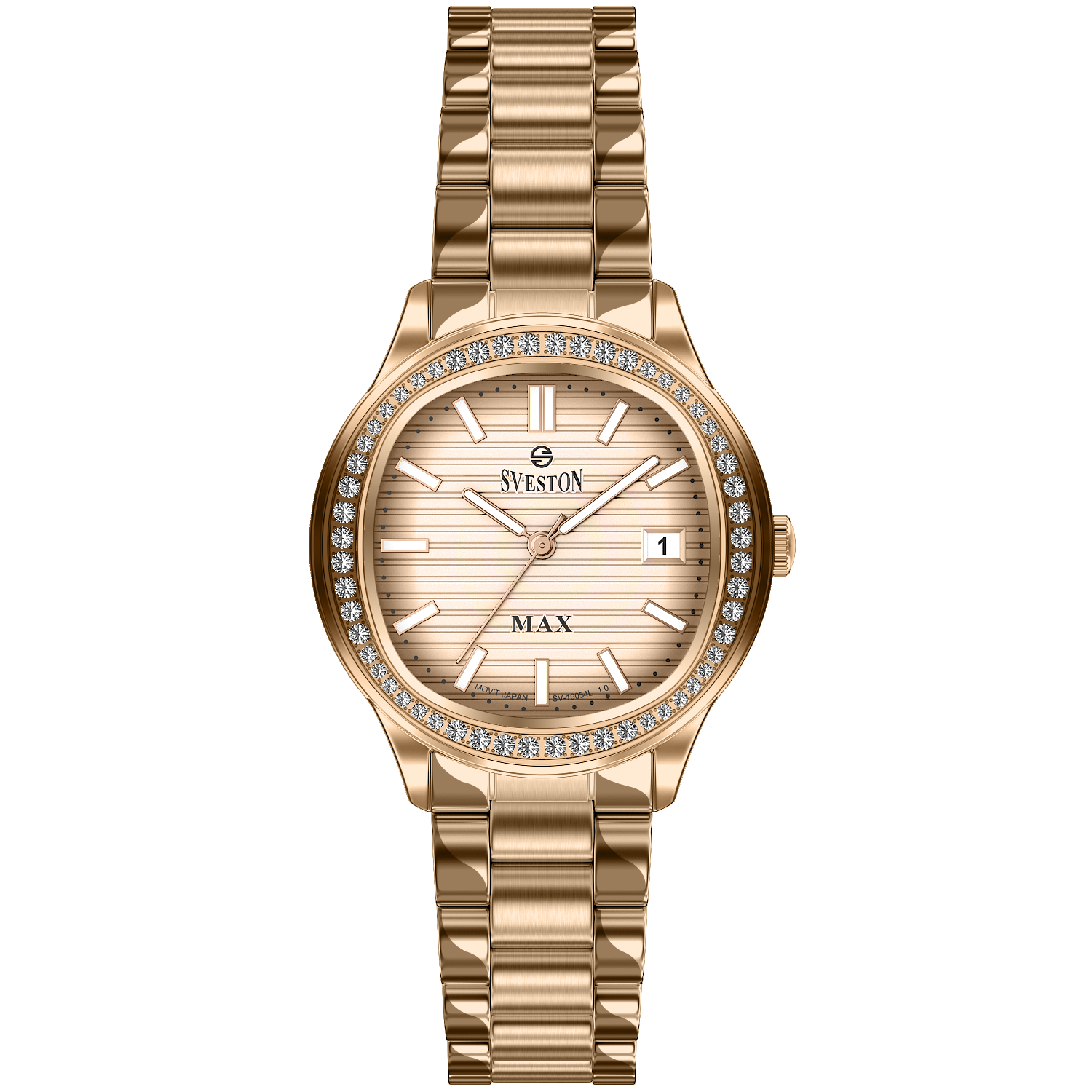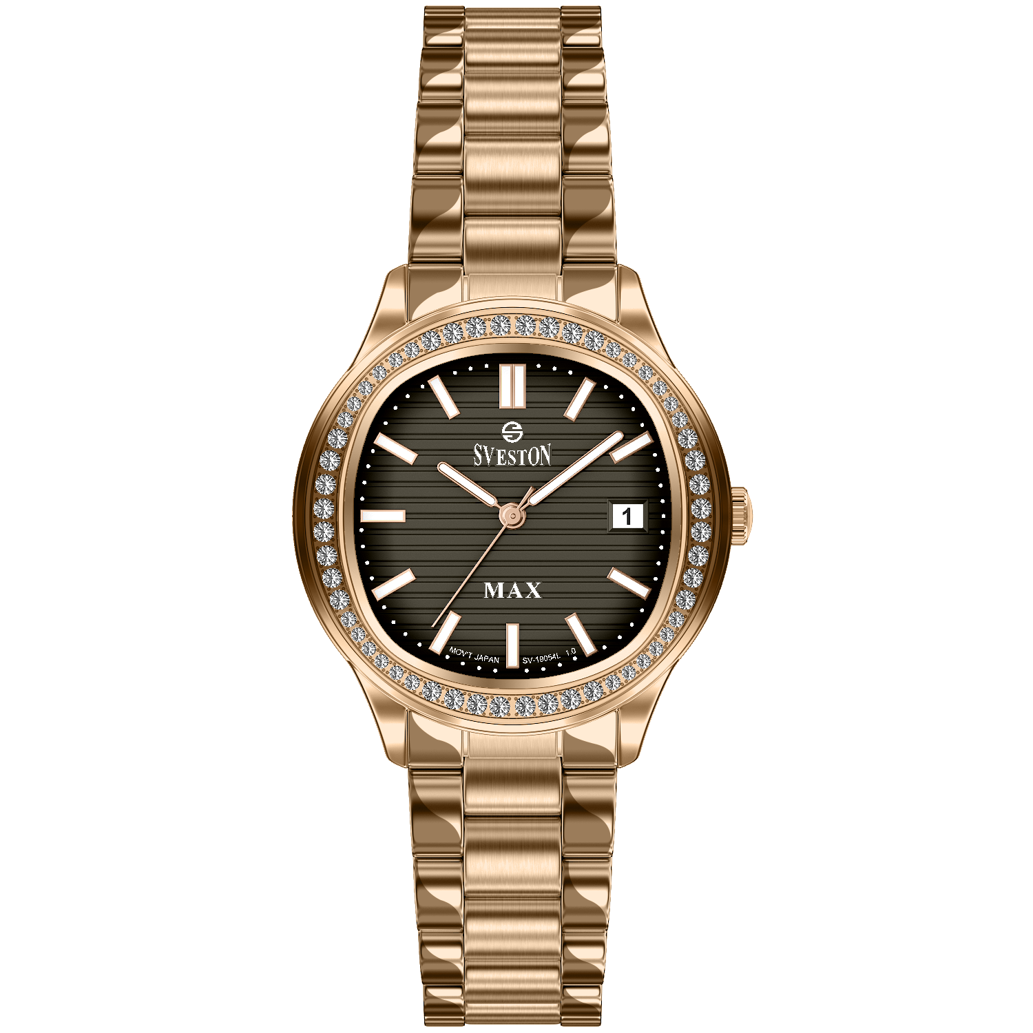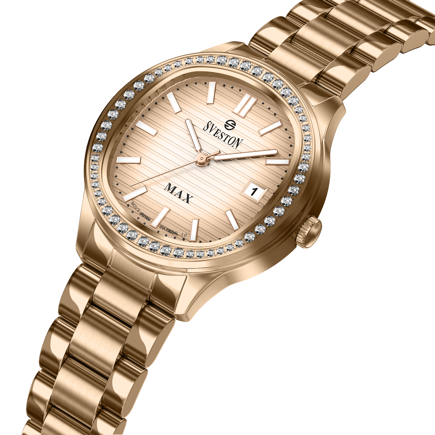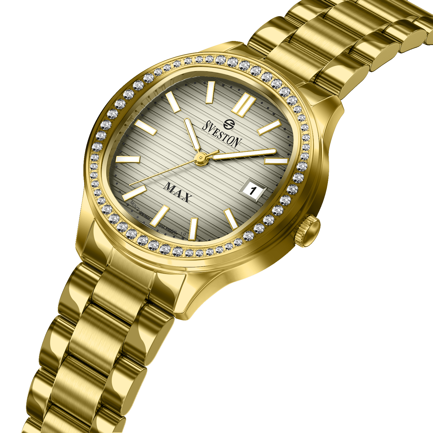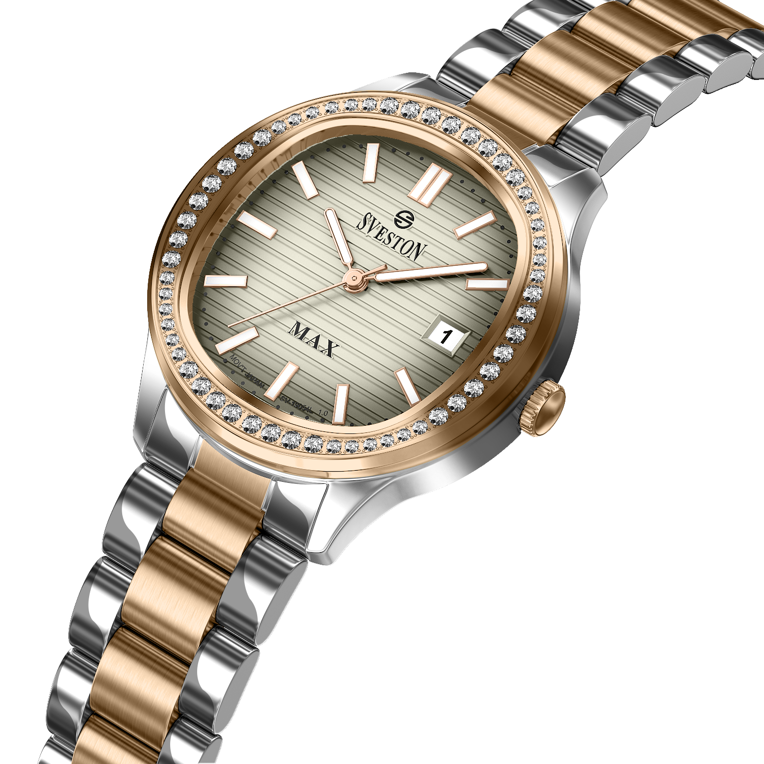 Sveston Max is a chic and modern stainless steel watch designed for women featuring a sleek 29mm dial and elegantly presented in a luxury watch case for a sophisticated touch