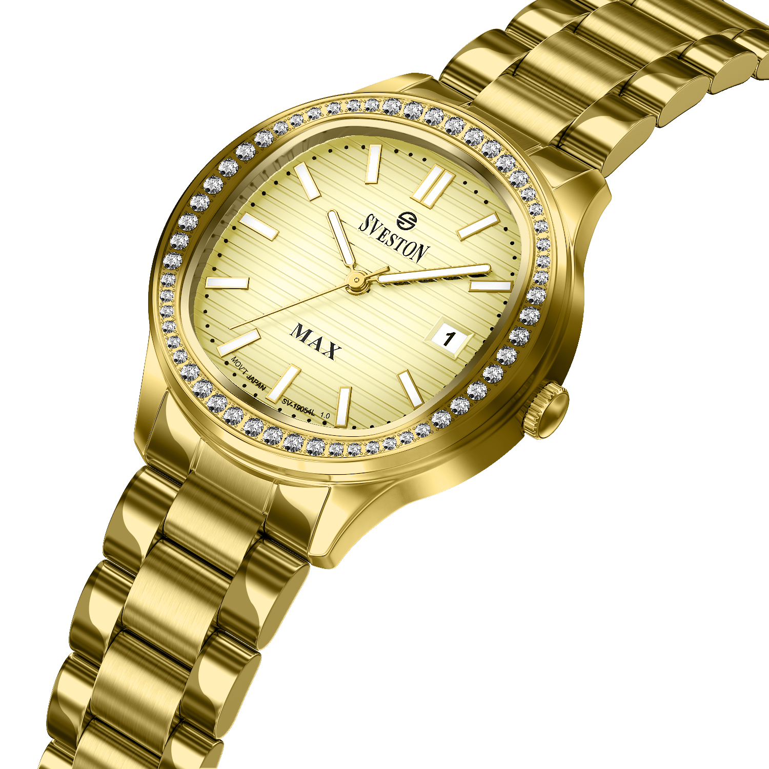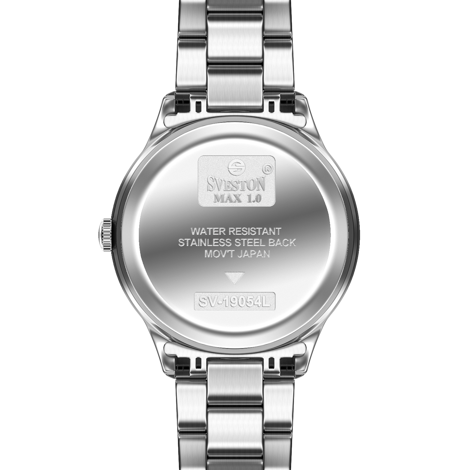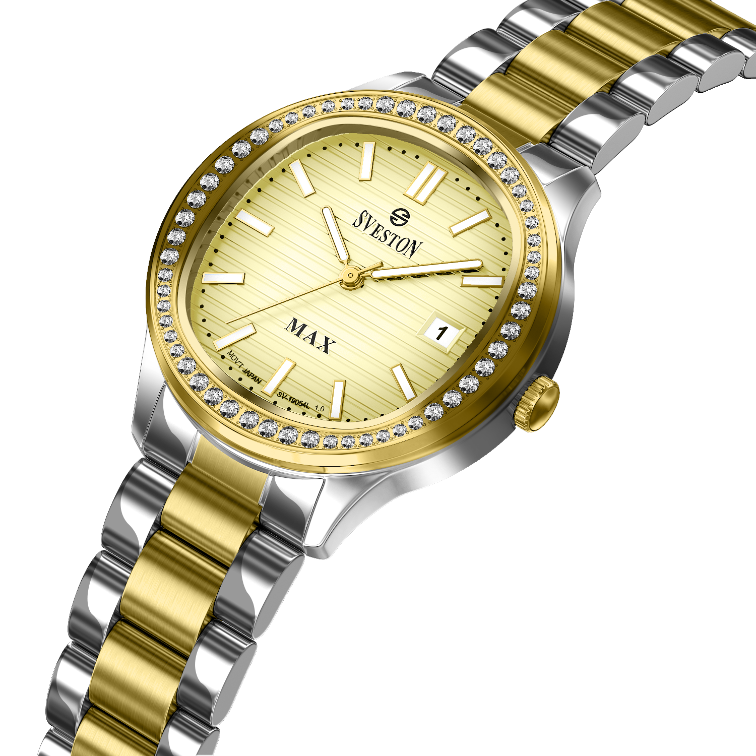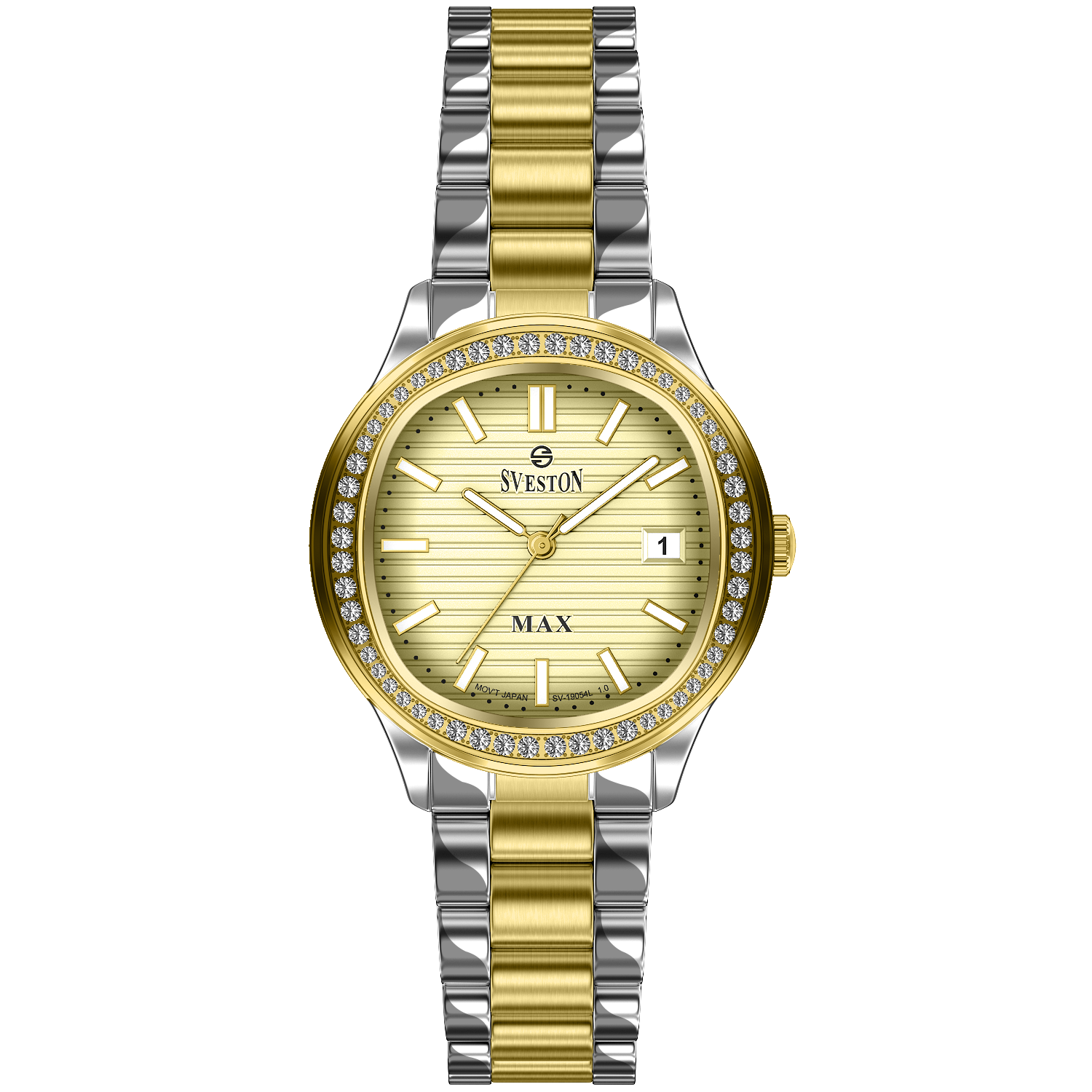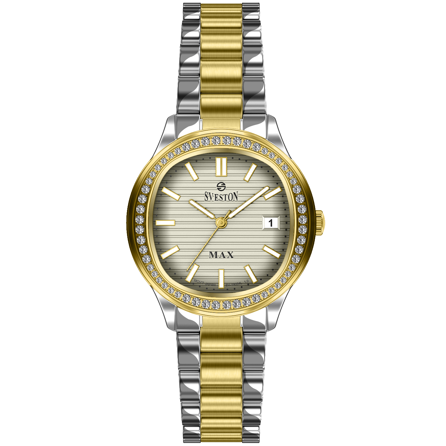 Sveston Max is a chic and modern stainless steel watch designed for women featuring a sleek 29mm dial and elegantly presented in a luxury watch case for a sophisticated touch