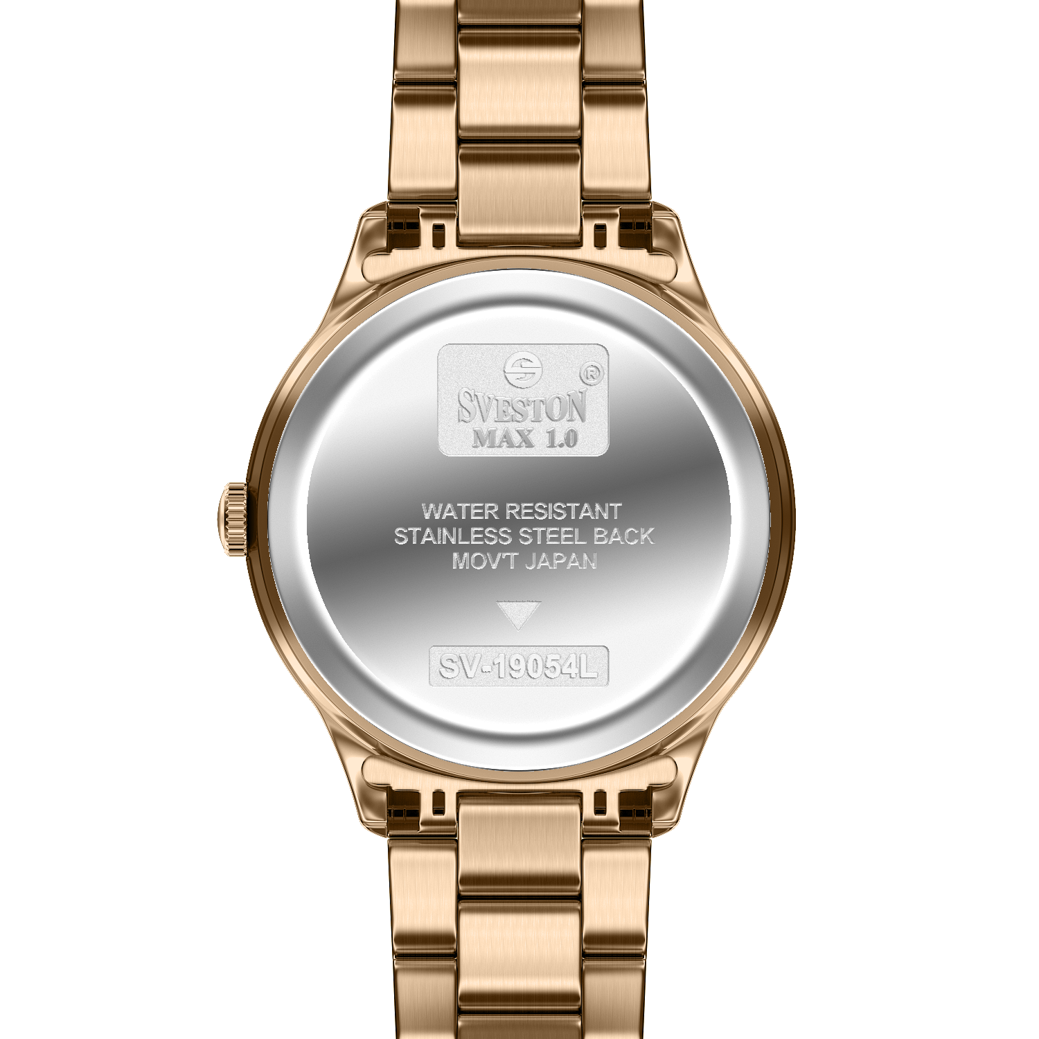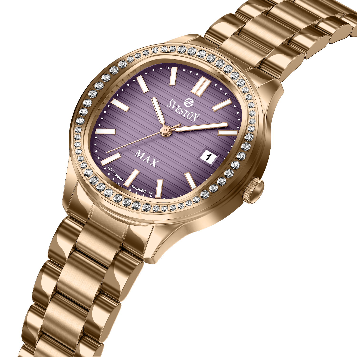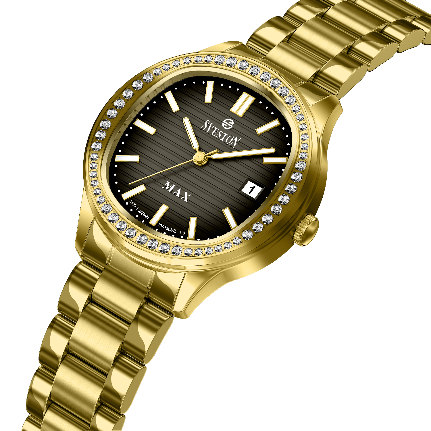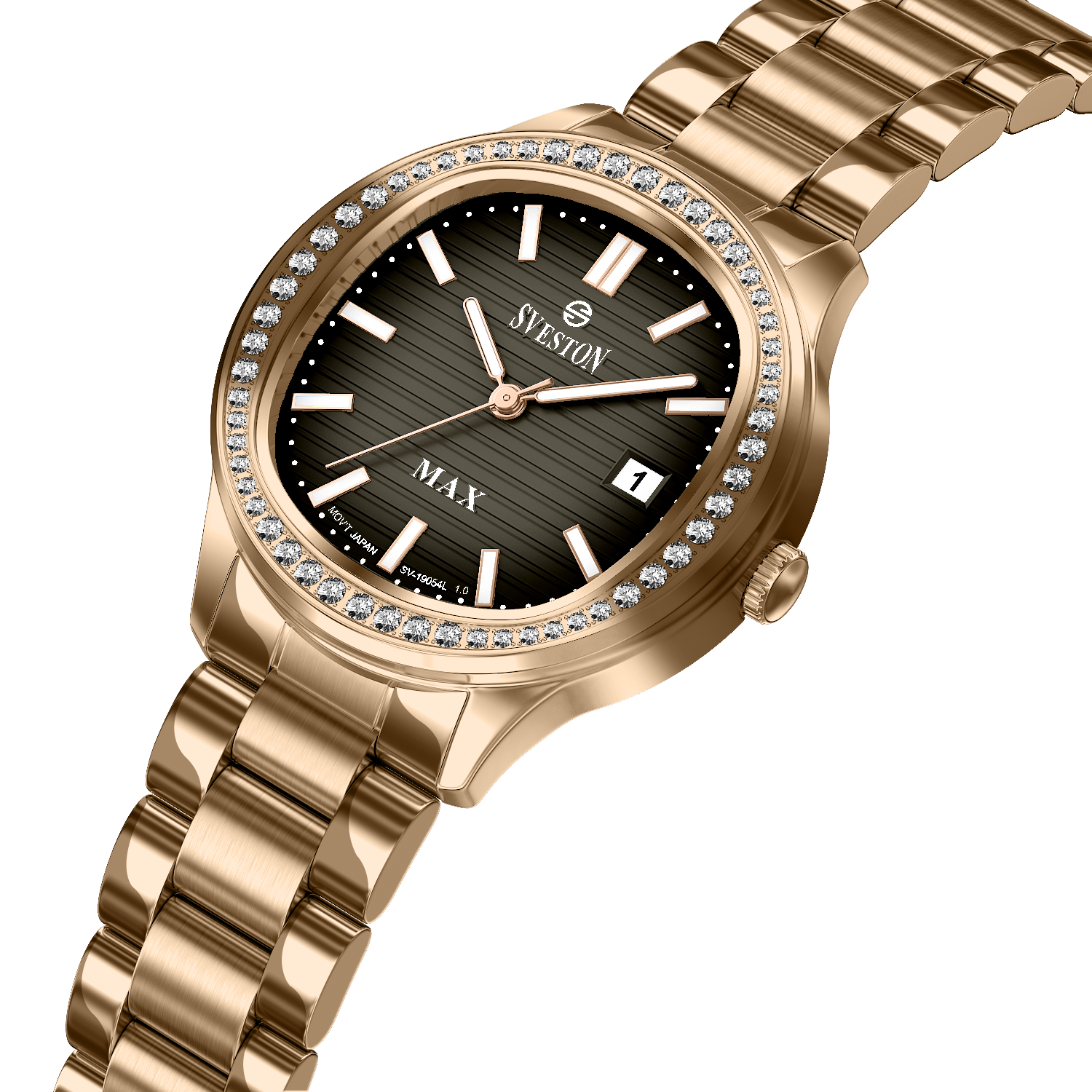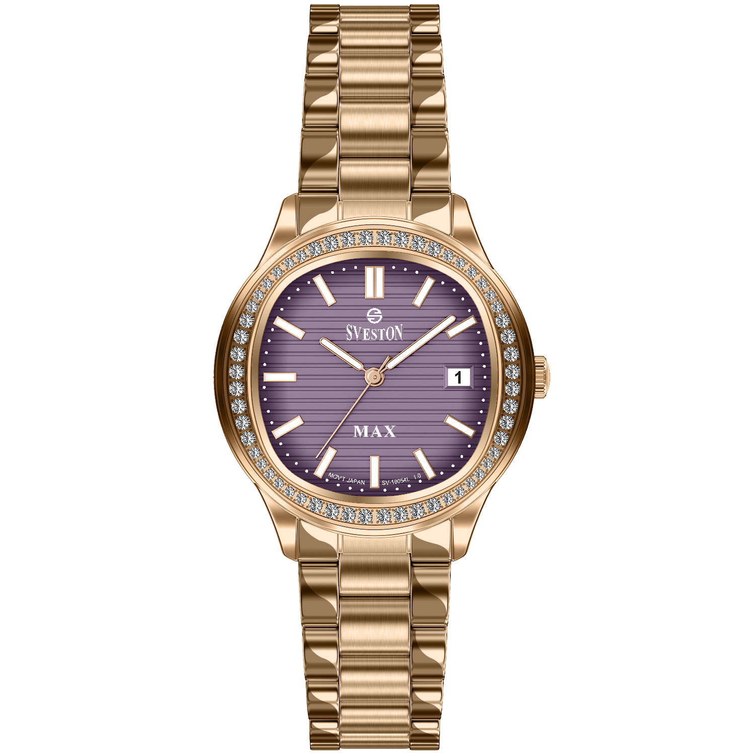 Sveston Max is a chic and modern stainless steel watch designed for women featuring a sleek 29mm dial and elegantly presented in a luxury watch case for a sophisticated touch