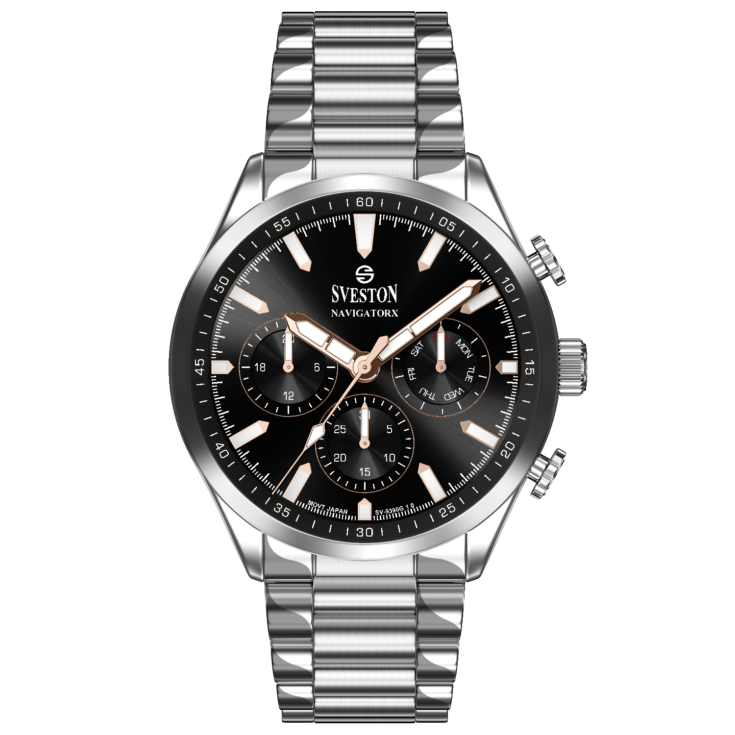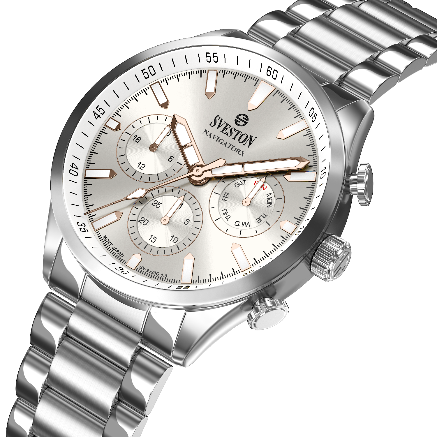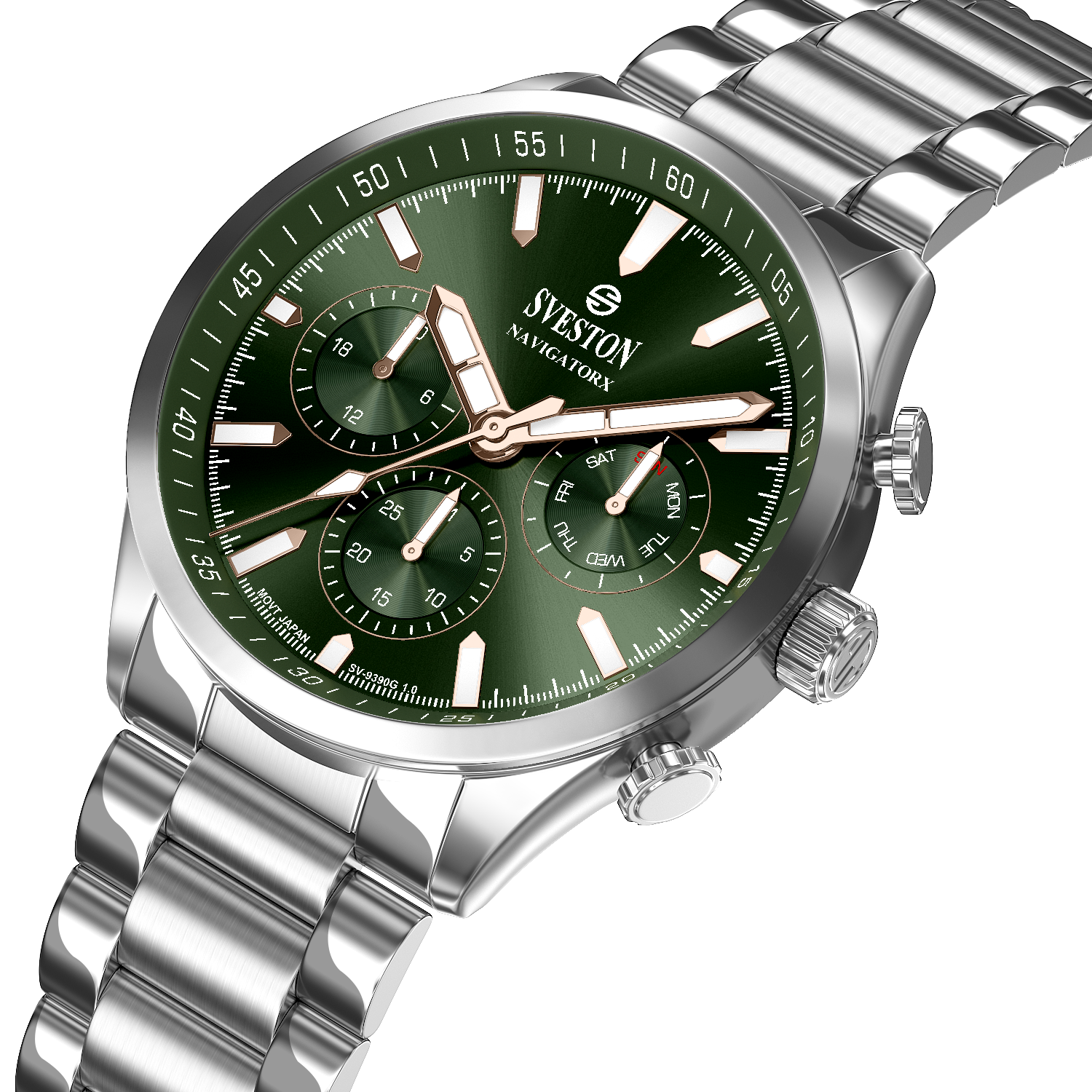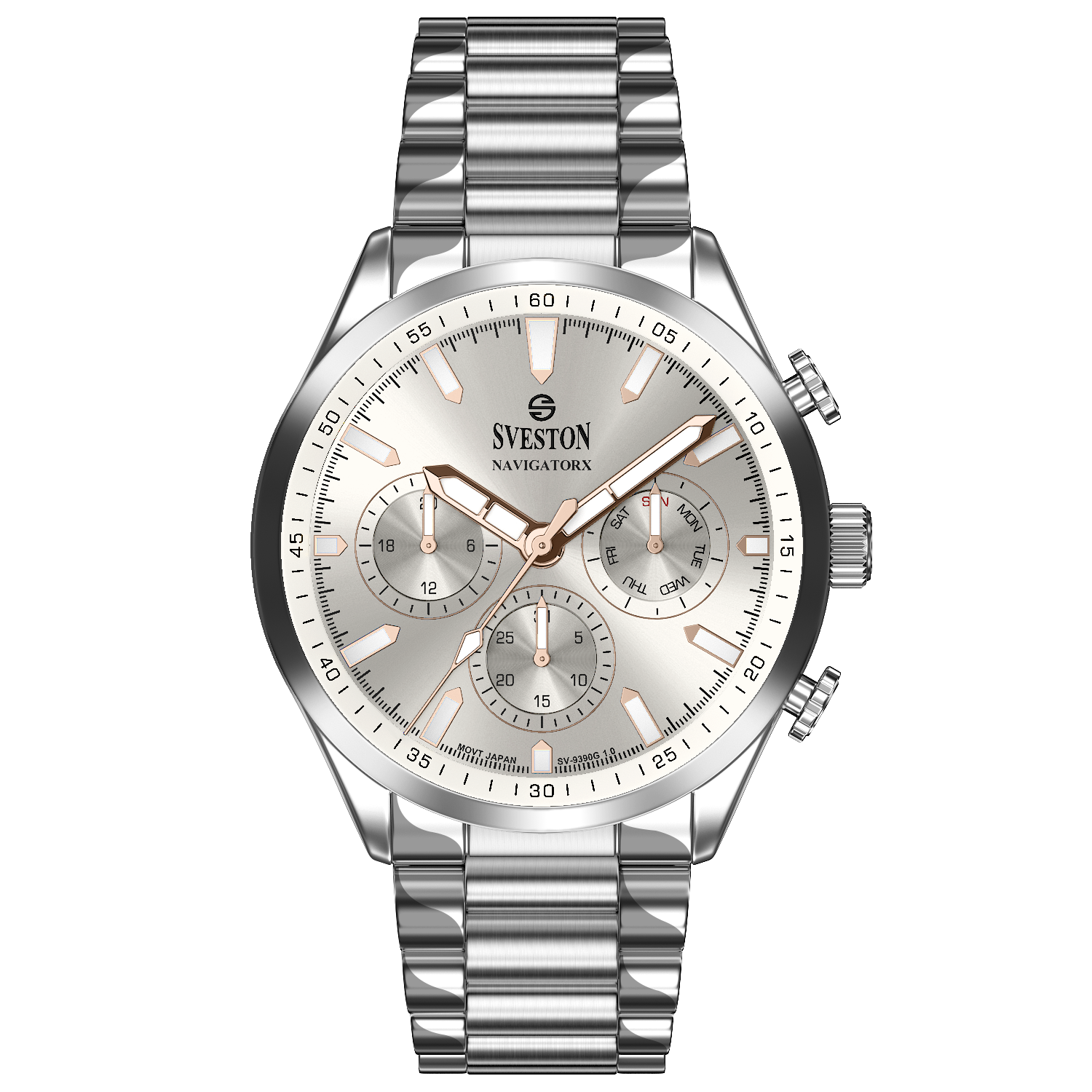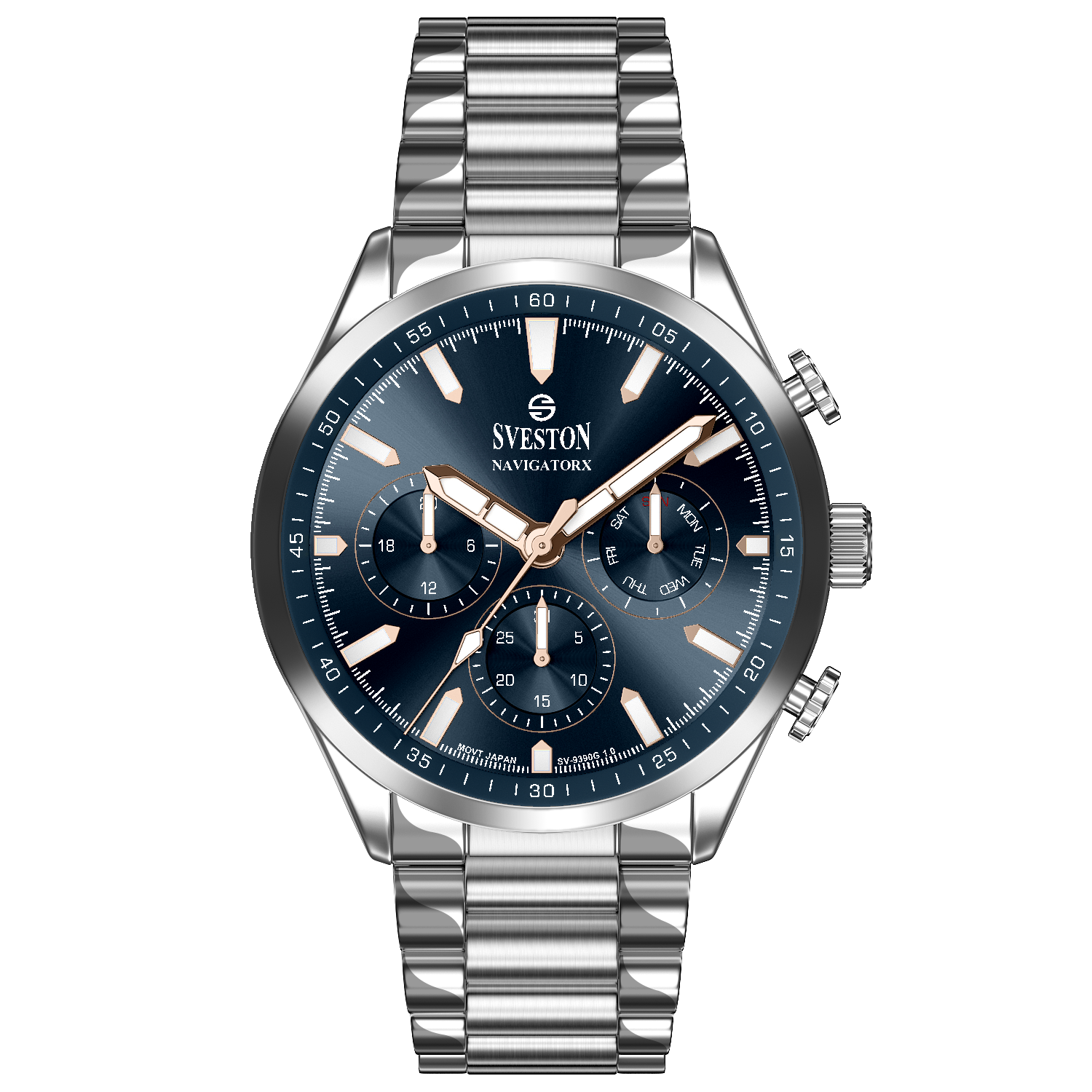 Discover elegance in motion with the Navigatorx, a men’s sports steel watch powered by Japanese Quartz movement. Its 38mm case and 46mm lug-to-lug distance provide a balanced and confident fit. The watch offers 3ATM water resistance and a lightweight 133g profile, making it ideal for both casual days and formal events.