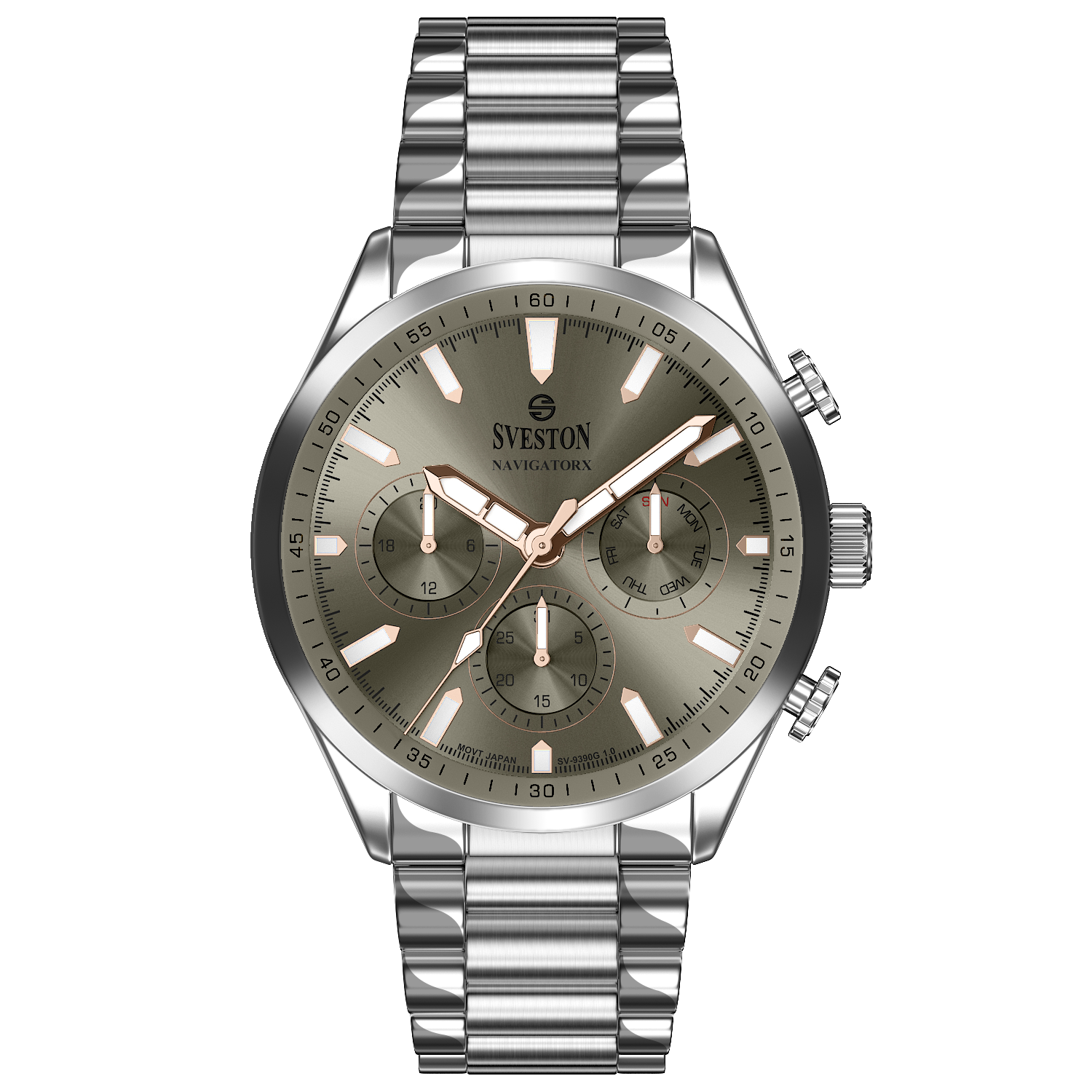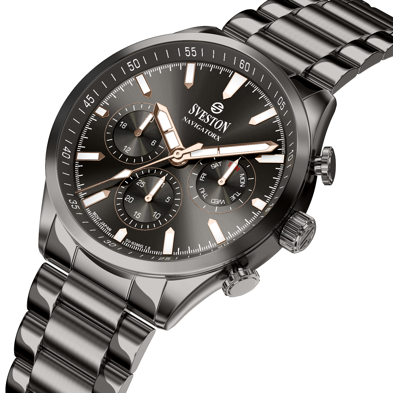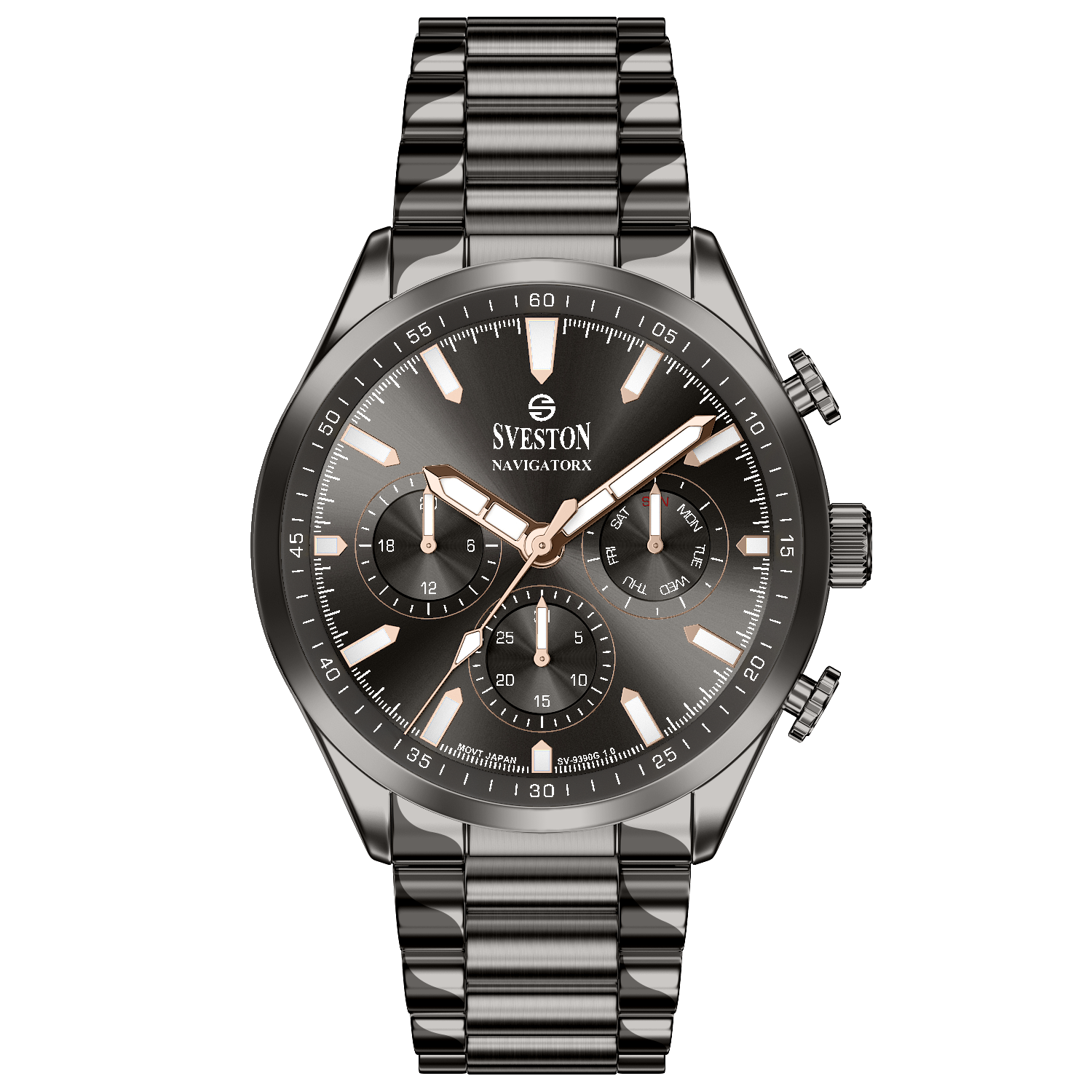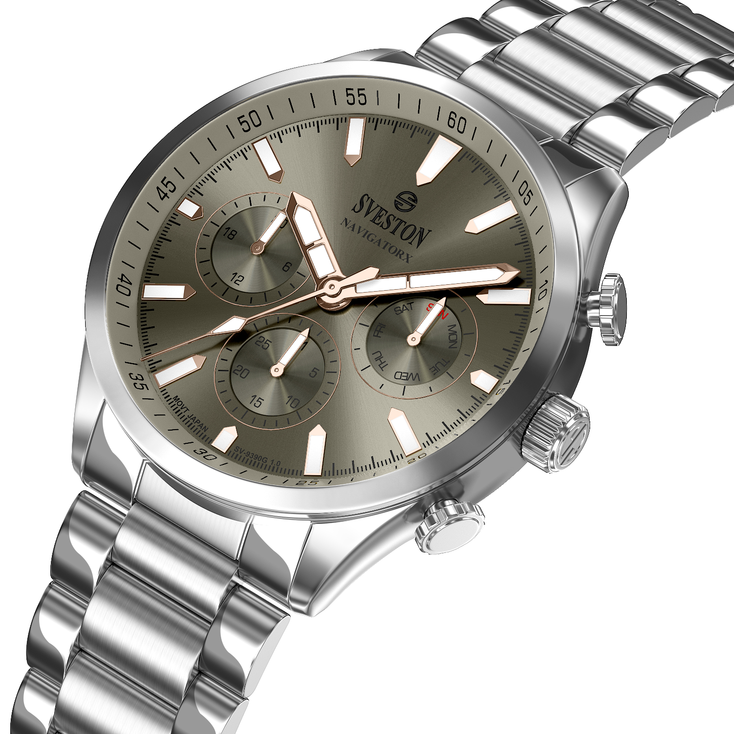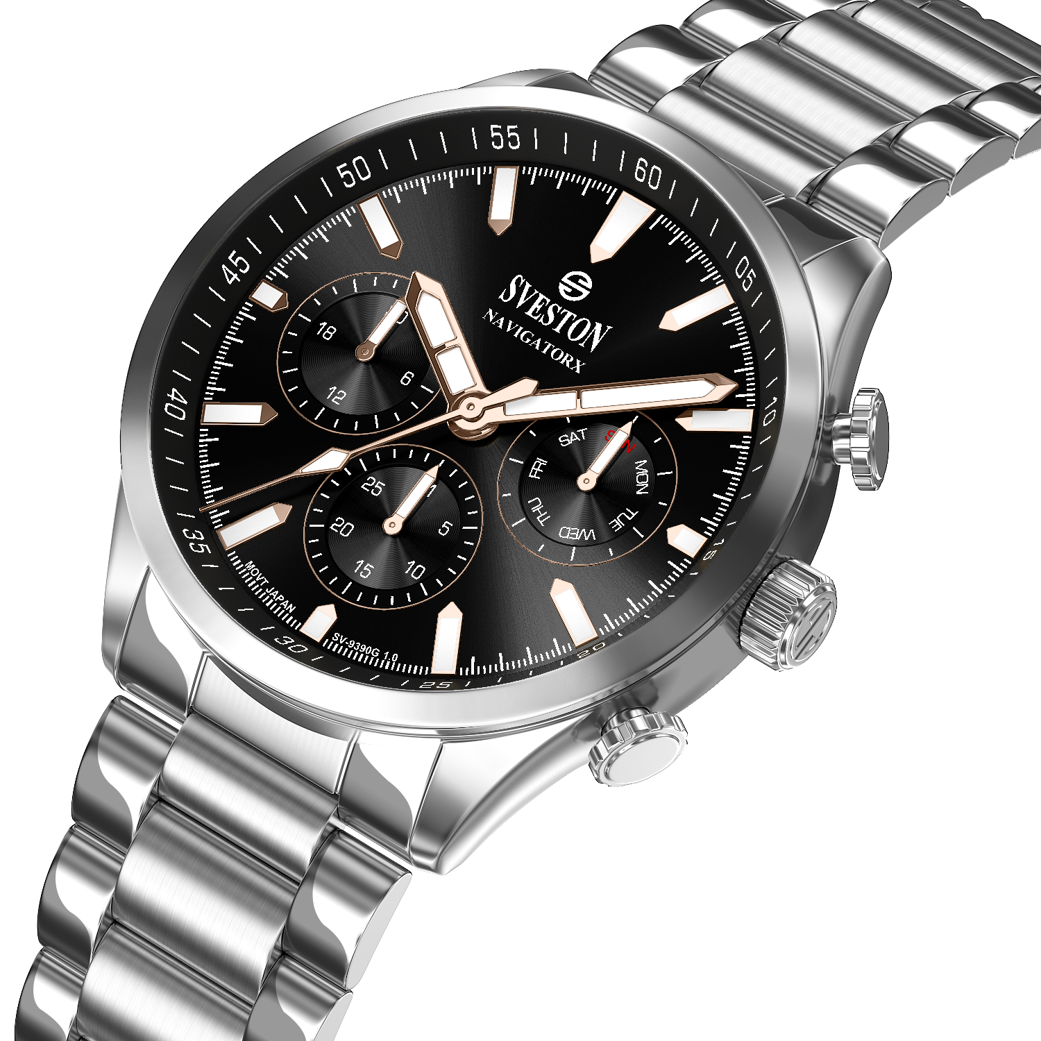 Discover elegance in motion with the Navigatorx, a men’s sports steel watch powered by Japanese Quartz movement. Its 38mm case and 46mm lug-to-lug distance provide a balanced and confident fit. The watch offers 3ATM water resistance and a lightweight 133g profile, making it ideal for both casual days and formal events.