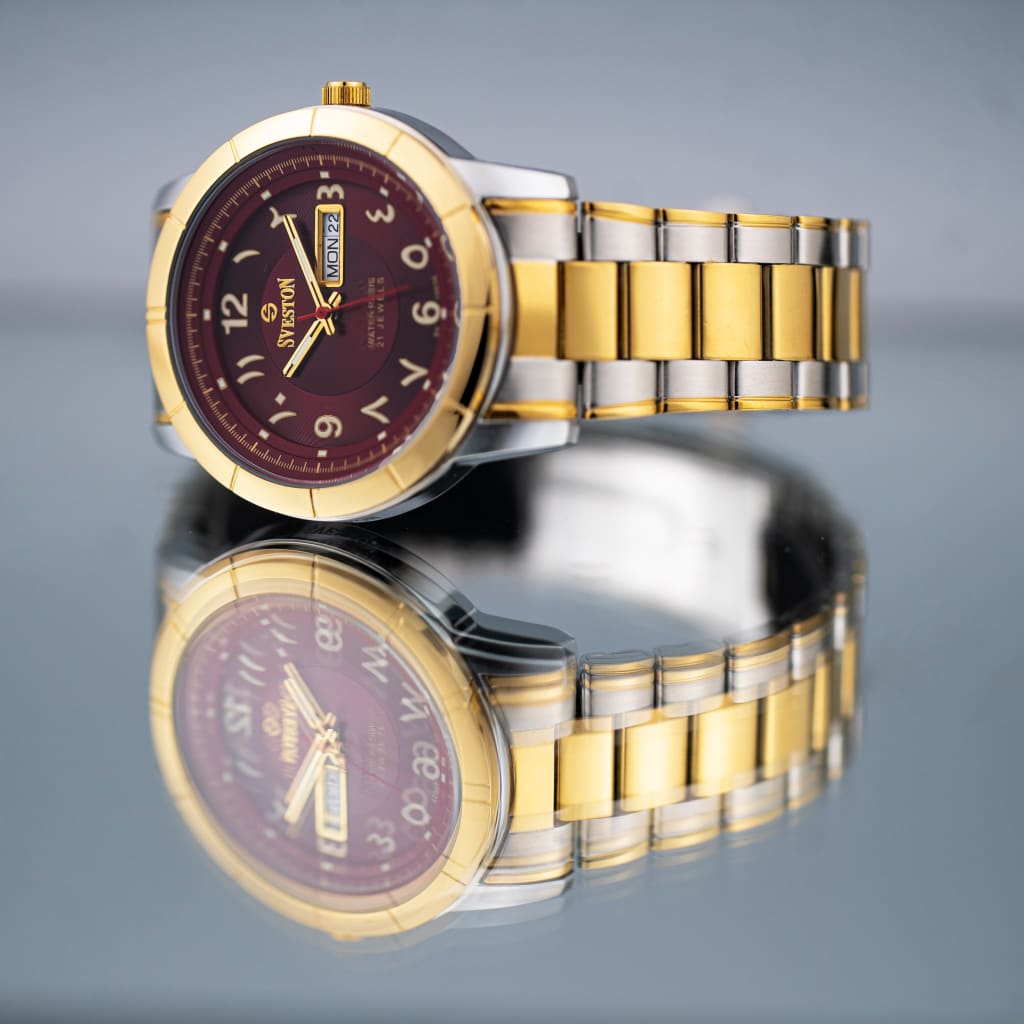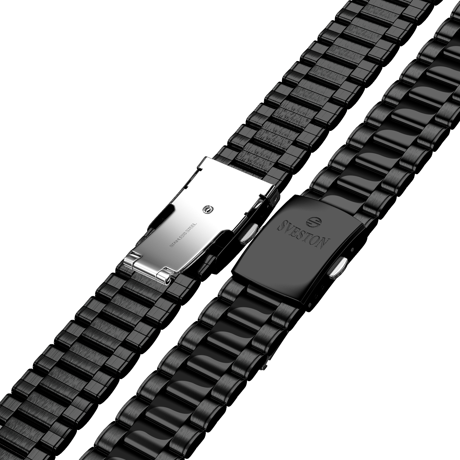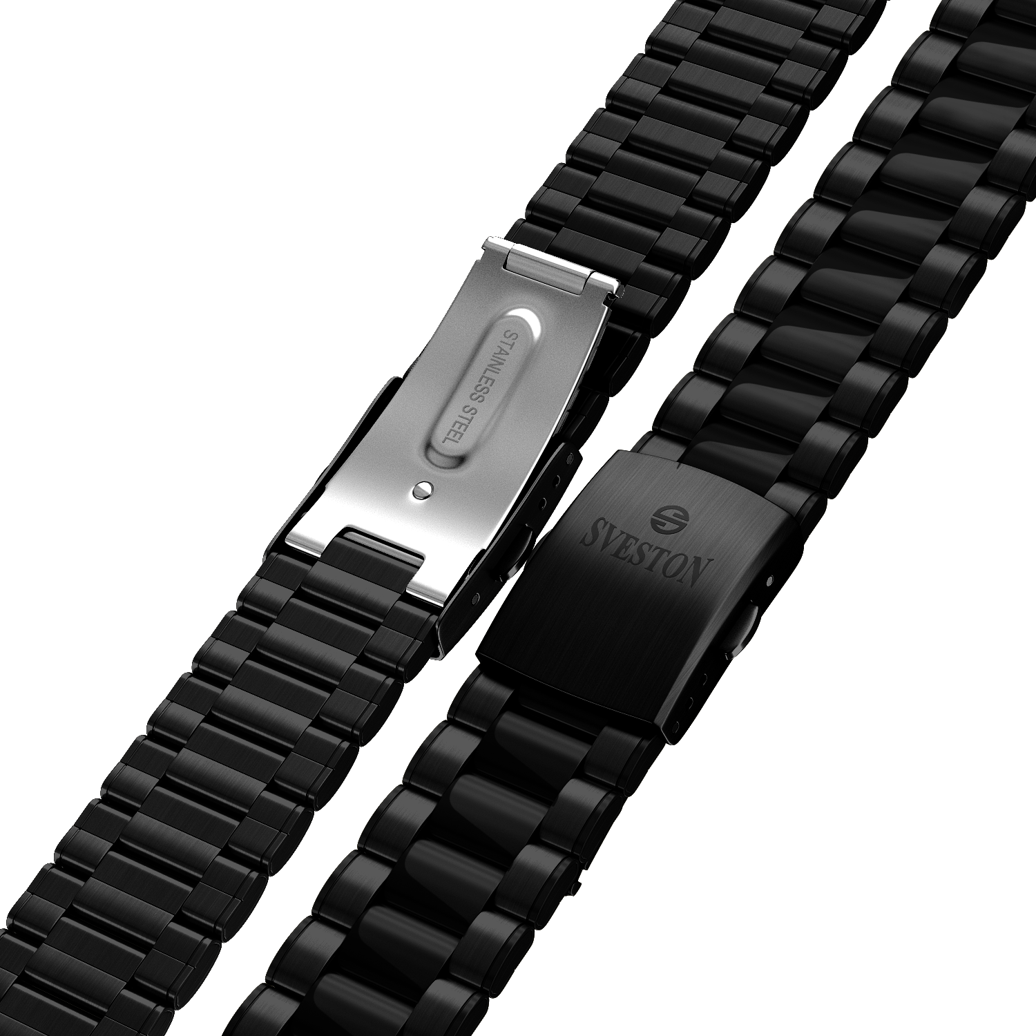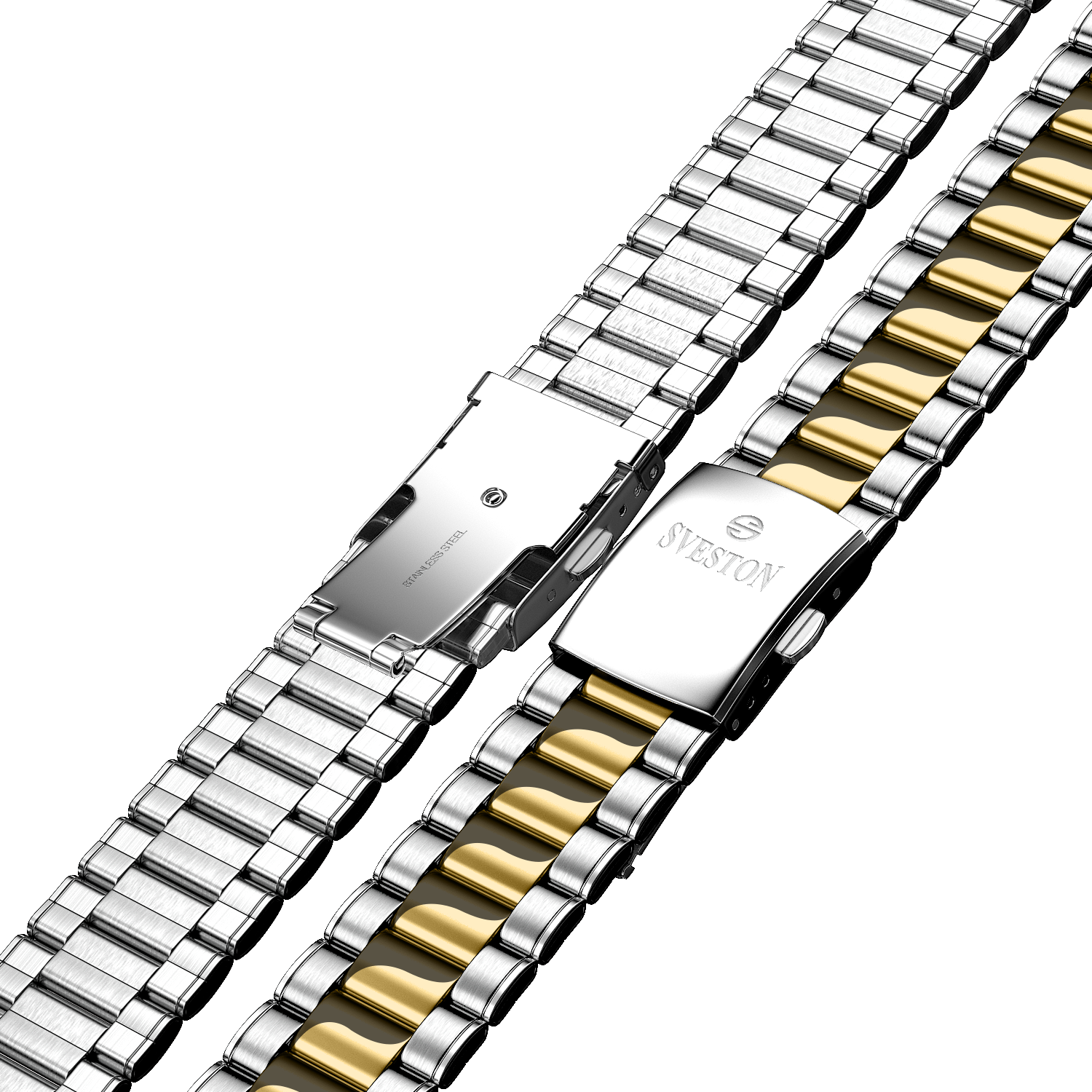 Sveston Ageless Merced is a analog battery powered 3 hand wrist watch features a 38mm round case on a link strap with pushbutton deployment clasp functions include hours minutes small seconds and date window on the right this watch comes complete with box and 1 year international warranty