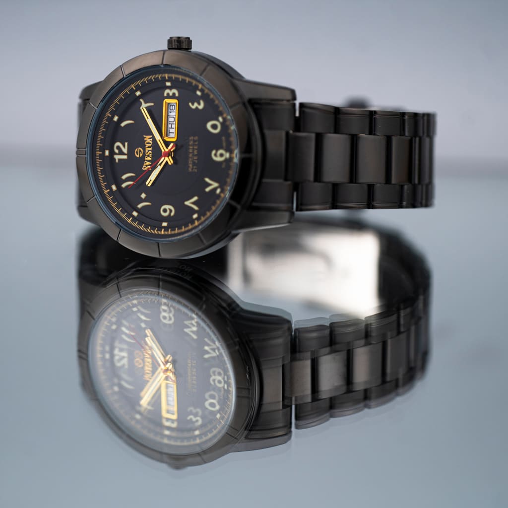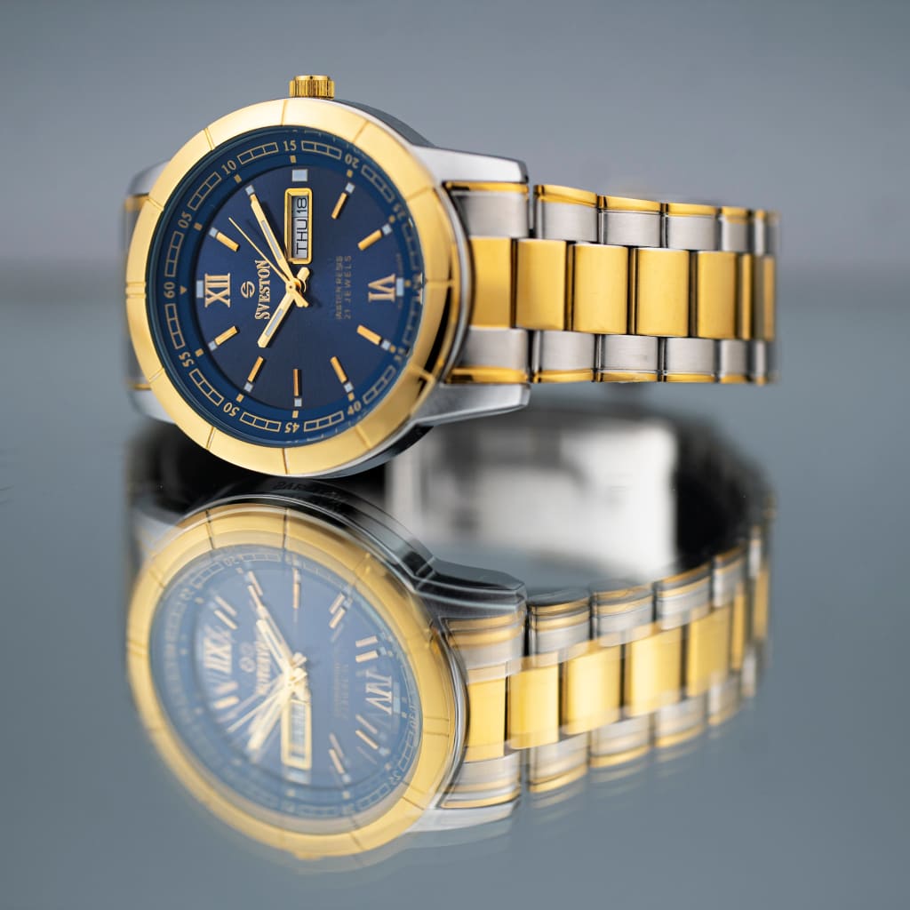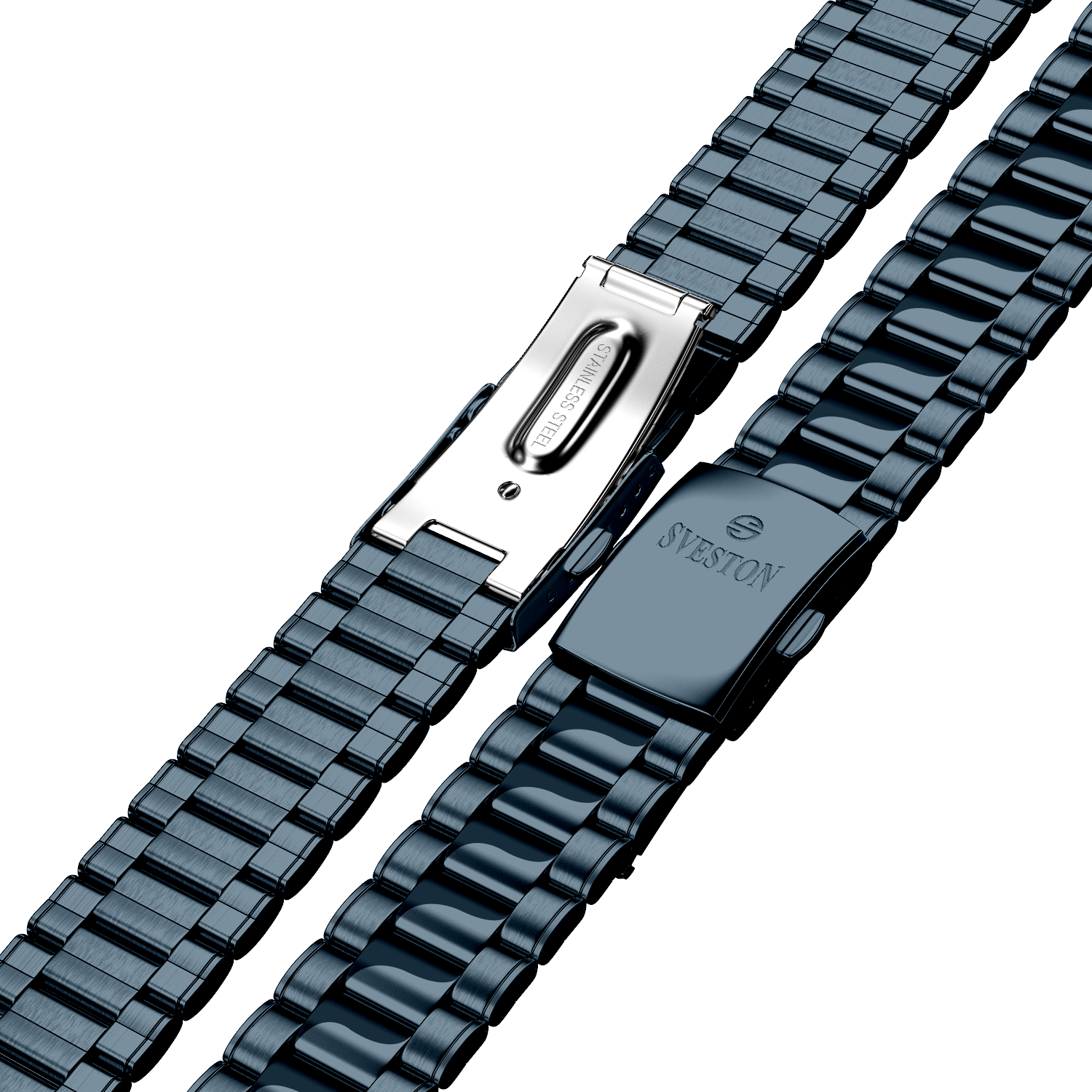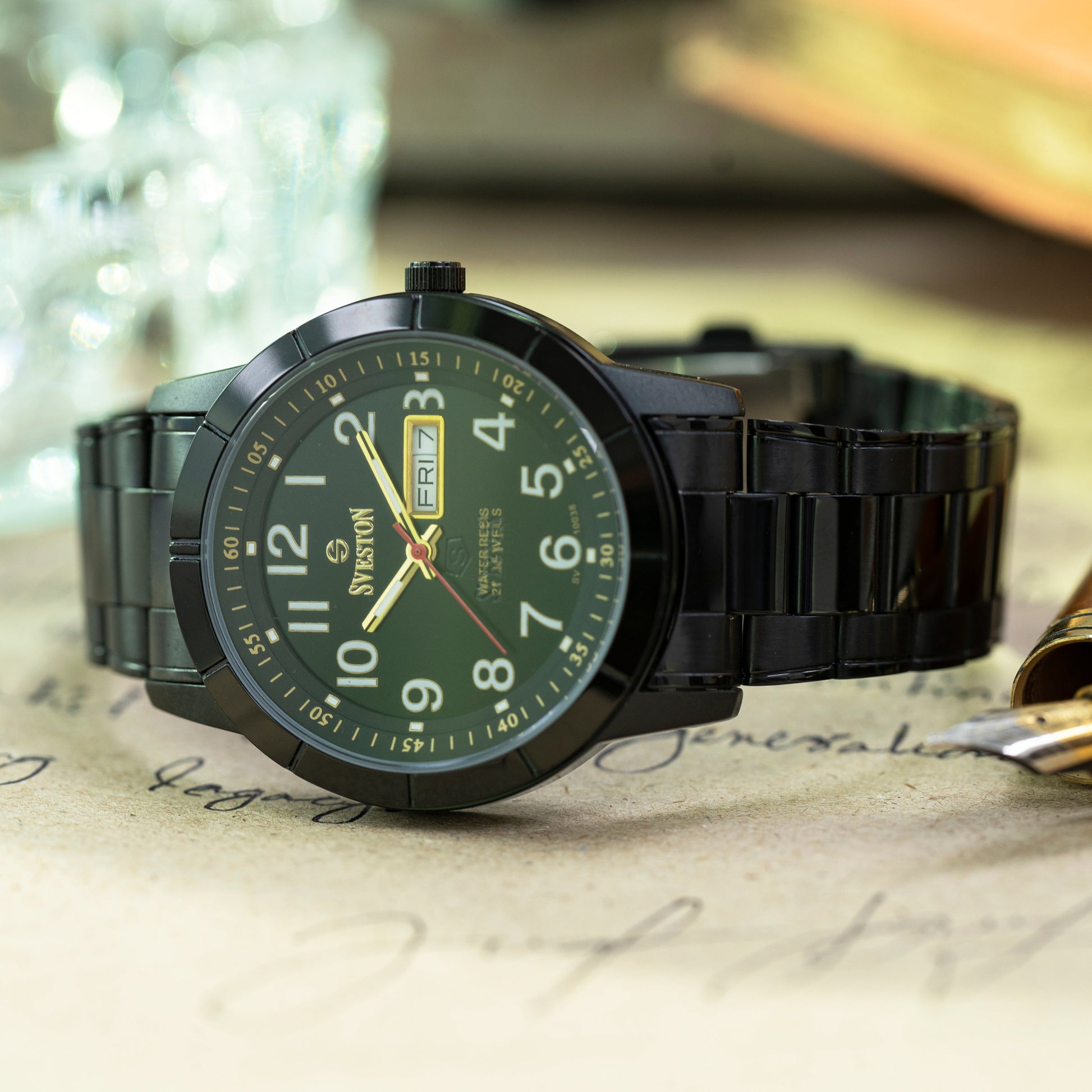 Sveston Ageless Merced is a analog battery powered 3 hand wrist watch features a 38mm round case on a link strap with pushbutton deployment clasp functions include hours minutes small seconds and date window on the right this watch comes complete with box and 1 year international warranty