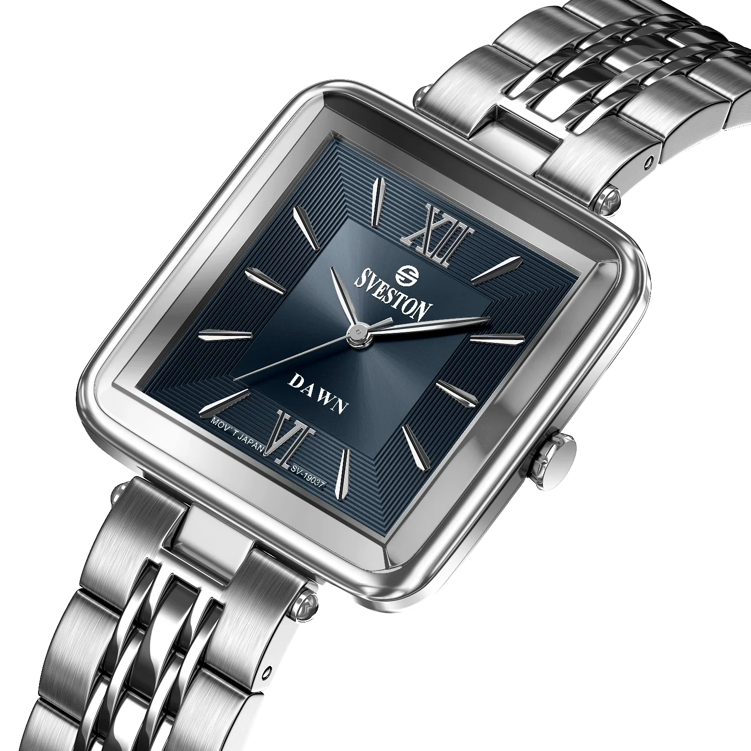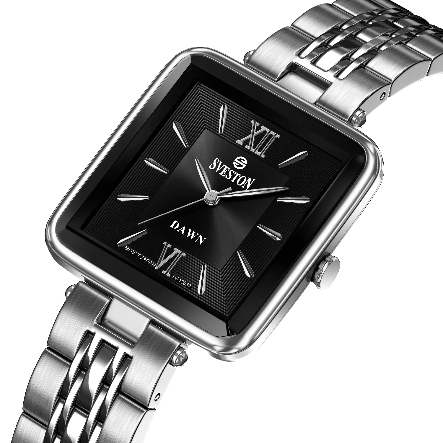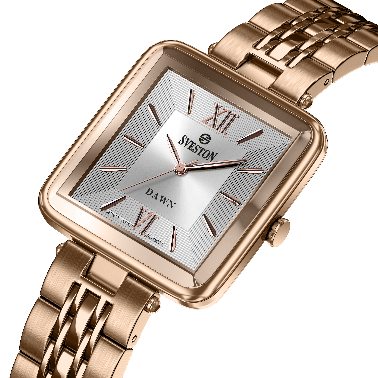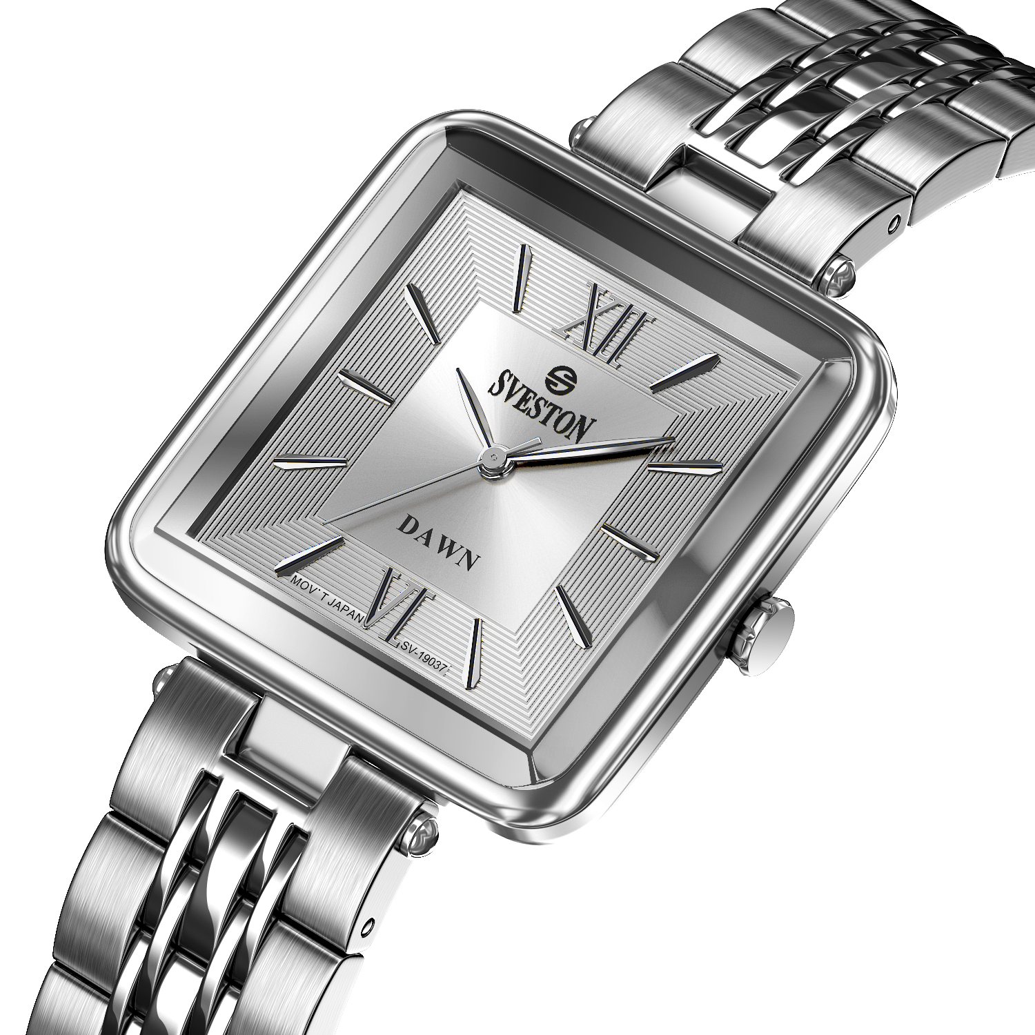 Introducing the Sveston Dawn watch - a perfect accessory for any modern women. With its sleek design and comfortable stainless steel, this watch is ideal for both casual and formal occasions. The 35mm lug-to-lug distance and 29mm case size make it a versatile option for any wrist size. Weighing only 97 grams and water-resistant up to 3ATM, this feminine watch is both practical and stylish. Don't miss out on the perfect watch for women