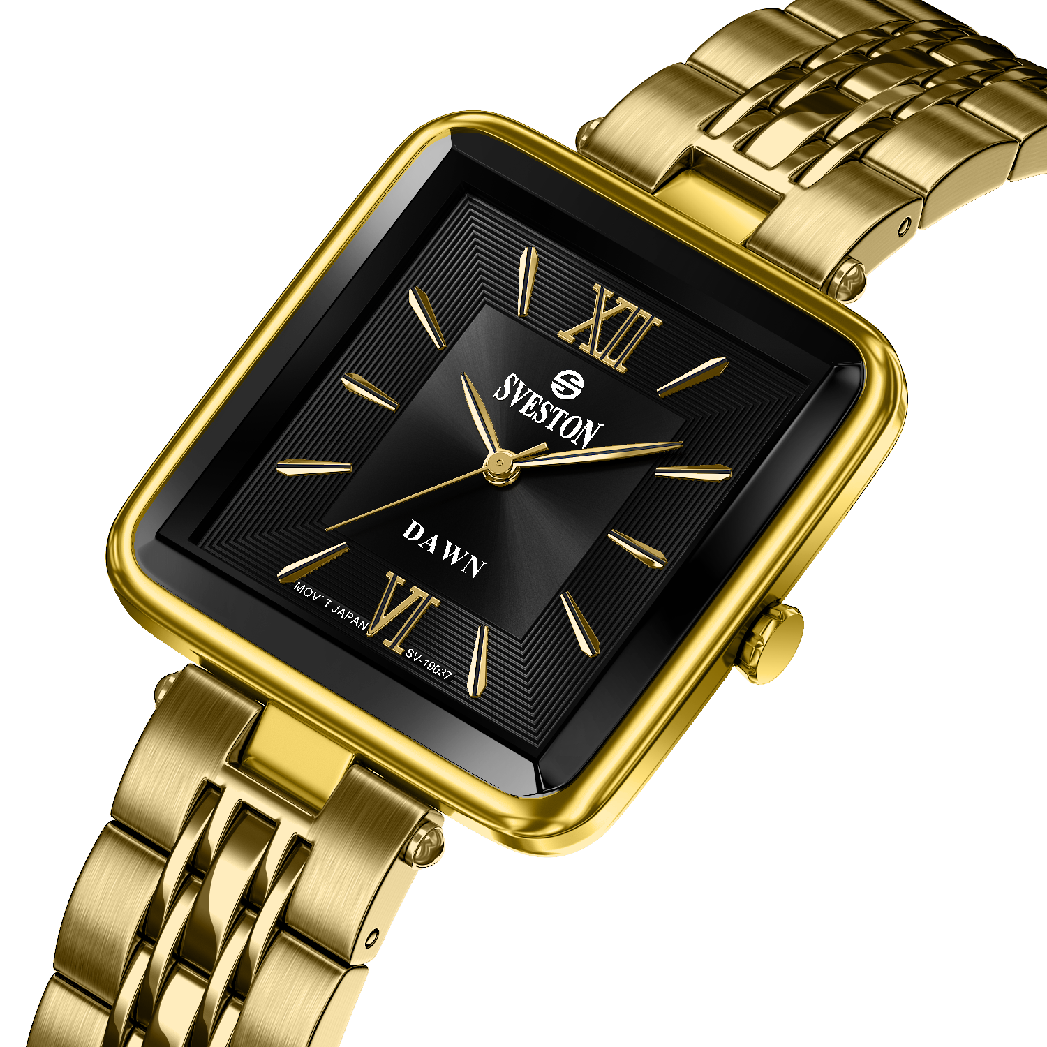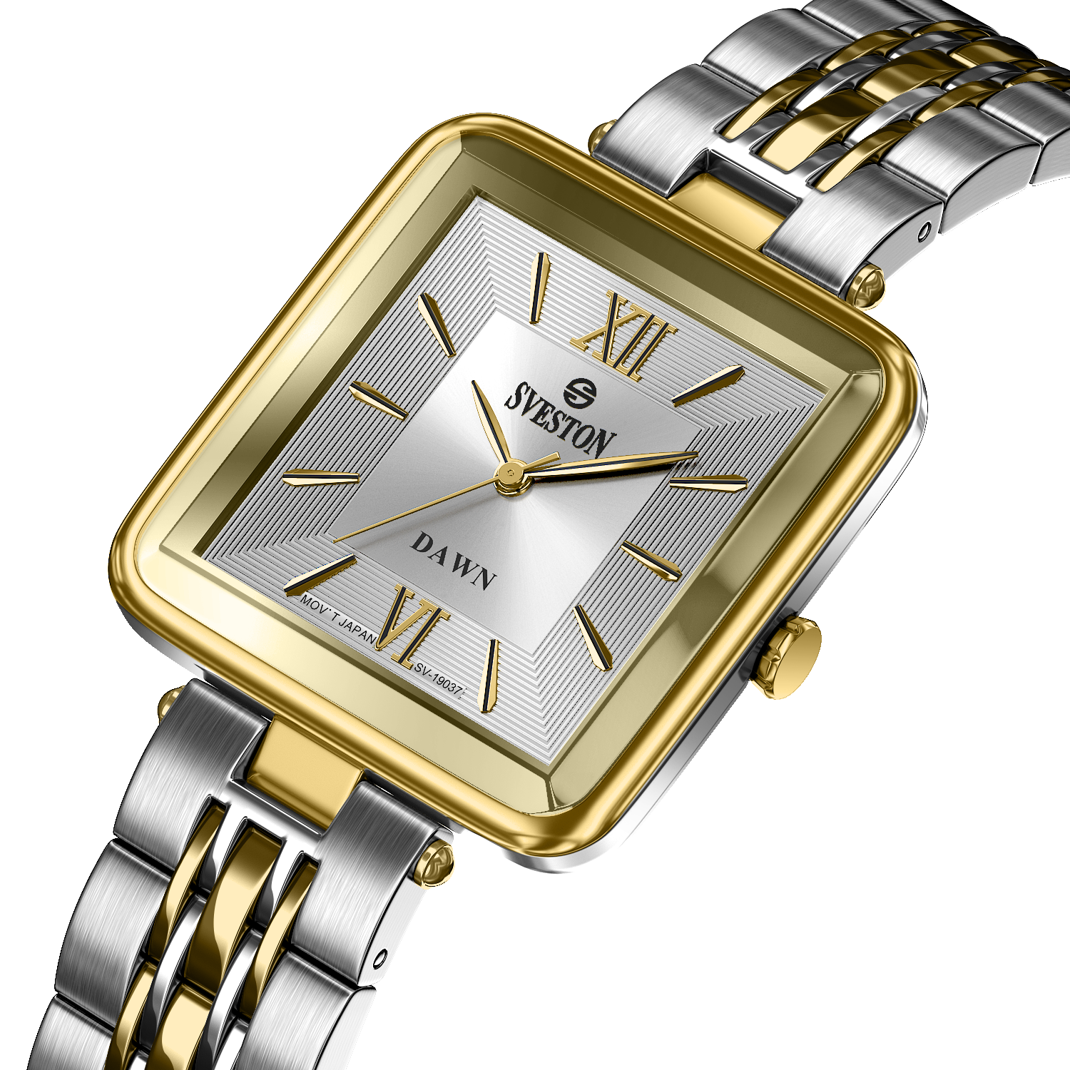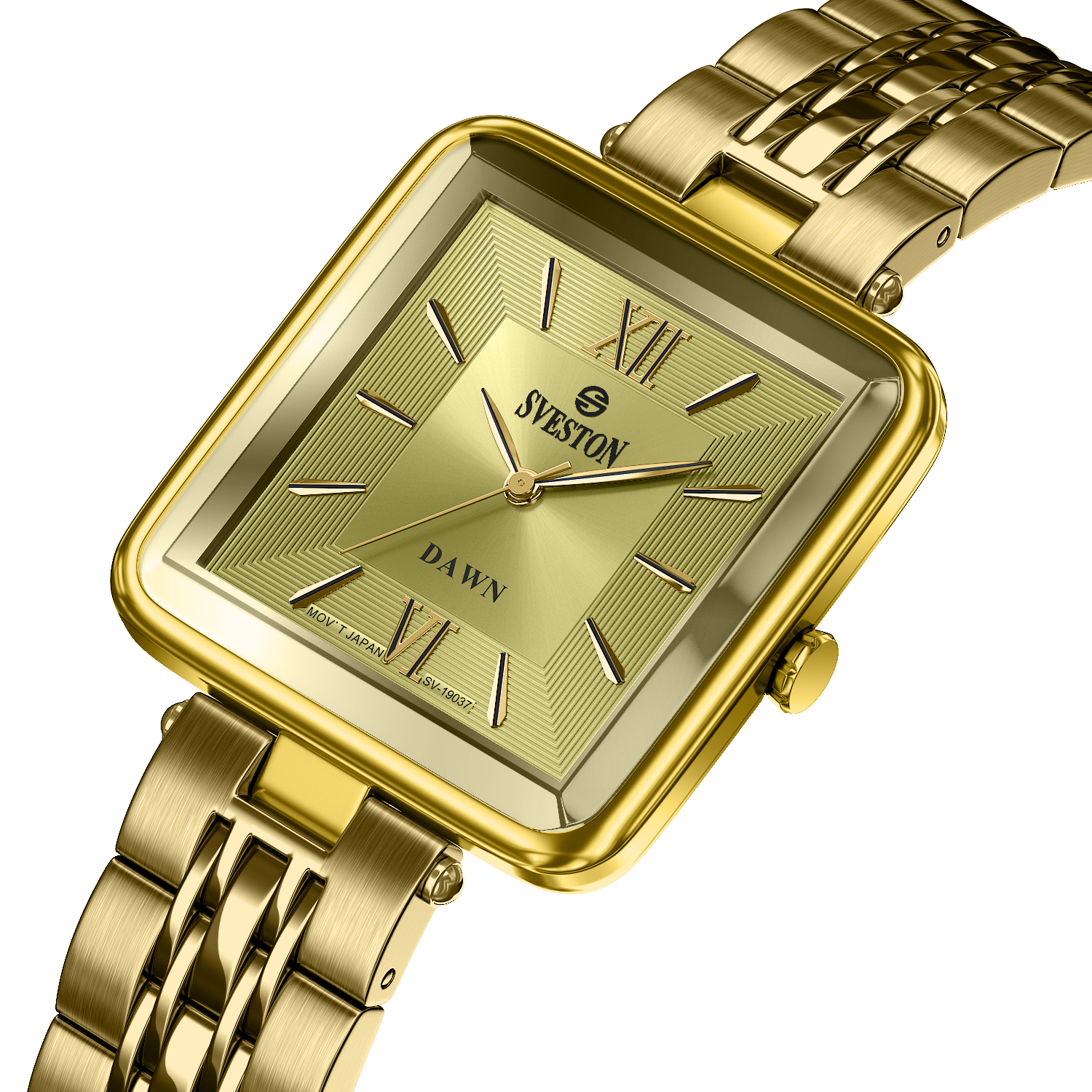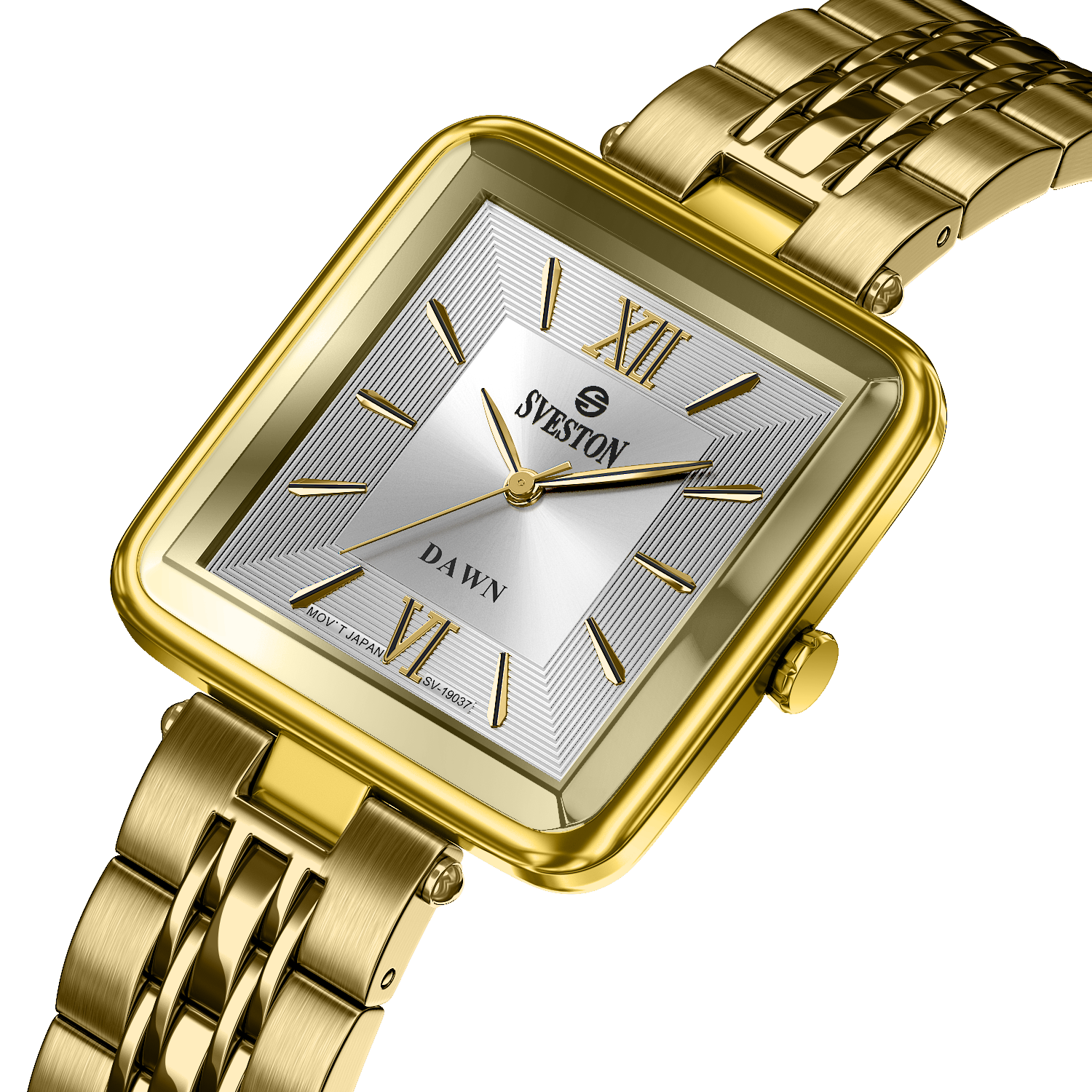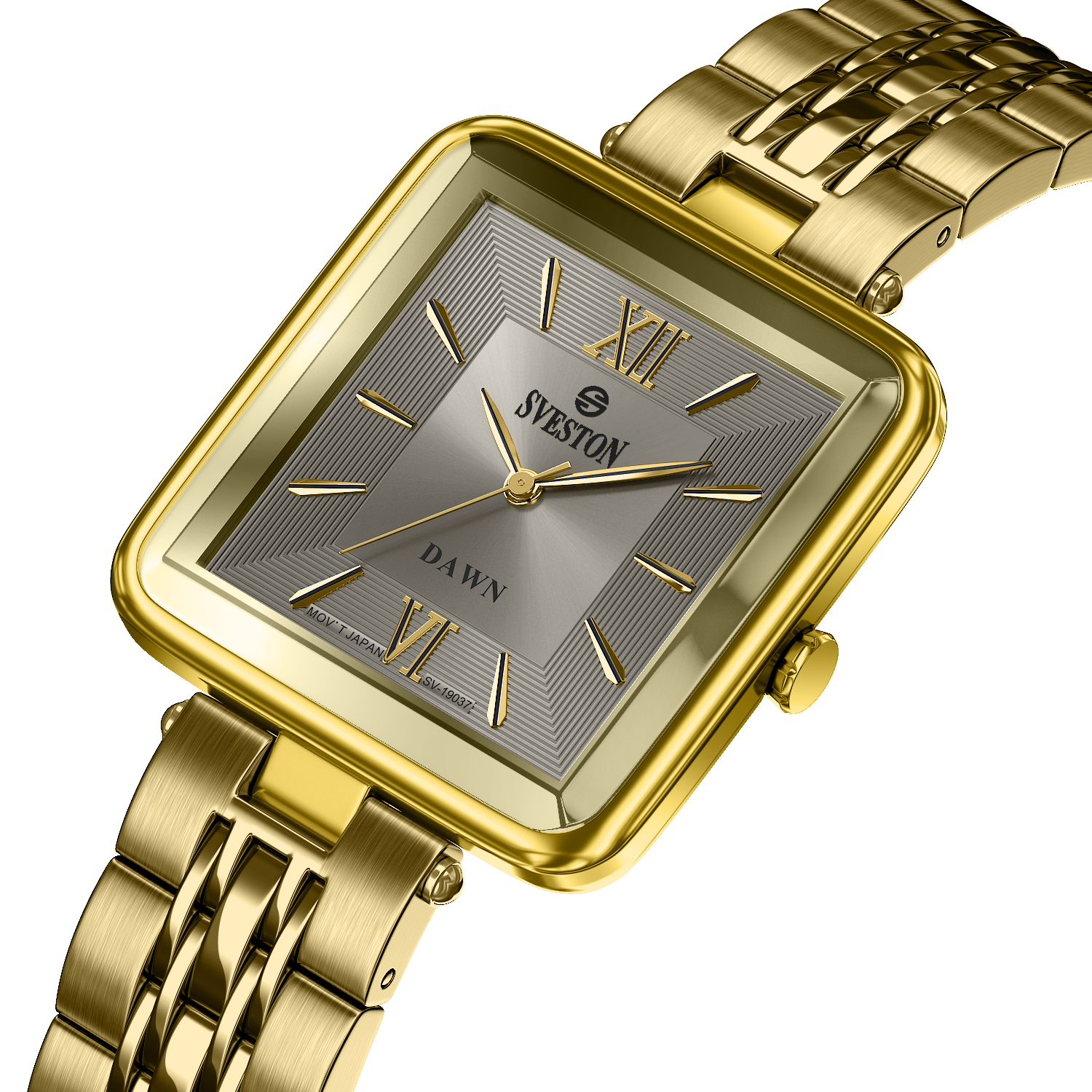 Introducing the Sveston Dawn watch - a perfect accessory for any modern women. With its sleek design and comfortable stainless steel, this watch is ideal for both casual and formal occasions. The 35mm lug-to-lug distance and 29mm case size make it a versatile option for any wrist size. Weighing only 97 grams and water-resistant up to 3ATM, this feminine watch is both practical and stylish. Don't miss out on the perfect watch for women