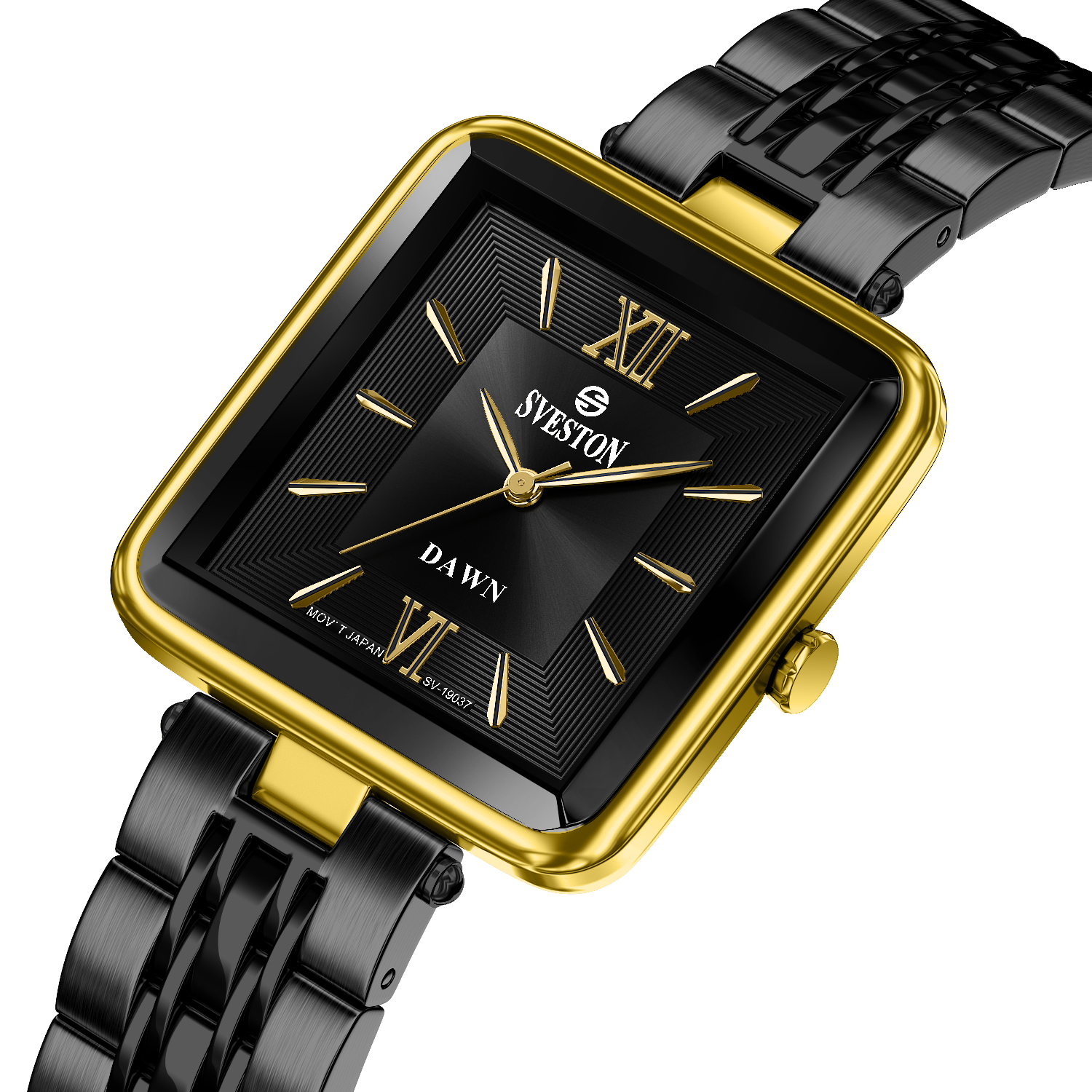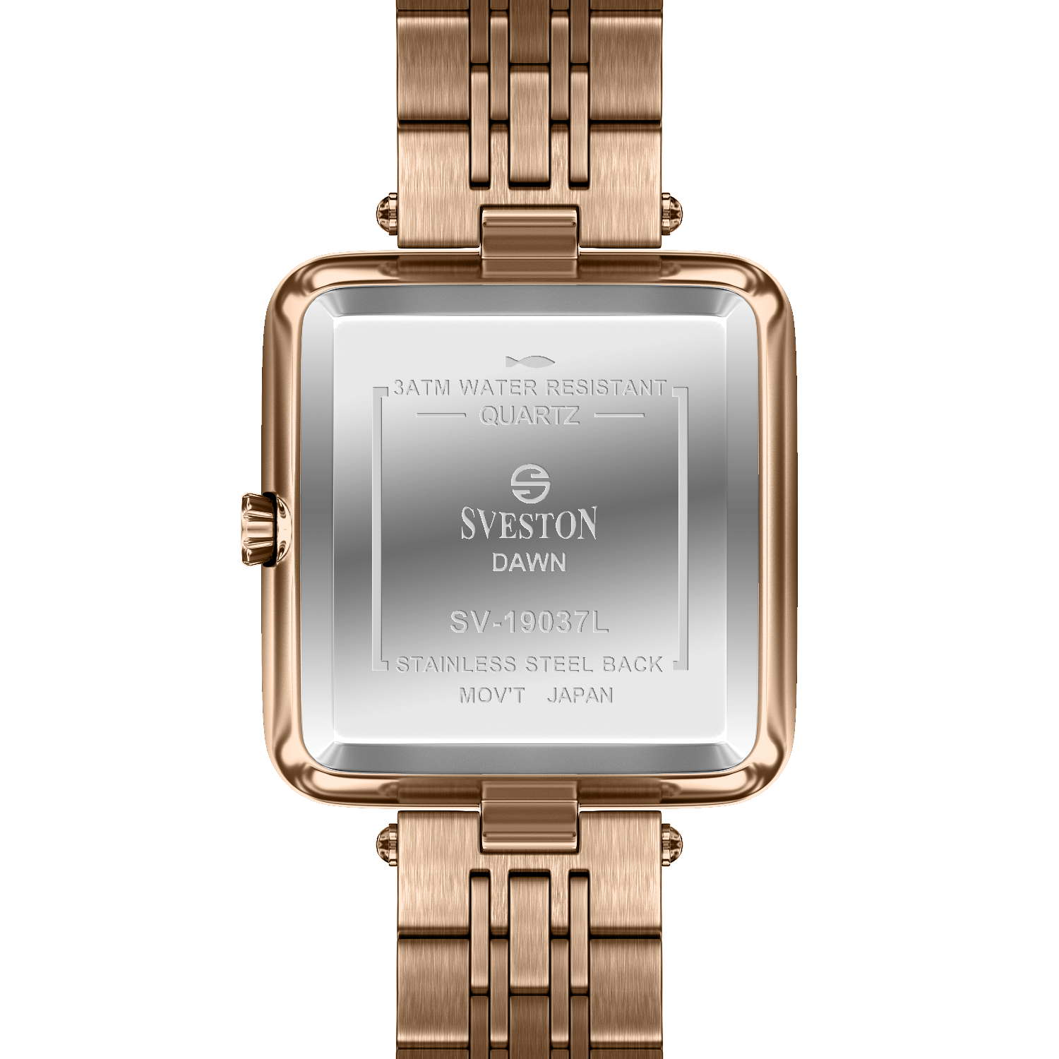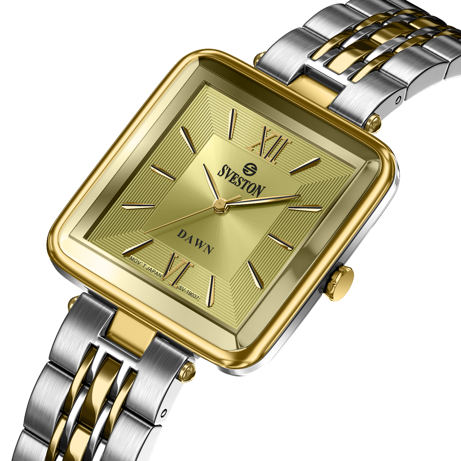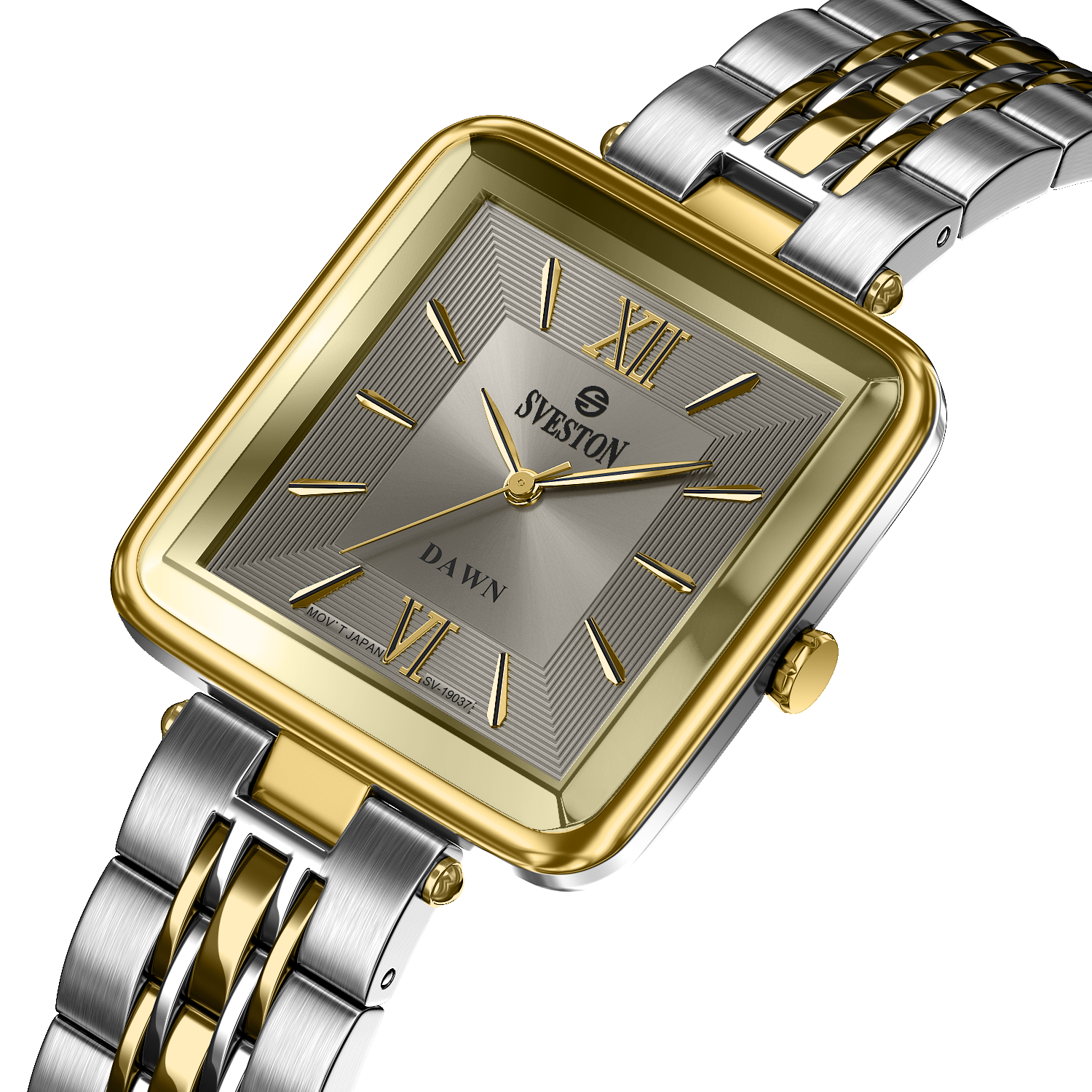 Introducing the Sveston Dawn watch - a perfect accessory for any modern women. With its sleek design and comfortable stainless steel, this watch is ideal for both casual and formal occasions. The 35mm lug-to-lug distance and 29mm case size make it a versatile option for any wrist size. Weighing only 97 grams and water-resistant up to 3ATM, this feminine watch is both practical and stylish. Don't miss out on the perfect watch for women