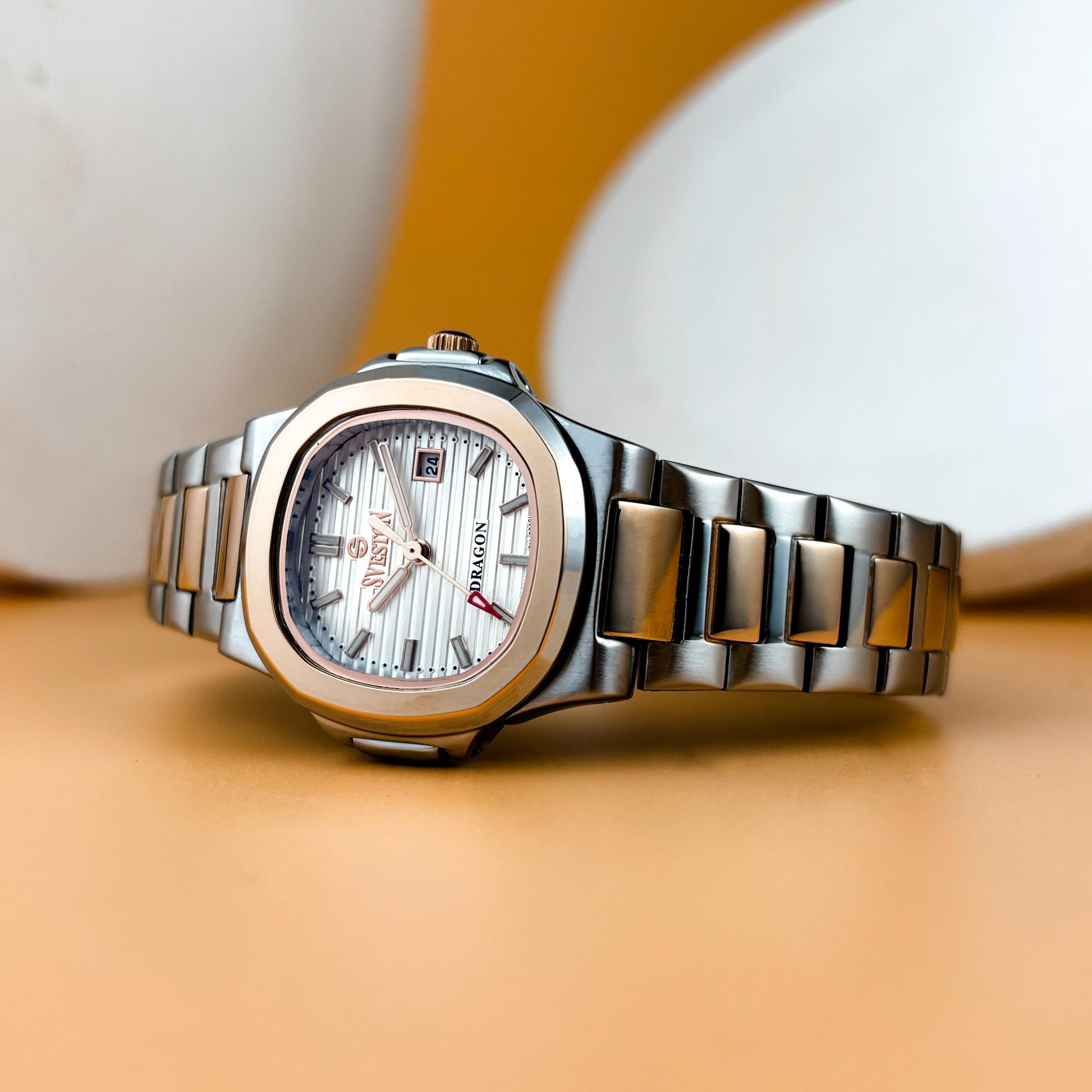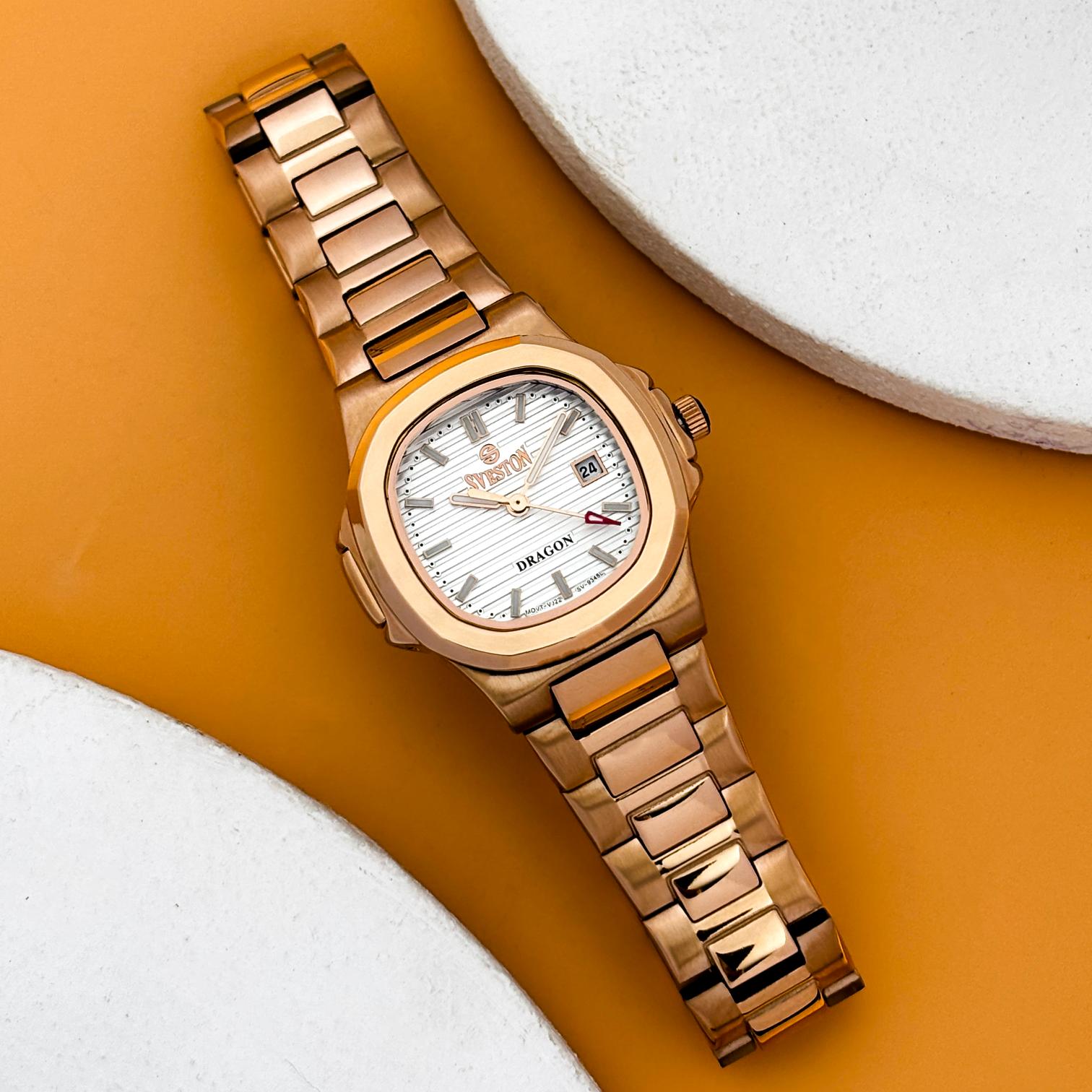 The Sveston Dragon is a sophisticated ladies' timepiece, featuring a 25mm stainless-steel dial and elegantly presented in a luxury watch case