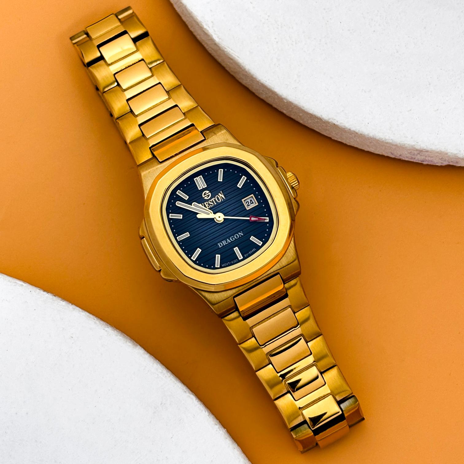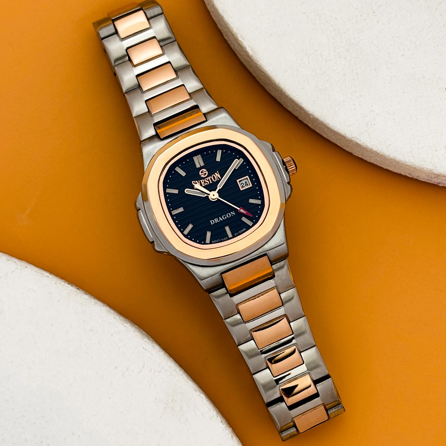 Make a statement with the Dragon stainless steel watch for women. Crafted with precise Japanese Quartz movement, this watch weighs 123 grams and features a case size of 25mm (31mm lug-to-lug distance) and 3ATM water resistance. Experience the perfect blend of style and function with the Dragon watch, designed for the modern woman