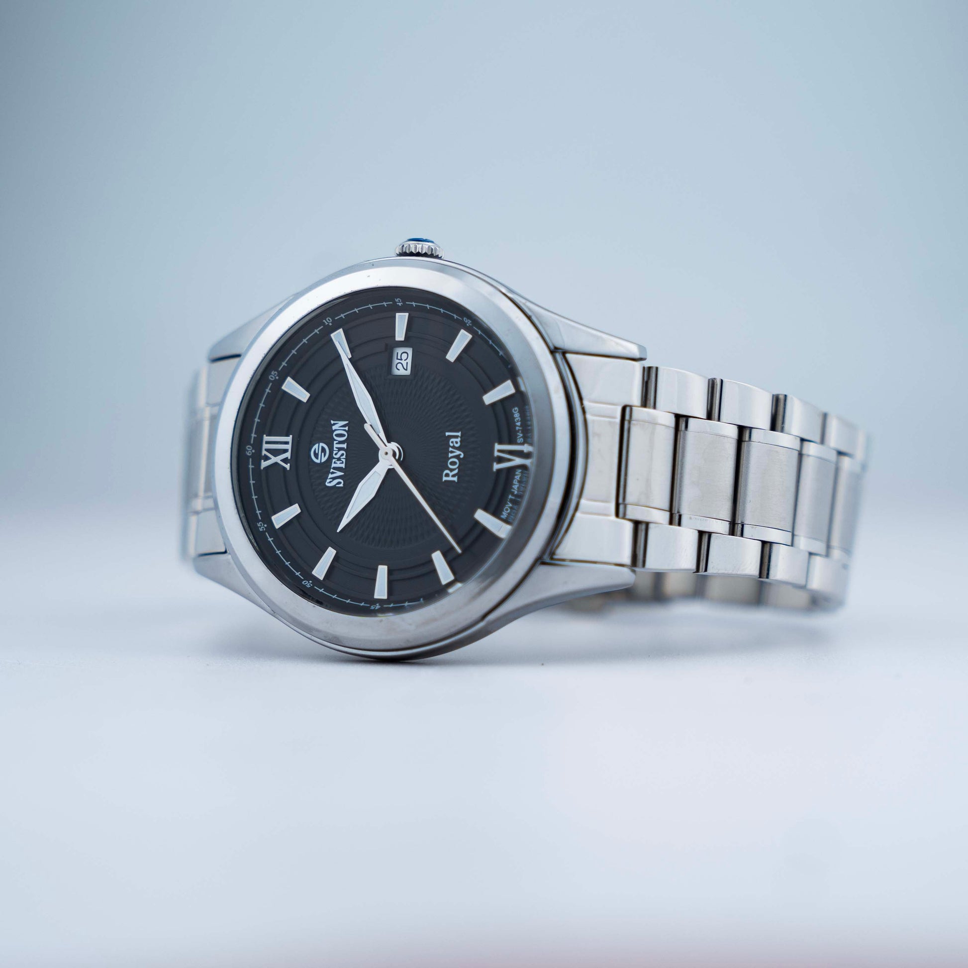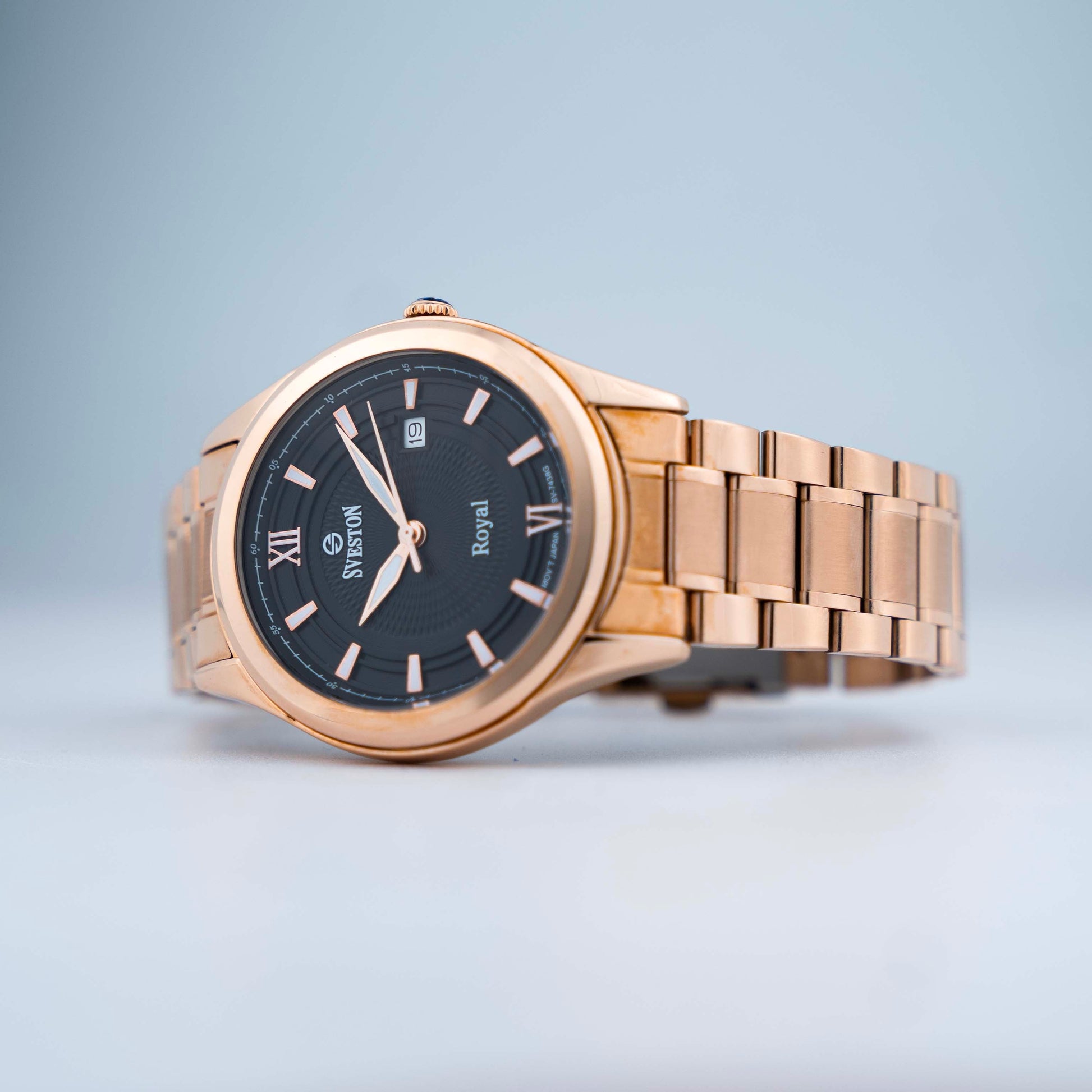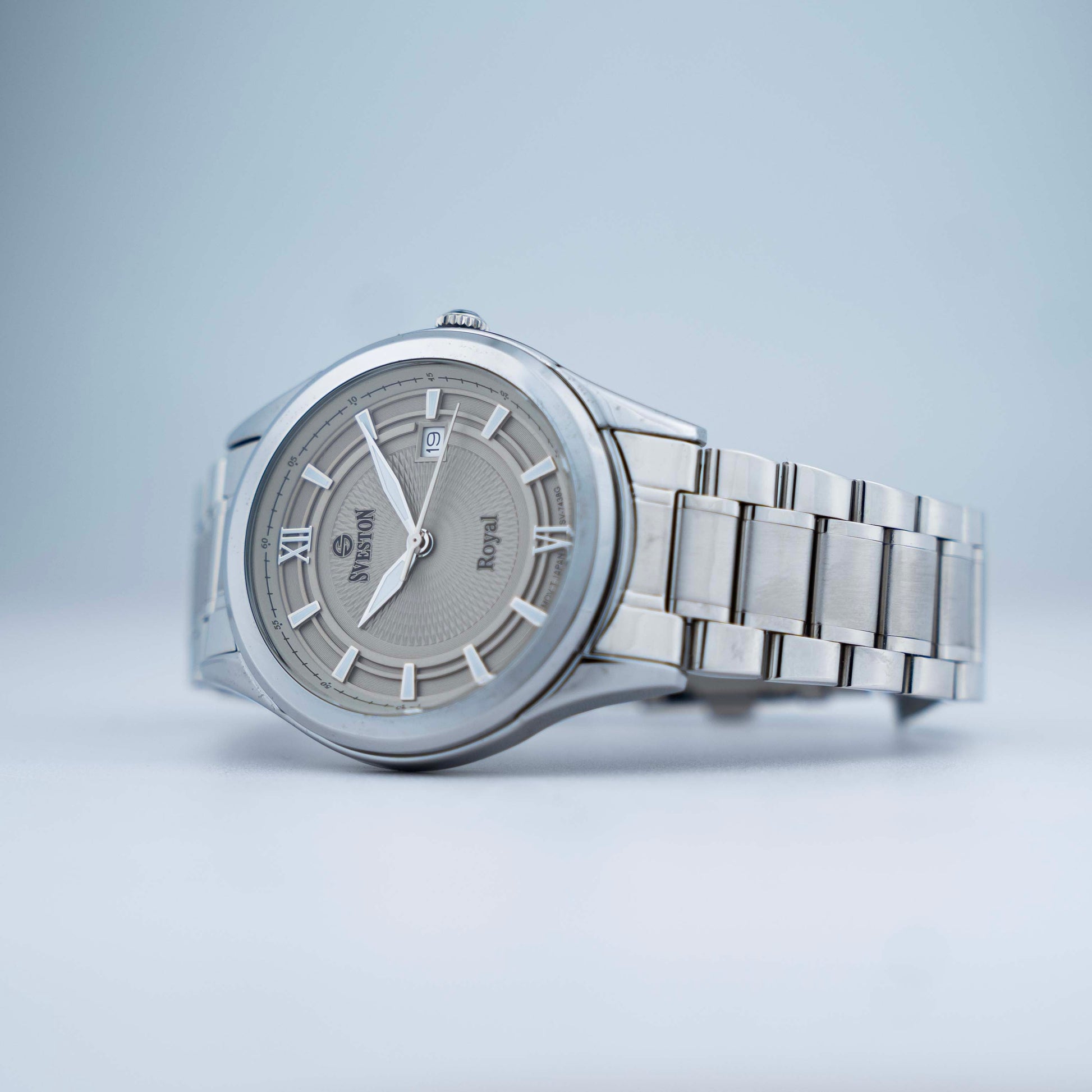 Experience luxury and precision with Sveston Royal a men's watch made with Japanese Quartz crafted from durable stainless steel it boasts a 38mm case size with a 49mm lug-to-lug distance and 3ATM water resistance weighing 128 grams this watch offers both style and substance