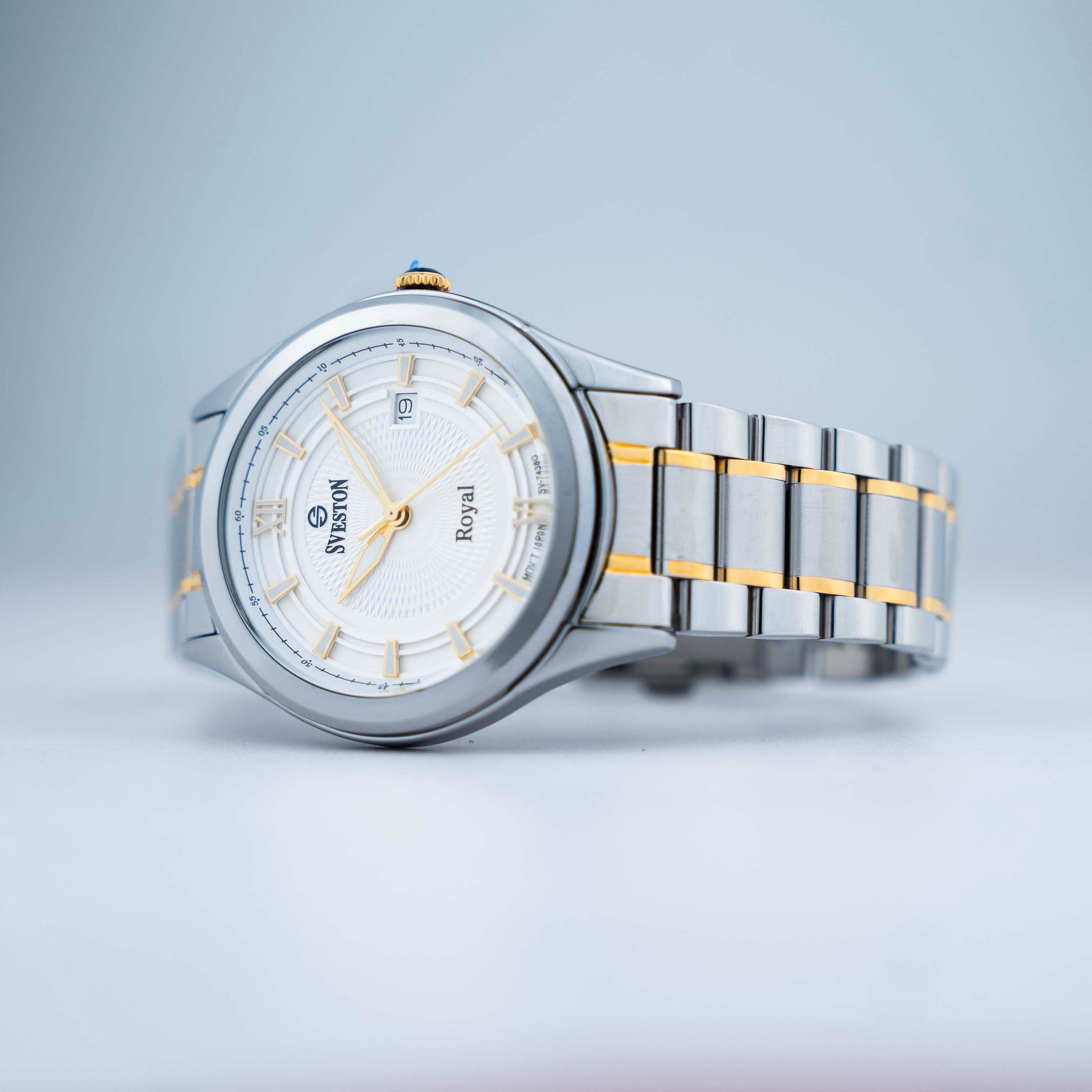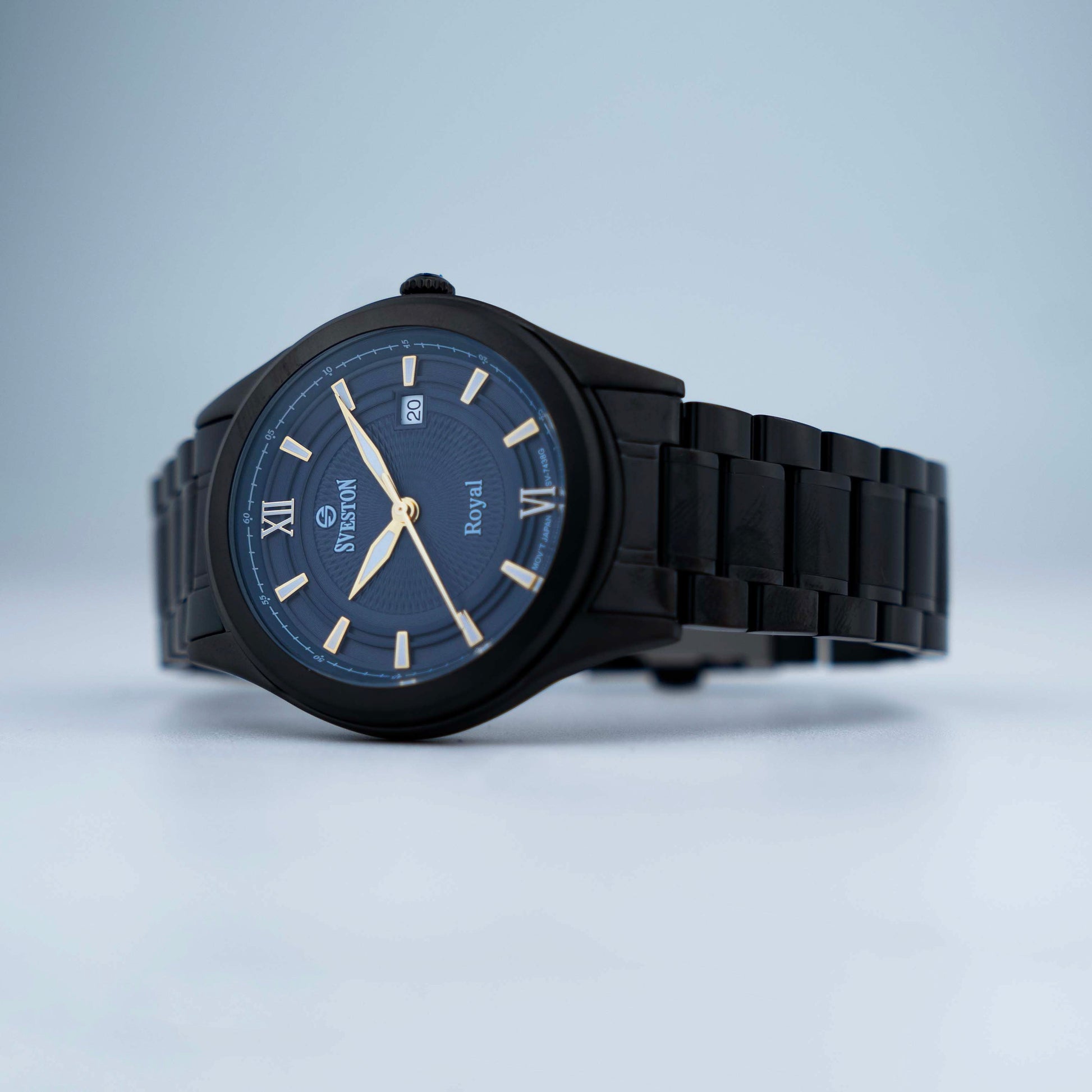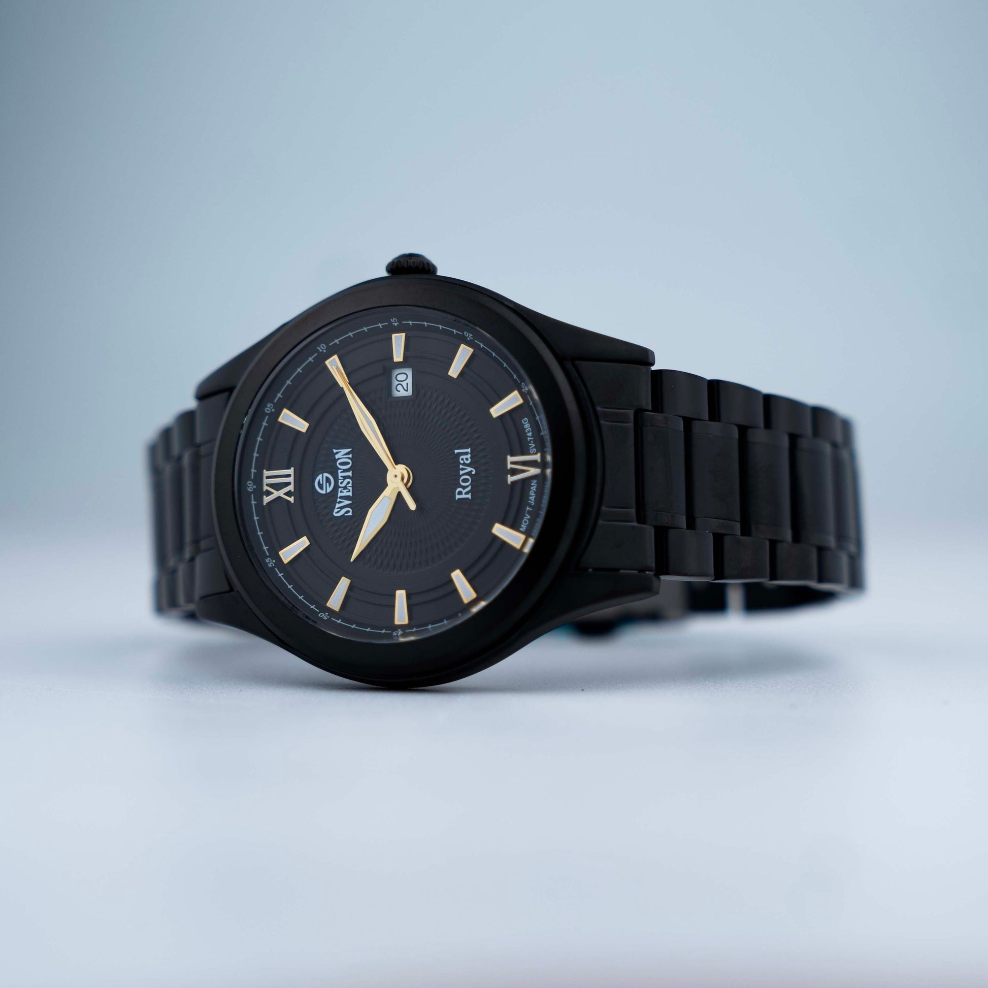 Experience luxury and precision with Sveston Royal a men's watch made with Japanese Quartz crafted from durable stainless steel it boasts a 38mm case size with a 49mm lug-to-lug distance and 3ATM water resistance weighing 128 grams this watch offers both style and substance