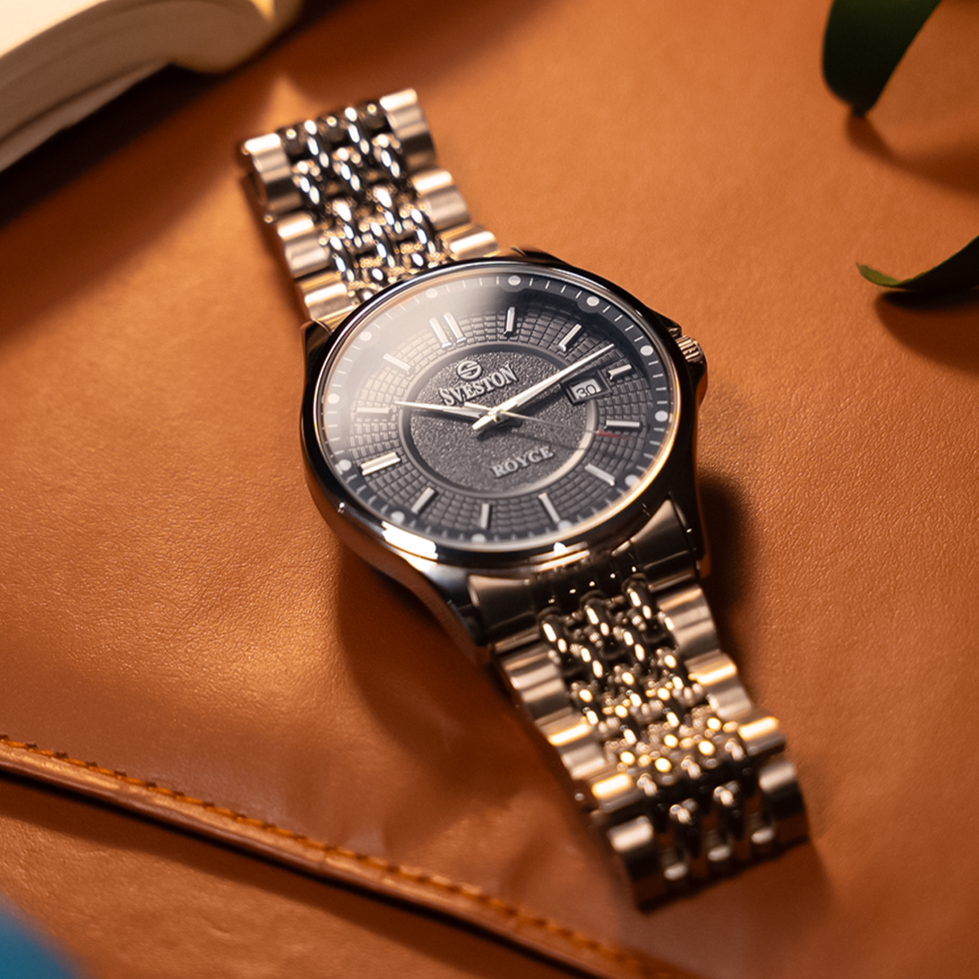 Sveston Royce is a gents' stainless steel timepiece featuring a 37mm dial elegantly presented in a premium luxury watch case. Designed for men who value precision and performance, it’s a bold reflection of ambition and refinement