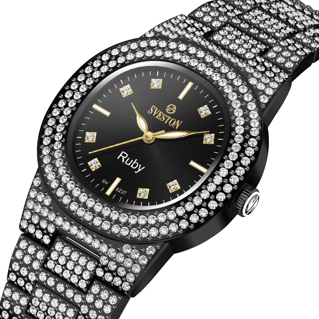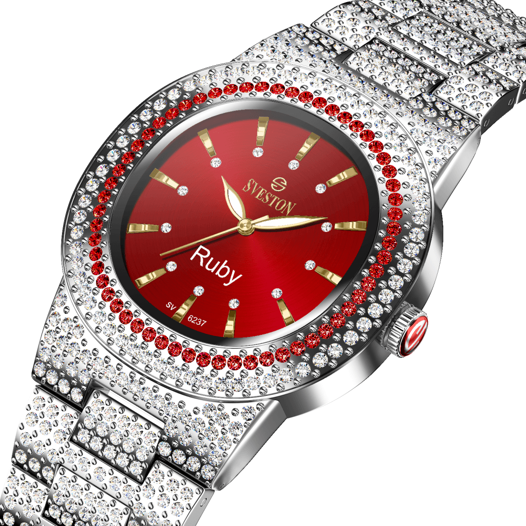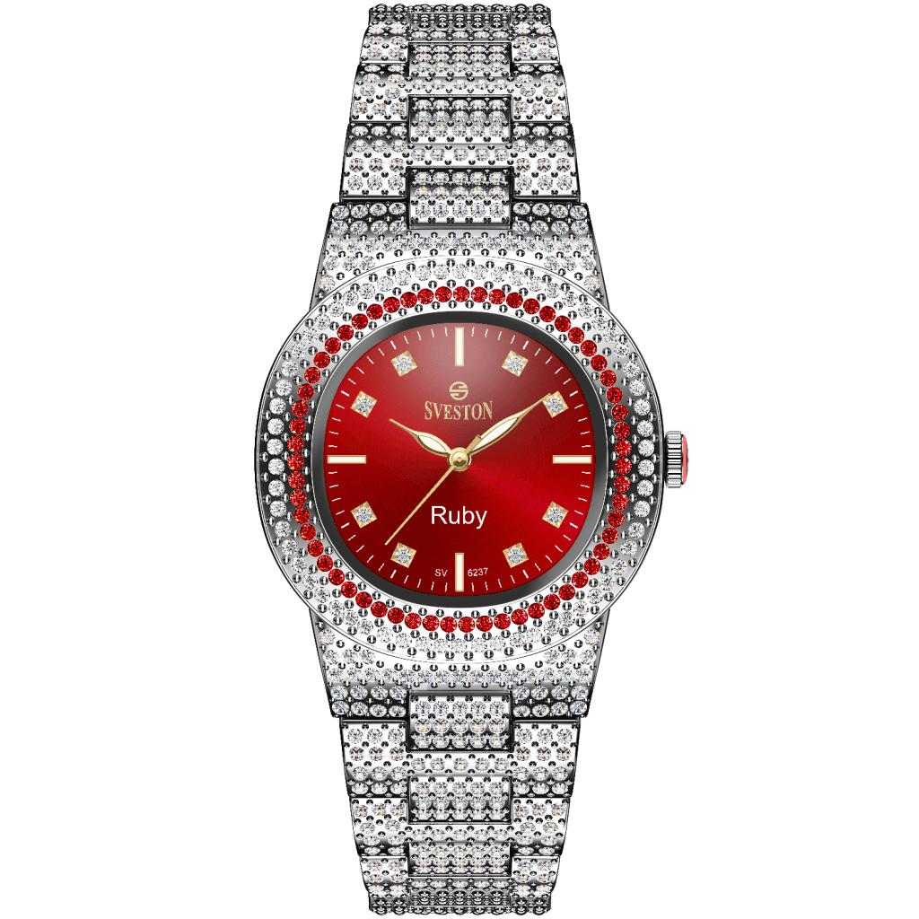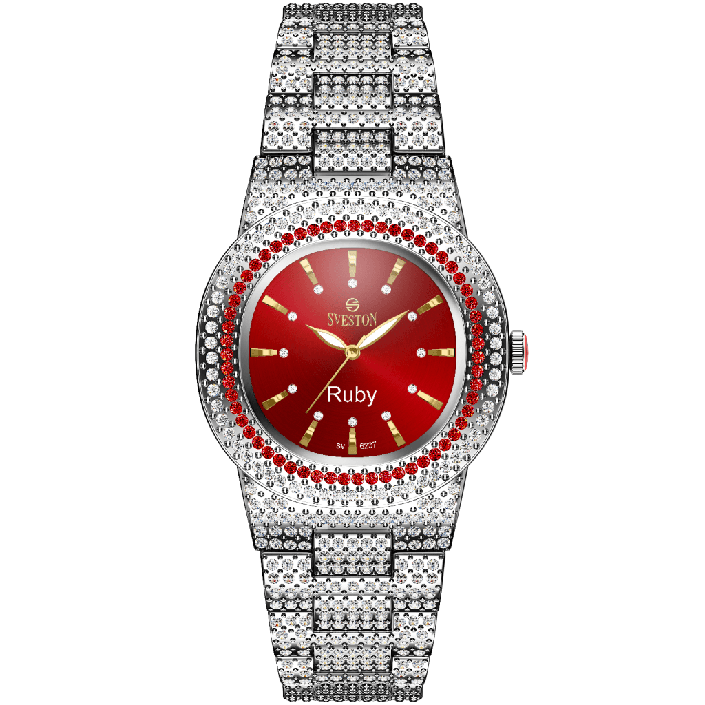 Indulge in the ultimate luxury with our Ruby watch designed exclusively for women this timepiece boasts a dazzling bracelet style with a petite 31mm case size making it perfect for a feminine touch Weighing only 95 grams and water-resistant up to 3ATM Ruby promises both comfort and practicality whether it's a special occasion or just everyday wear this watch is a must-have accessory for every fashion-forward women
