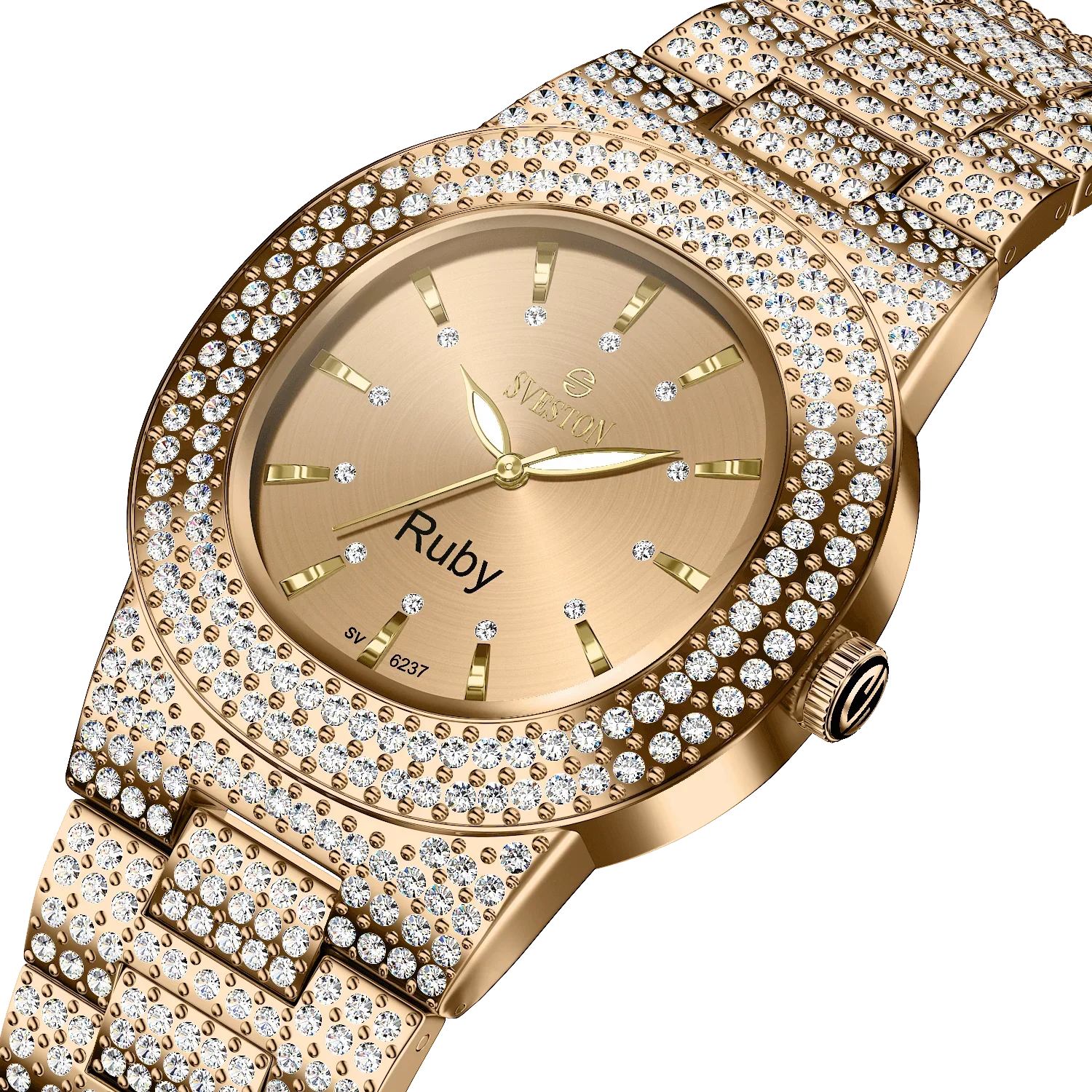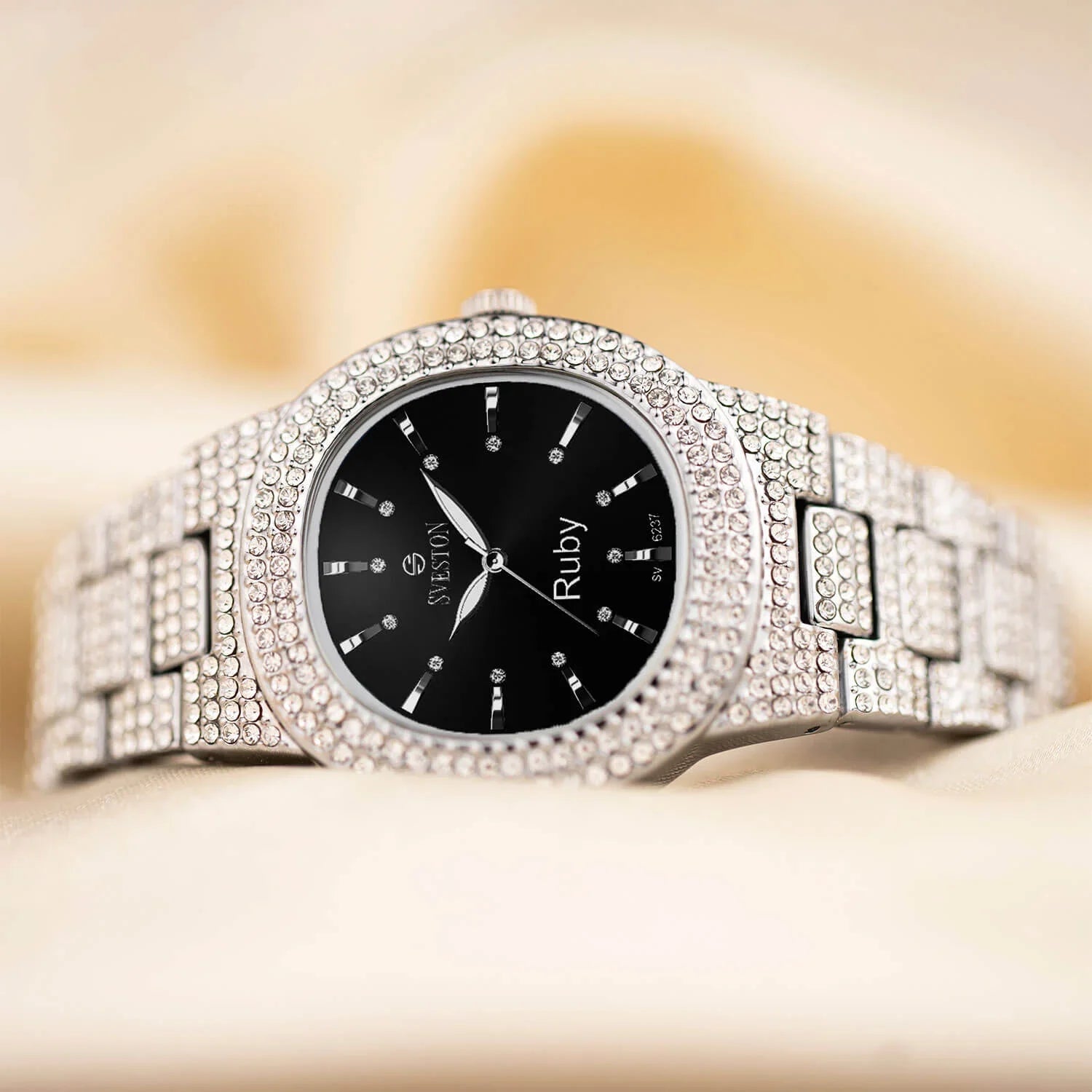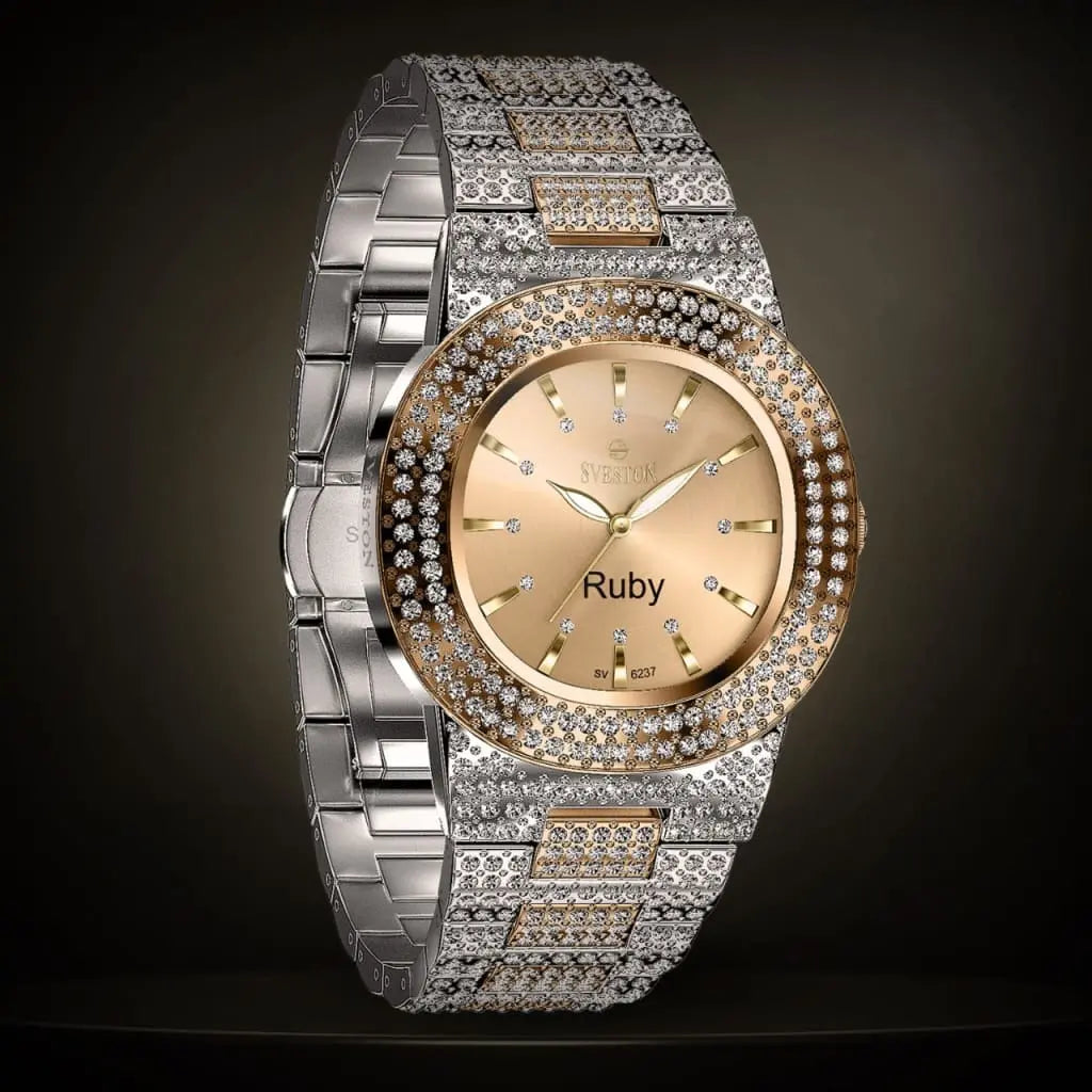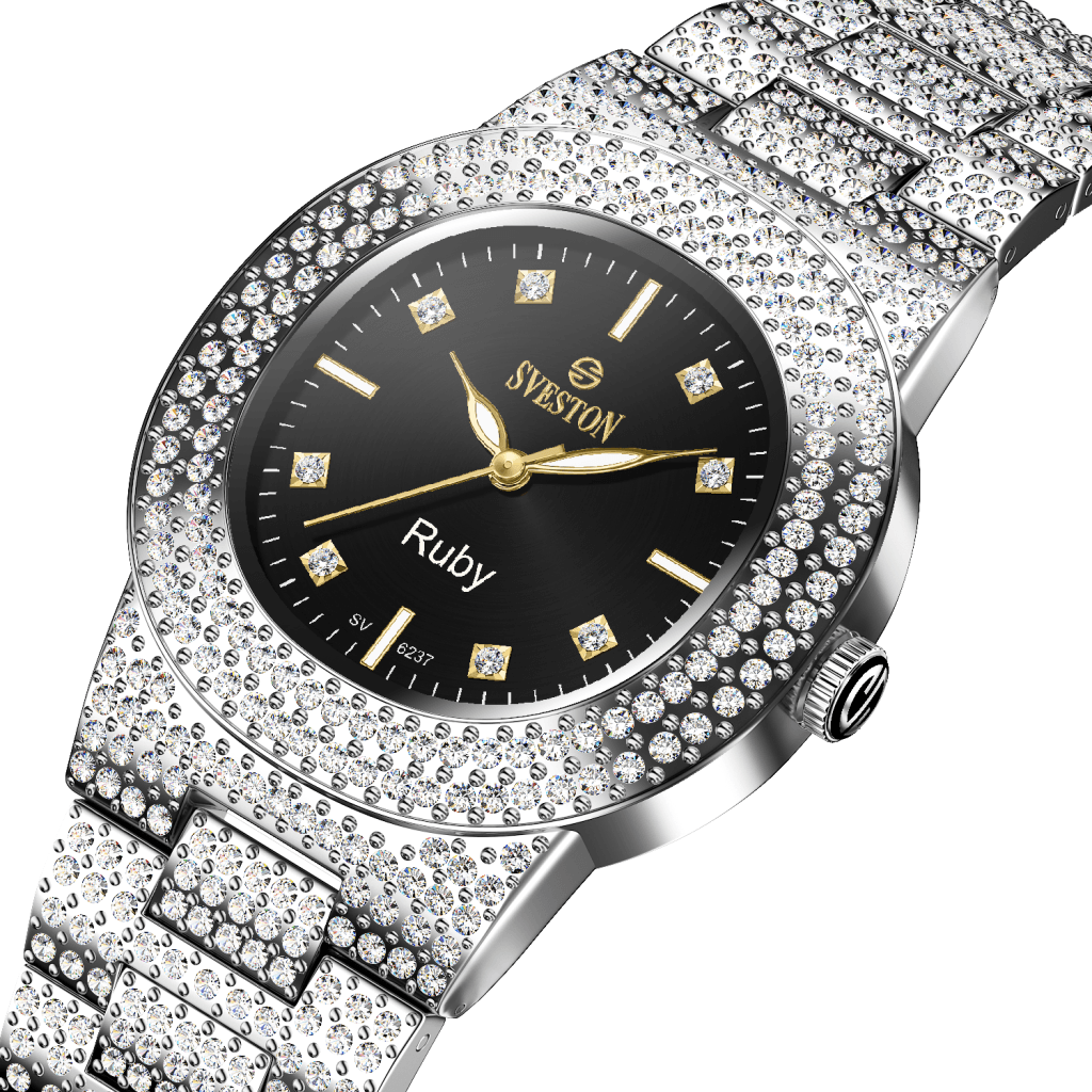Indulge in the ultimate luxury with our Ruby watch designed exclusively for women this timepiece boasts a dazzling bracelet style with a petite 31mm case size making it perfect for a feminine touch Weighing only 95 grams and water-resistant up to 3ATM Ruby promises both comfort and practicality whether it's a special occasion or just everyday wear this watch is a must-have accessory for every fashion-forward women