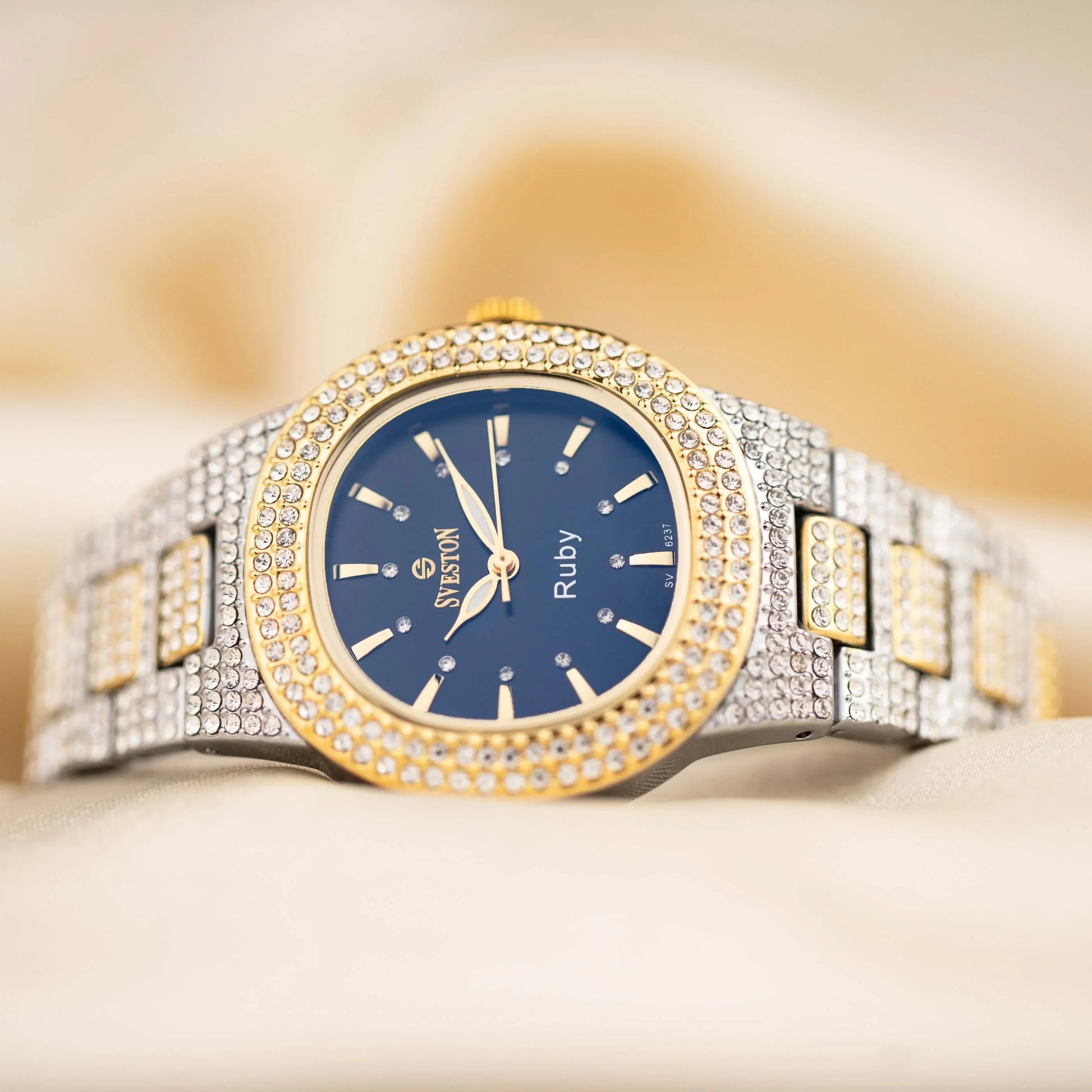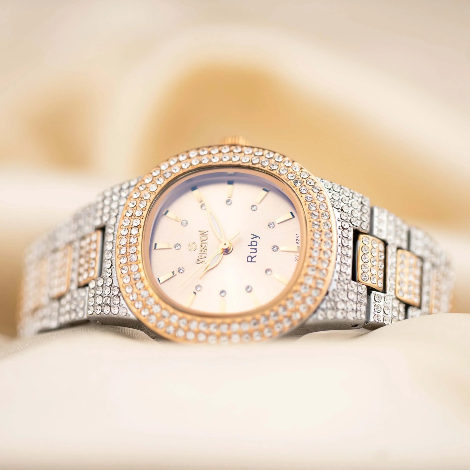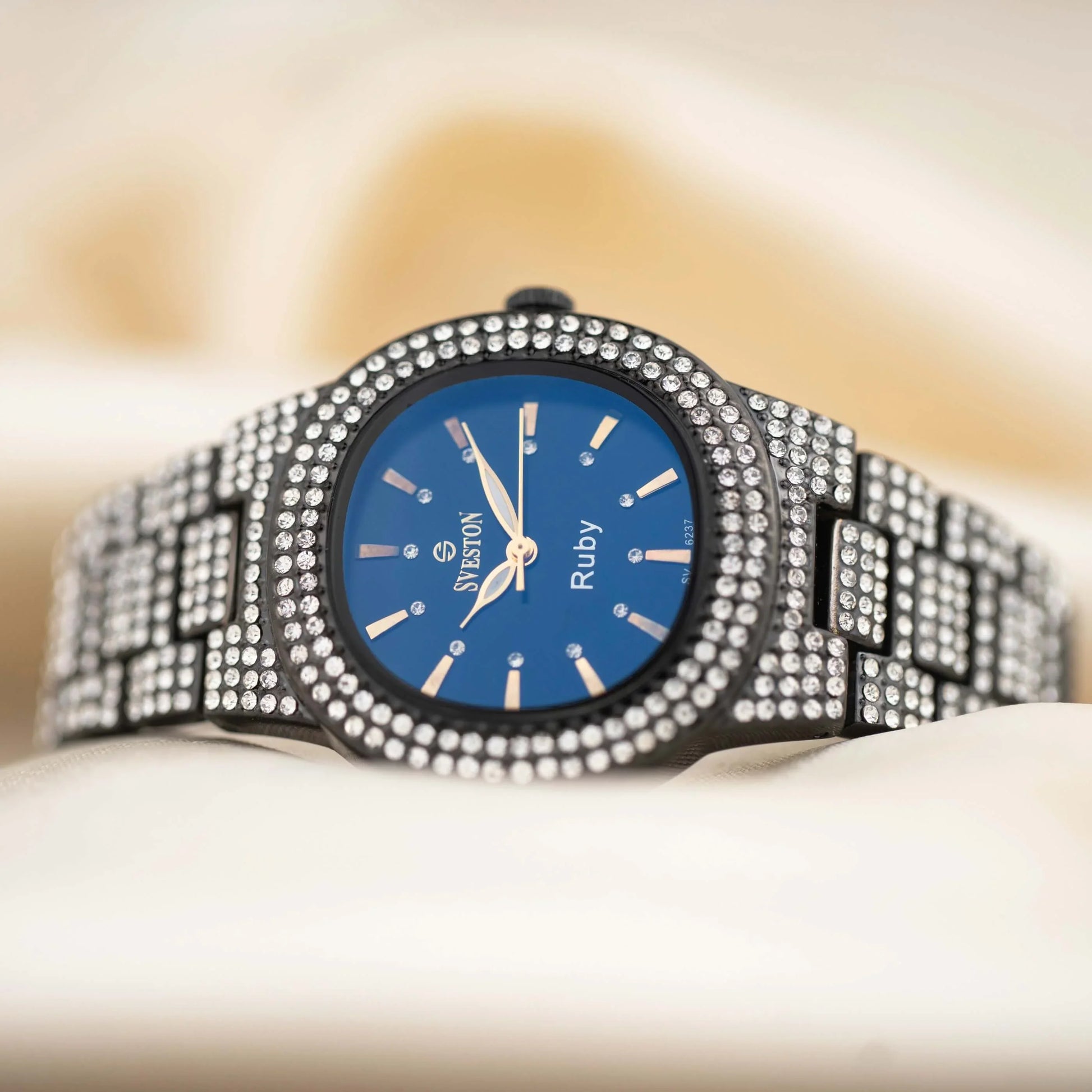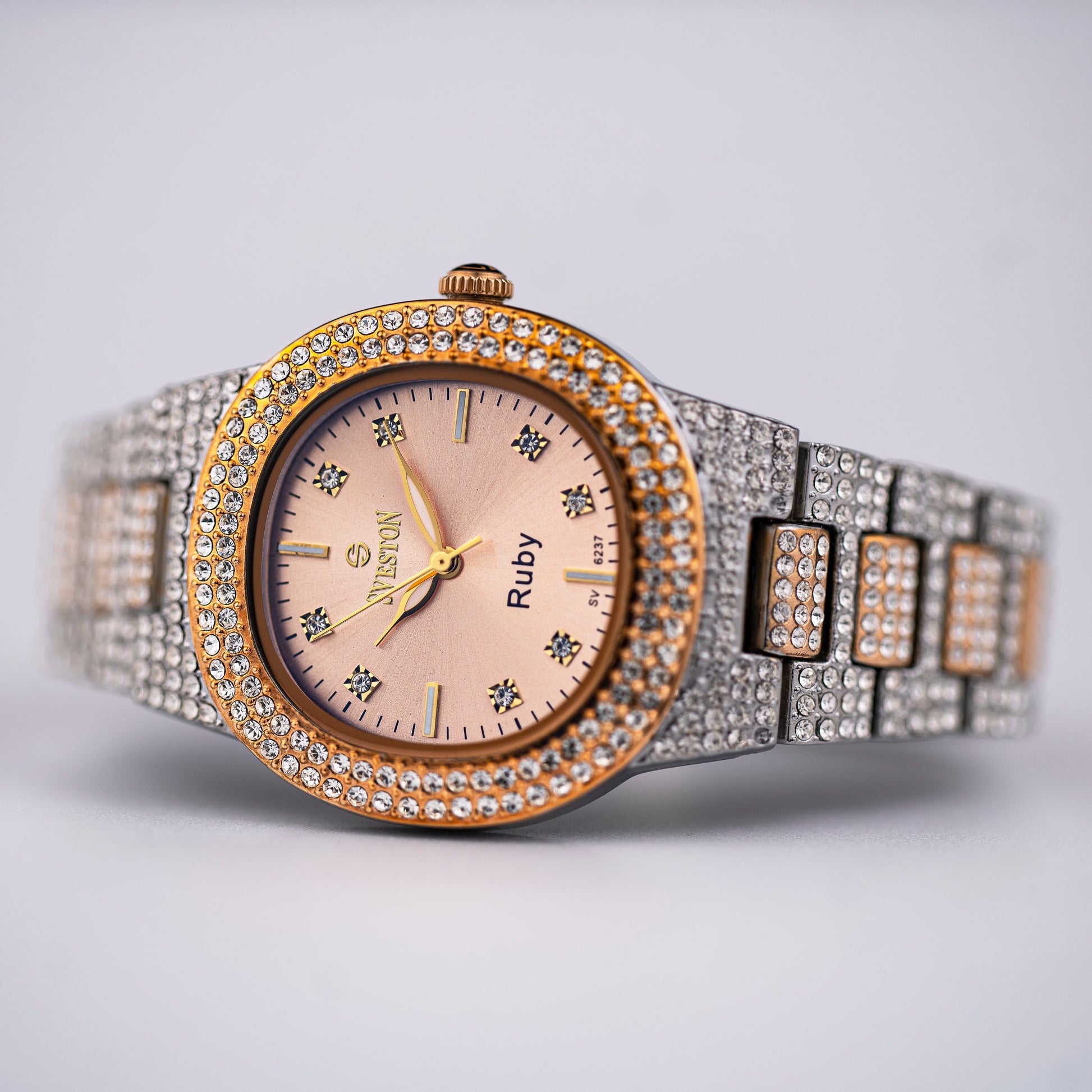 Indulge in the ultimate luxury with our Ruby watch designed exclusively for women this timepiece boasts a dazzling bracelet style with a petite 31mm case size making it perfect for a feminine touch Weighing only 95 grams and water-resistant up to 3ATM Ruby promises both comfort and practicality whether it's a special occasion or just everyday wear this watch is a must-have accessory for every fashion-forward women