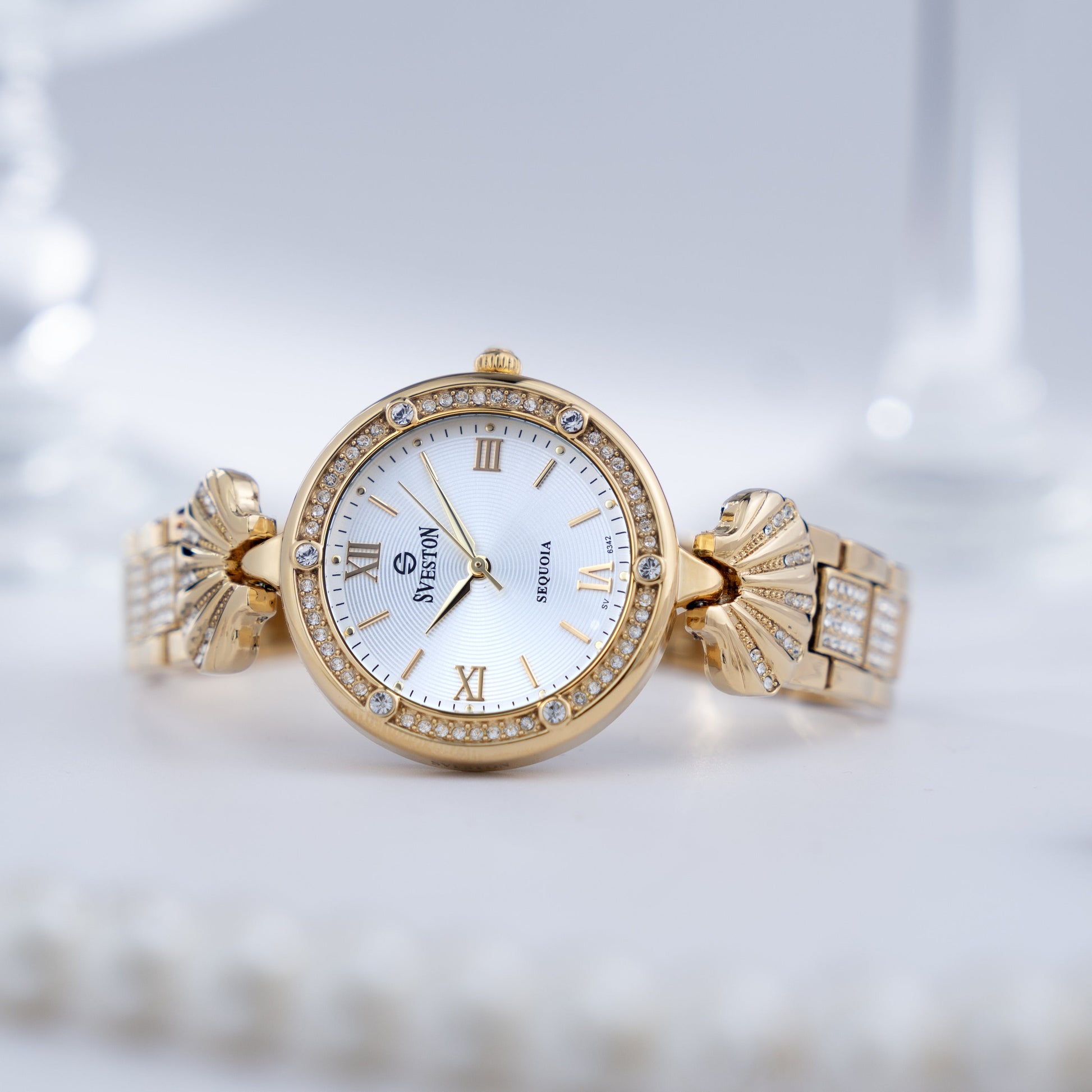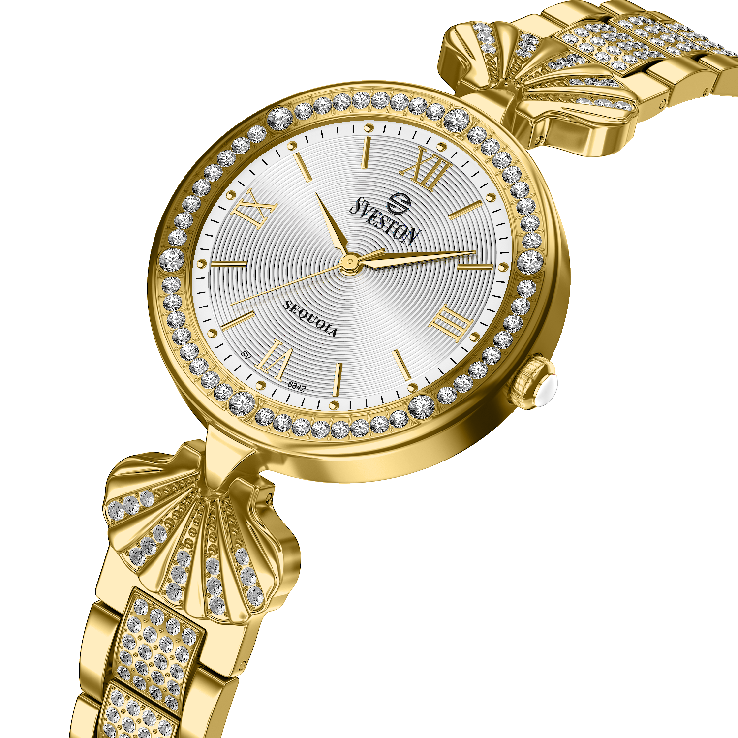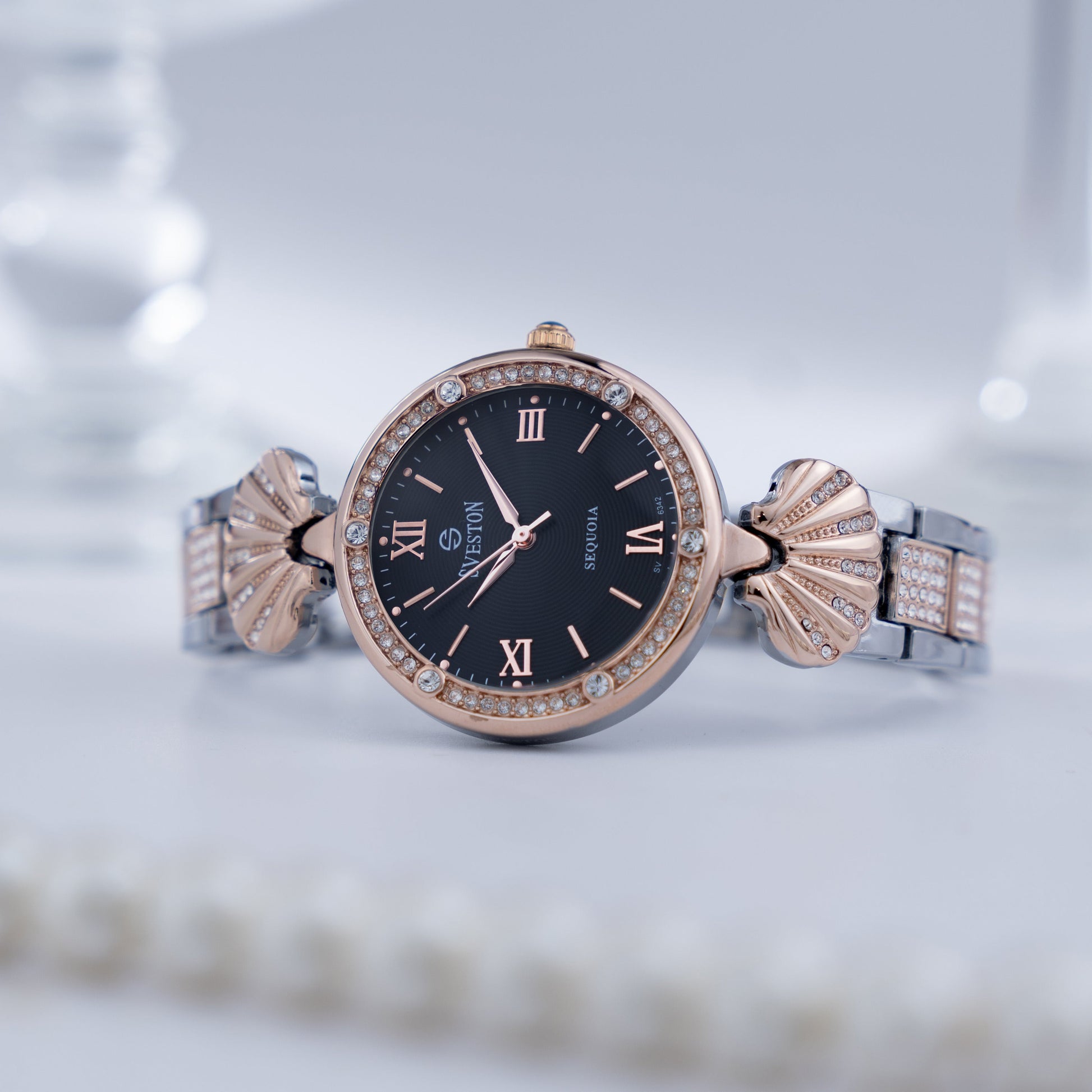 Indulge in ultimate luxury with our Sequola watch designed exclusively for women this timepiece features a dazzling bracelet style and a petite 32mm case making it perfect for a feminine touch weighing only 67 grams and water-resistant up to 3ATM Sequola offers both comfort and practicality whether for a special occasion or everyday wear this watch is a must have accessory for every fashion forward women