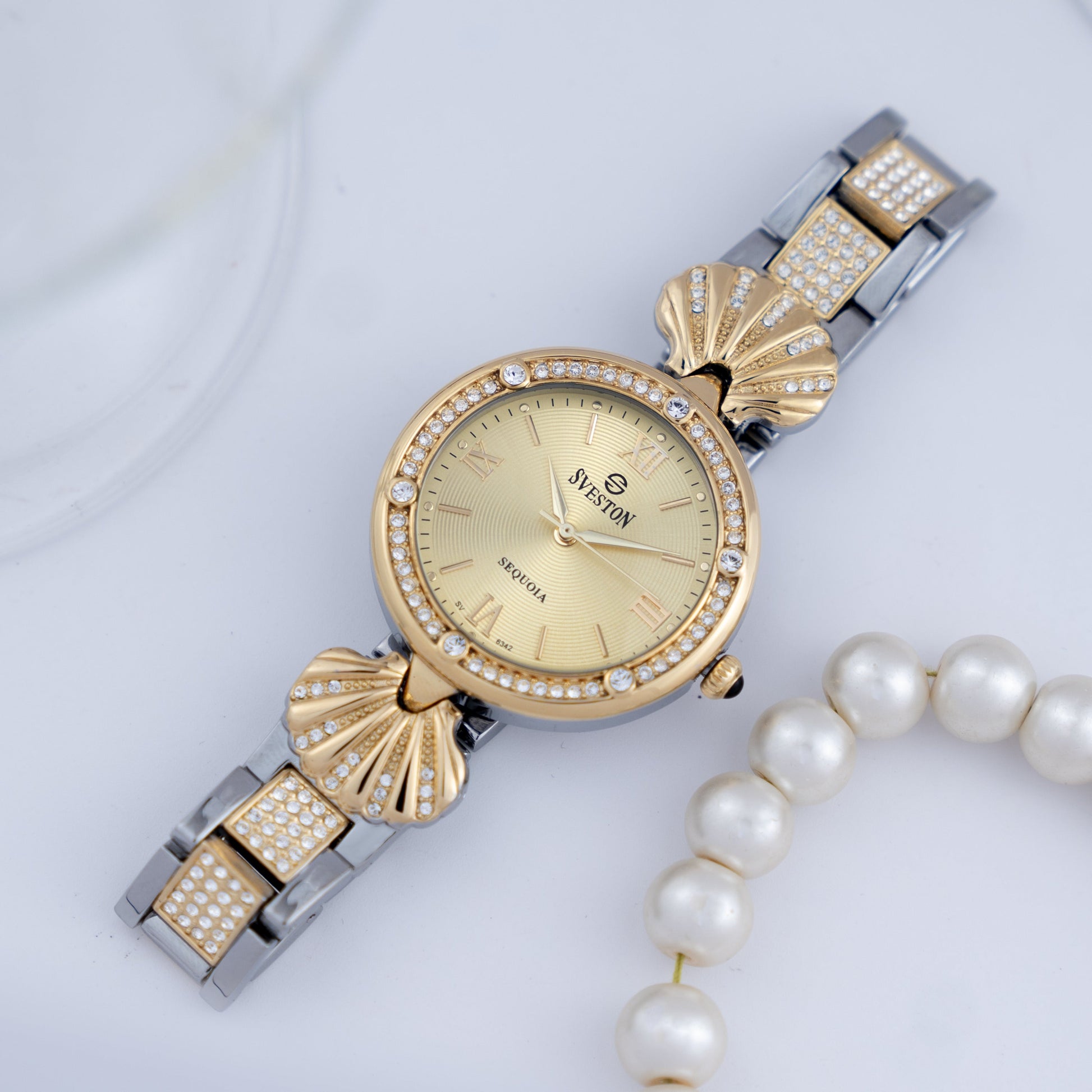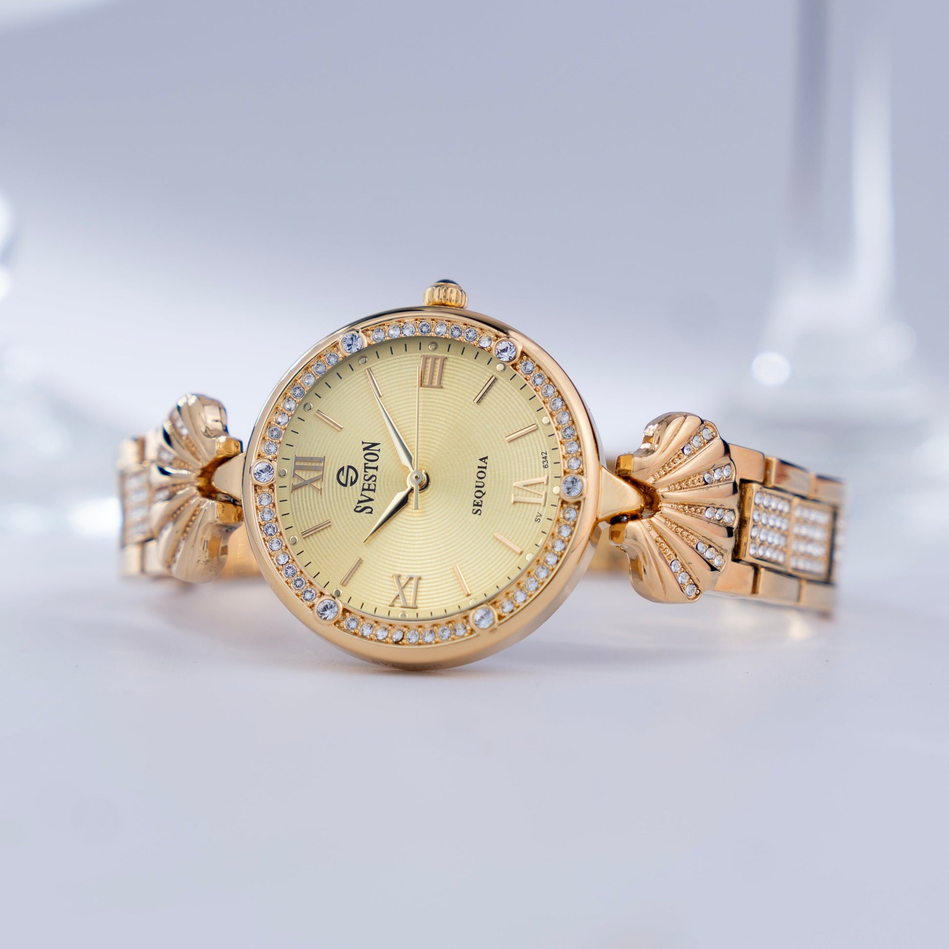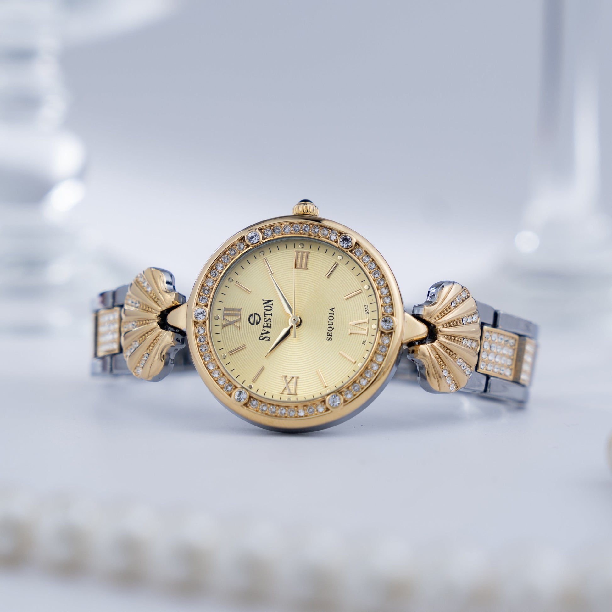 Indulge in ultimate luxury with our Sequola watch designed exclusively for women this timepiece features a dazzling bracelet style and a petite 32mm case making it perfect for a feminine touch weighing only 67 grams and water-resistant up to 3ATM Sequola offers both comfort and practicality whether for a special occasion or everyday wear this watch is a must have accessory for every fashion forward women